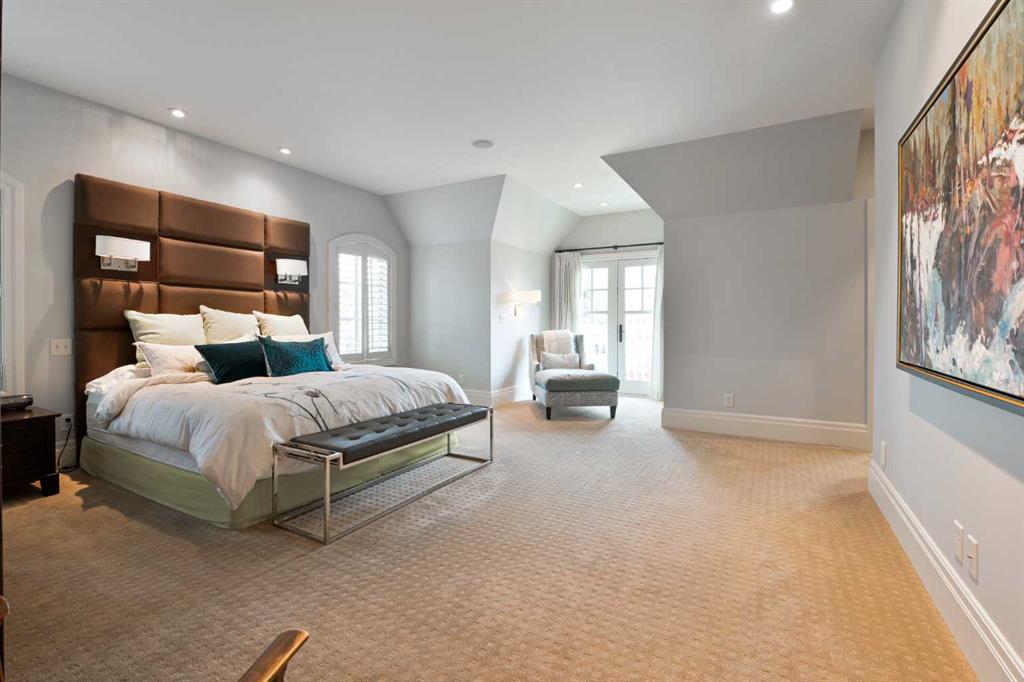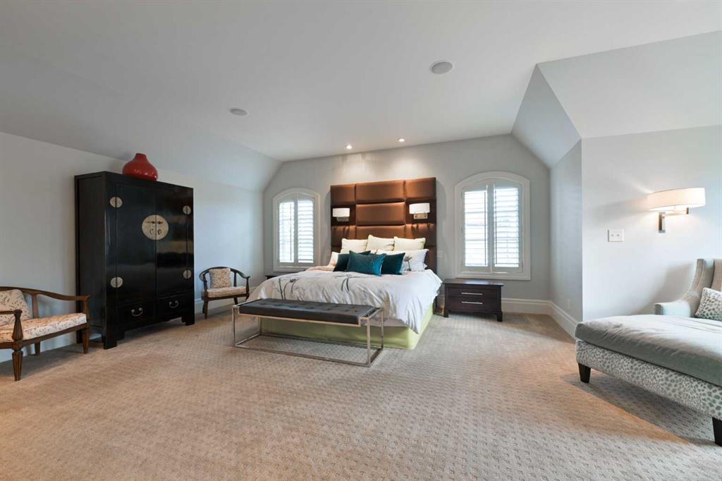 Upstairs, four generously proportioned bedrooms each feature their own ensuite, complemented by a Jack and Jill bath. The primary suite is especially luxurious, offering a Juliet balcony, an expansive his-and-hers closet, and a spa-inspired ensuite that opens to a private south-facing balcony — a serene retreat within the home.