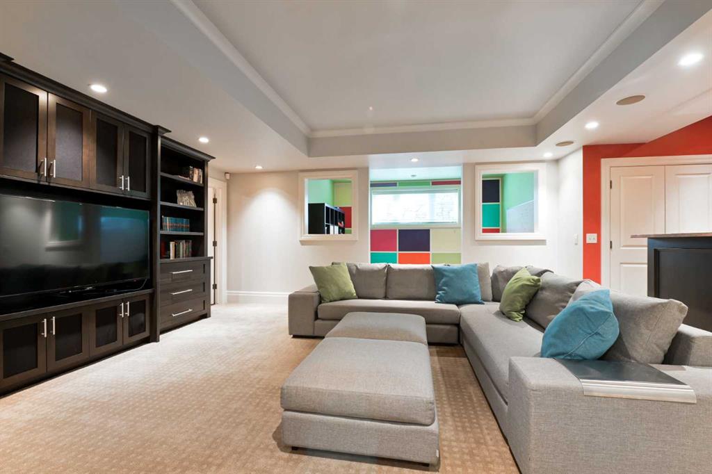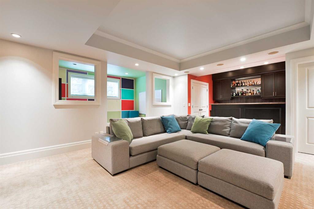 The lower level is equally impressive, designed for both entertaining and everyday comfort, with a large recreation room, bar area, two additional bedrooms, full bathroom, laundry room, dedicated play area, and abundant storage. Outdoors, the beautifully appointed stone patio, firepit area, and covered dining space create an intimate backdrop for memorable evenings and effortless entertaining.