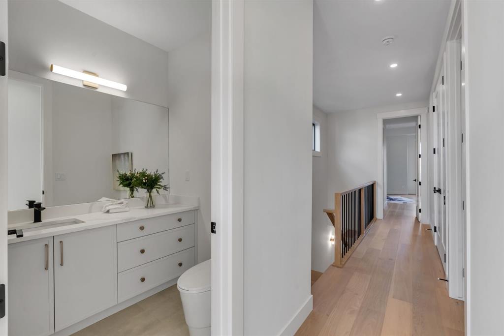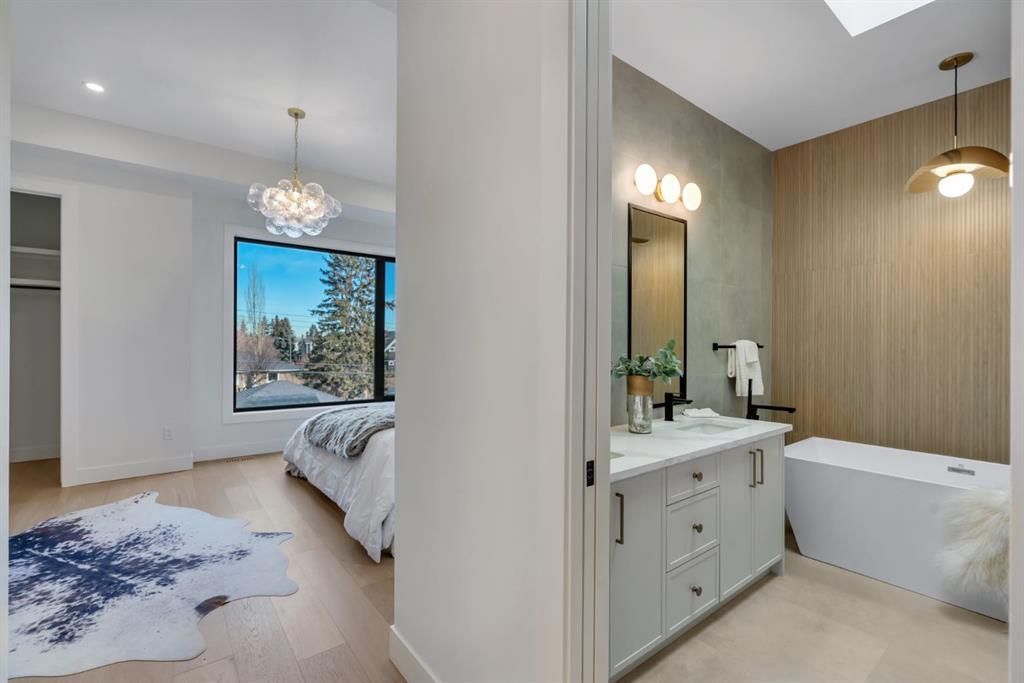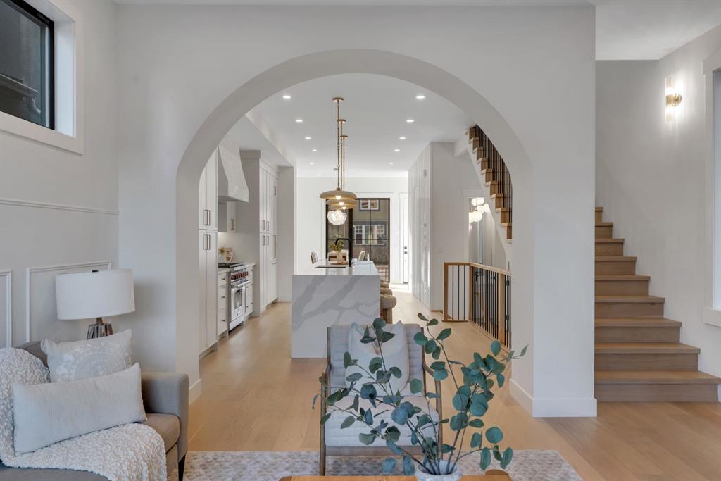 The builder is offering an extended warranty with the standard first year coverage extended to two full years, providing enhanced peace of mind and added long term protection for the new homeowner. This exceptional brick residence by Jerry Homes is ideally situated near Marda Loop in one of Calgary’s most desirable inner city neighbourhoods and offers a refined blend of timeless architecture and modern luxury. The thoughtfully designed main level features soaring 10 foot ceilings, expansive windows that flood the space with natural light, an elegant dining area with detailed wall treatments, and a stunning chef inspired kitchen anchored by an oversized island, quartz countertops, custom cabinetry, premium built in Wolf and Dacor appliances, a concealed walk in pantry, and sophisticated designer finishes throughout. A beautifully defined great room centers around a custom multi tier gas fireplace creating an inviting yet elevated atmosphere, while a functional mudroom with ample storage adds everyday convenience. Upstairs, 9 foot ceilings frame a luxurious primary retreat complete with dual walk in closets and a spa like five piece ensuite finished in full height designer tile and offering in floor heating, a steam shower rough in, and a deep soaker tub. Two additional bedrooms, a well appointed bathroom, and a spacious dedicated laundry room complete the upper level. The fully developed basement expands the living space with a large recreation room, wet bar, fourth bedroom, and a full bathroom along with in floor heating rough in for added comfort. Additional highlights include rough ins for air conditioning, built in ceiling speakers, a security system, and exterior cameras. Surrounded by top rated schools, parks, and the vibrant shops and restaurants of Marda Loop, this home delivers elevated inner city living with exceptional craftsmanship and everyday practicality.