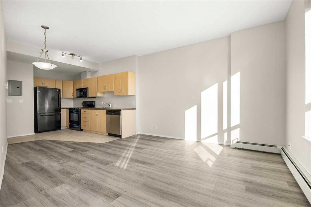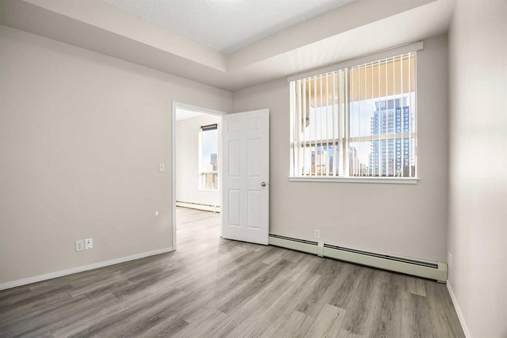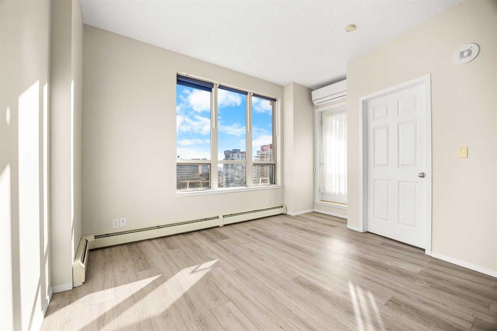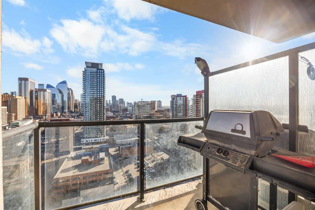 Welcome to this bright 1-bedroom apartment on the 19th floor in the heart of the Beltline! This well-designed unit offers 480 sq ft of functional living space with 9-foot ceilings and an open-concept layout. The functional Kitchen flows seamlessly into the sunny East-facing Living and Dining room combo, filled with natural light throughout the day. Vinyl plank flooring adds style and durability to the Living room, Dining area, and Bedroom. From the Living room, step out to the East-facing balcony with gas hookup, where you can enjoy stunning downtown views—perfect for your morning coffee or evening relaxation. The Primary bedroom provides comfortable space with 2 closets for ample storage. This unit is complete with 1 full bathroom, in-suite laundry, and a Titled underground parking stall. The condo fees cover all utilities—gas, water, and electricity—providing exceptional value for inner-city living. The well-managed Vantage Pointe building includes a fitness centre, bike storage, underground visitor parking, and 24-hour security. Living in the Beltline means having everything nearby: restaurants, grocery stores (Co-Op, Safeway & Community Natural Foods), schools, vibrant 17th Ave, and green spaces like Prince’s Island Park. Just a short walk to the C-Train station and Bow River pathway, making it easy to get around whether you’re commuting, cycling, or enjoying a quick commute to work in Downtown. Don’t miss your chance to live in one of Calgary’s most walkable neighborhoods!