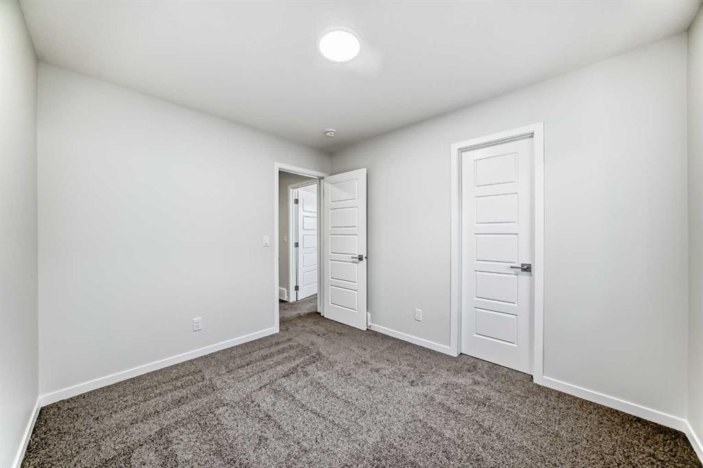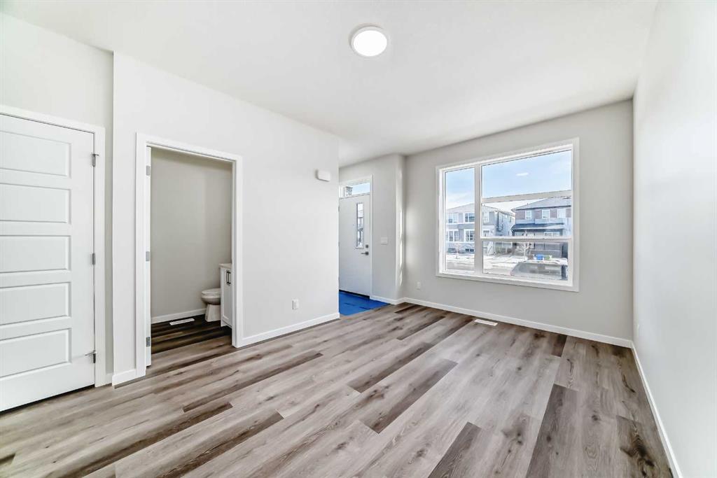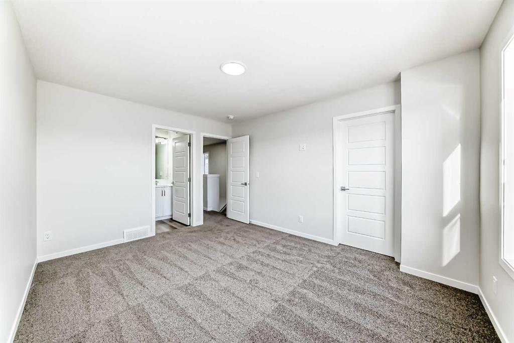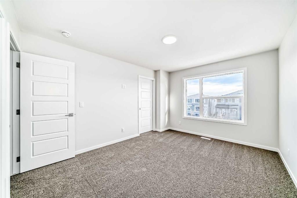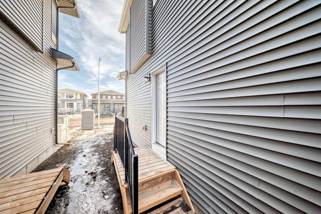 Welcome to this stunning brand new semi-detached home in Calgary, offering 1,589 sq ft of beautifully designed living space. Featuring 3 bedrooms and 2.5 bathrooms, this home combines modern style with practical functionality. The bright open-concept main floor showcases 9-ft ceilings and large windows that fill the space with natural light. The contemporary kitchen is a true highlight, complete with elegant quartz countertops, sleek cabinetry, and ample prep space—perfect for cooking and entertaining. The dining and living areas flow seamlessly together, creating an inviting atmosphere for family and guests. Upstairs, you’ll find three spacious bedrooms, including a generous primary suite with a walk-in closet and private ensuite. Two additional bedrooms, a full bathroom, and convenient upper-level laundry complete the upper floor. The undeveloped basement with a separate side entrance provides excellent potential for future development or a secondary suite (subject to city approval), offering flexibility for growing families or added investment value.