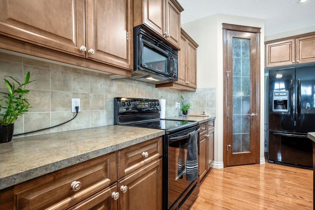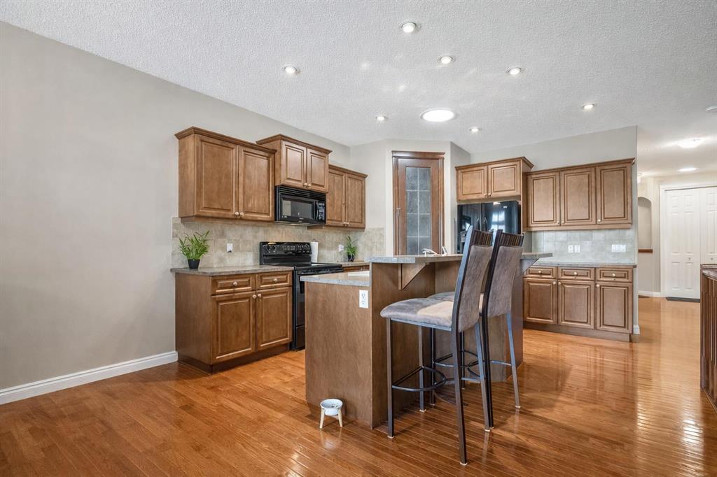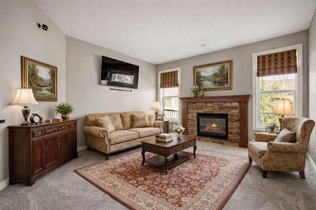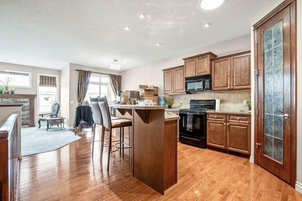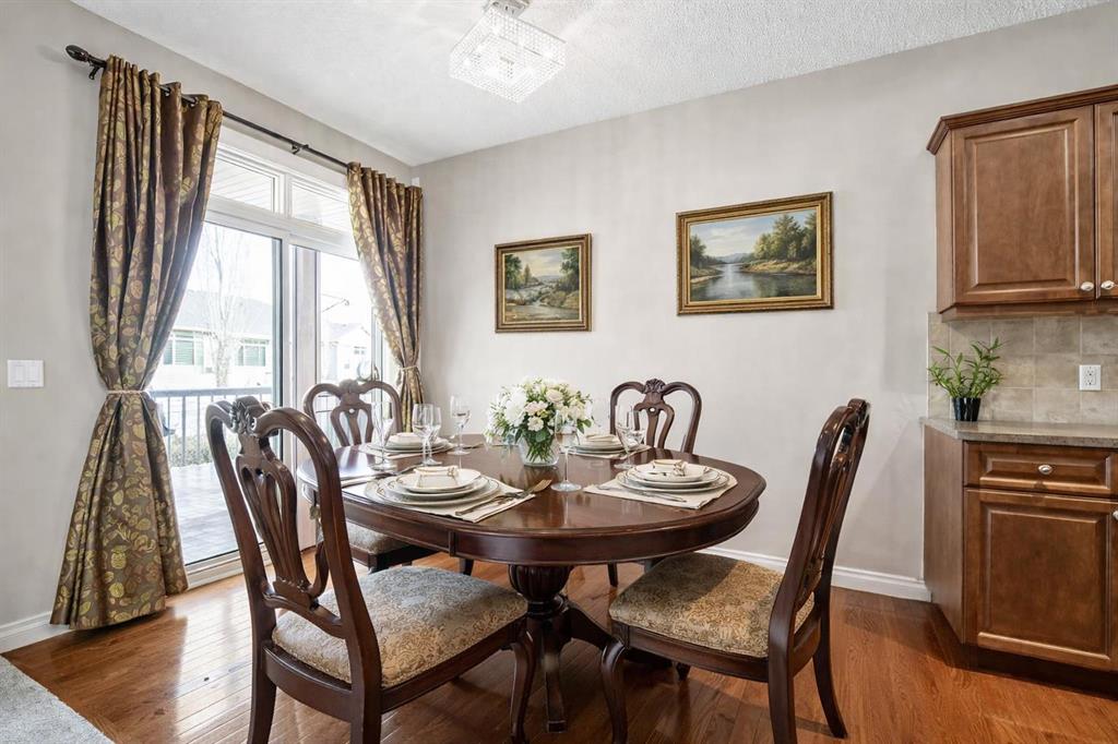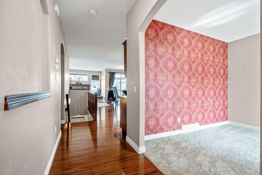 Upon entry you are welcomed by 9ft ceilings and impressive 8ft doors that create an open and airy feel across the main floor. The living room is warm and inviting, centered around a cozy fireplace and complemented by a mix of hardwood, ceramic tile and carpet throughout. The kitchen and dining area flow seamlessly, making it ideal for both everyday living and entertaining.