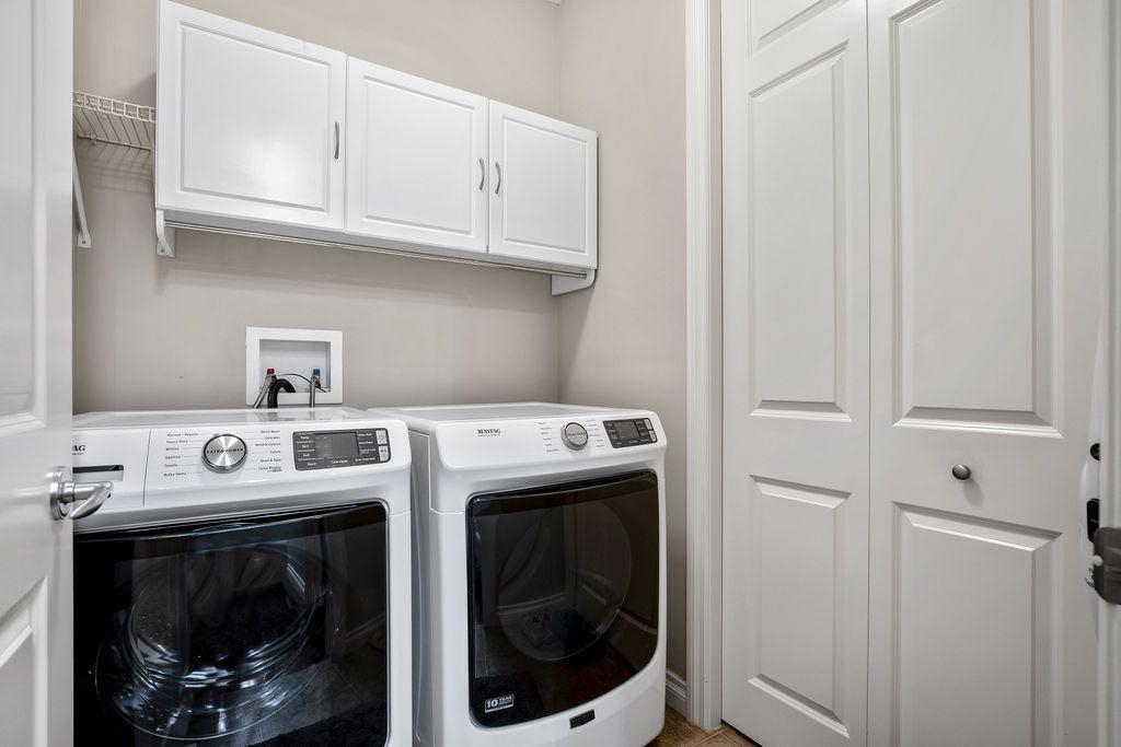 The main floor also features a convenient laundry area, a 2pc powder room for guests, and a spacious primary retreat complete with a walk-in closet and a full 4pc ensuite bathroom. There is also an exterior door to the deck that stretches the width of the house to dining room patio door.