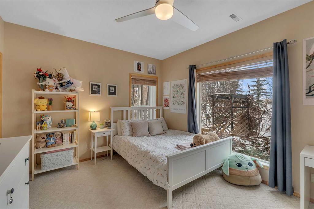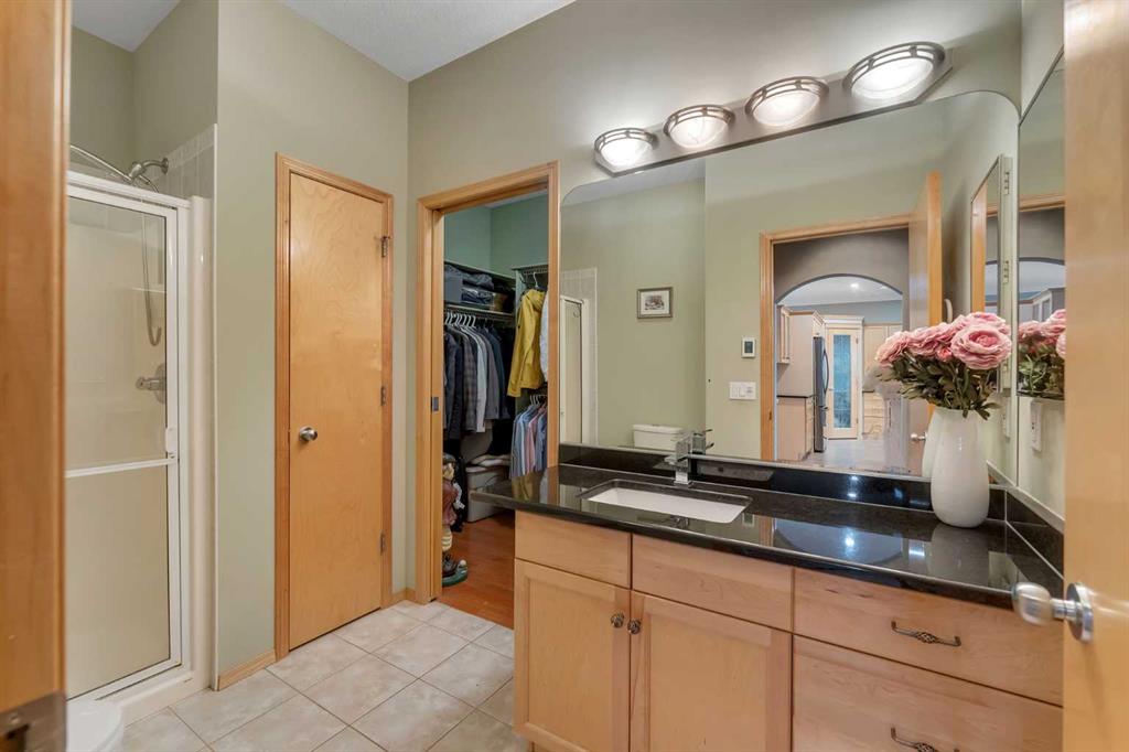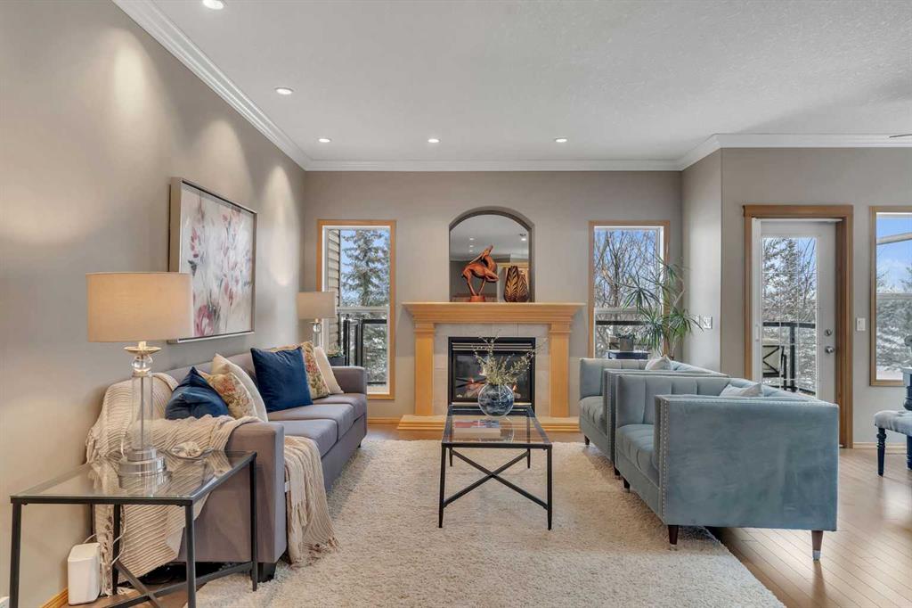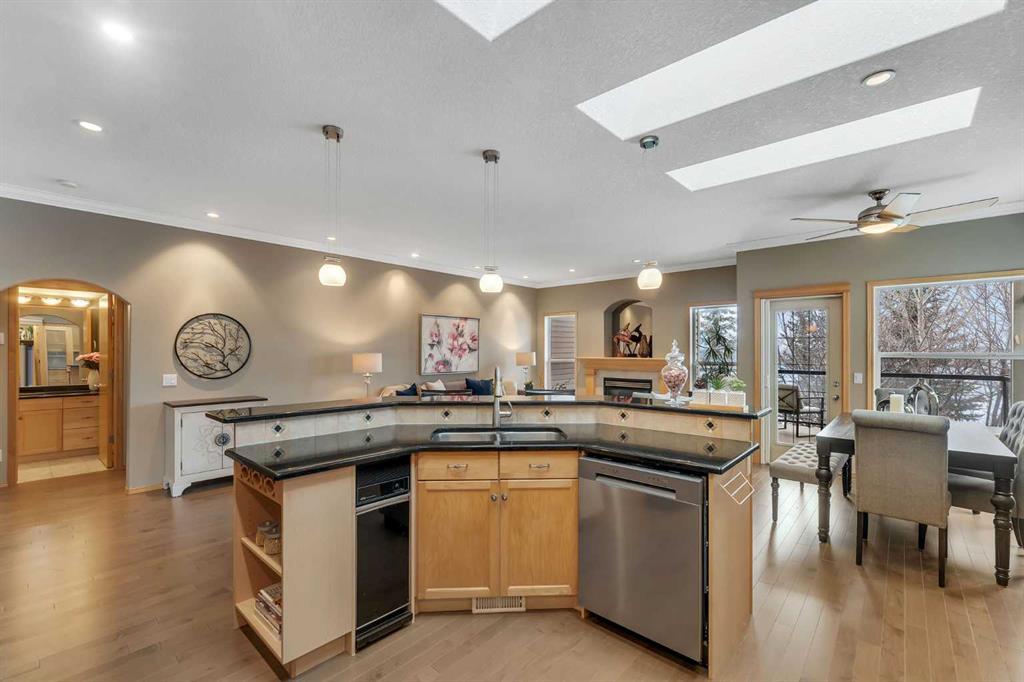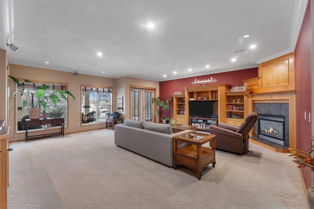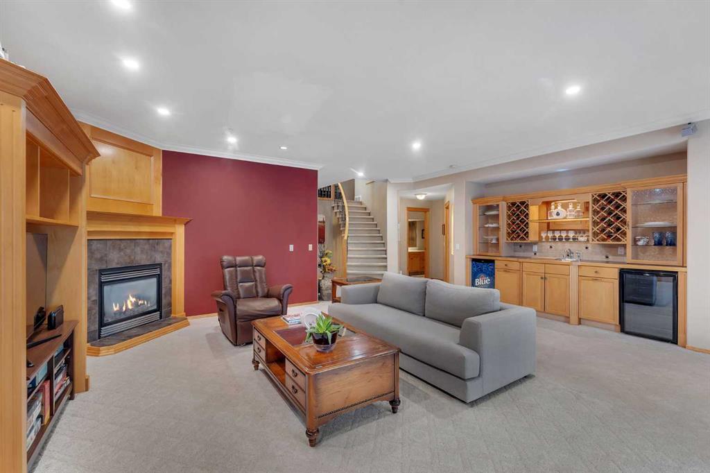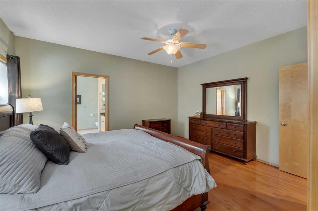The walkout basement is fully finished with IN-FLOOR HEAT. A large family room is where the family will gather in front of the fireplace with built-ins. Another great feature of this lower level is the 9-foot ceiling height and the custom bar. THREE additional bedrooms & a 4-piece bath make this an ideal home for teenagers or grandkids. The backyard is exceptionally landscaped with mature trees, perennials, and irrigation. The lower patio is very private and is a great place to listen to the birds while enjoying a good book. Watch the golfers and enjoy the sunshine from your walkout deck or from your patio. This golf course location is well-protected from errant golf balls. This is a central Airdrie location, close to the golf course, shopping, and many schools.