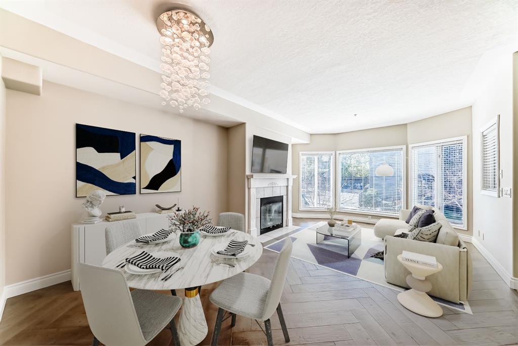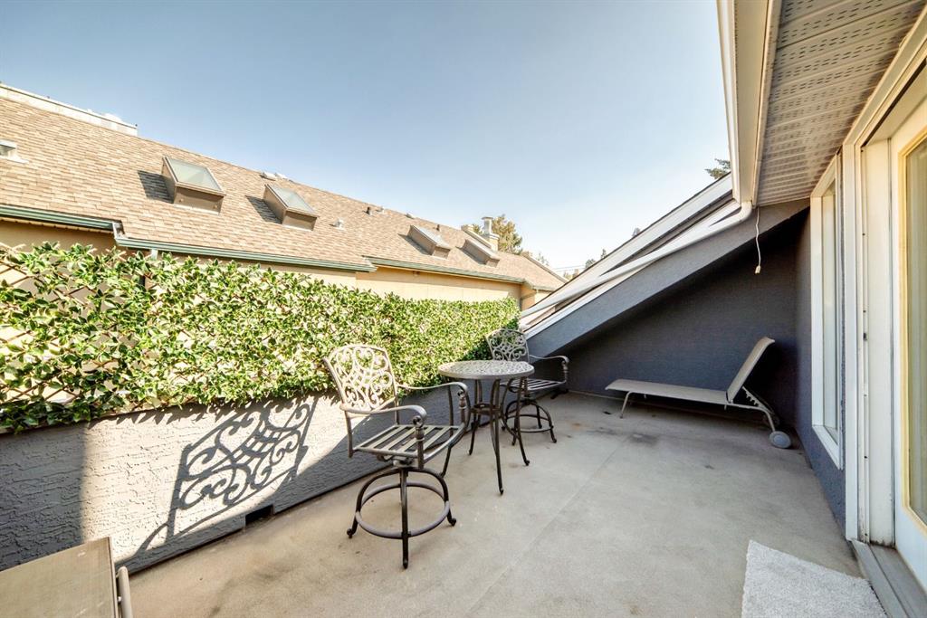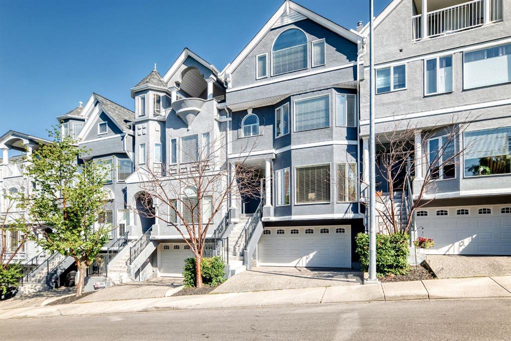 **Open House – Saturday Oct 25, 2:00 pm – 4:00 pm** Experience executive living at its finest in this beautifully updated townhome located in the heart of Lower Mount Royal. Offering over 2,010 sq ft of sophisticated, air-conditioned space, this home has been freshly renovated with brand new carpet and new paint throughout. The bright, open-concept main floor features large windows and stunning herringbone hardwood floors in the west-facing living room with a cozy gas fireplace. The elegant dining area flows into the modern kitchen, complete with granite countertops, a center island, stainless steel appliances, corner pantry, breakfast bar, and sunny nook. Upstairs, enjoy two spacious primary suites, each with its own jetted tub ensuite. The main suite includes a 5-piece bath and walk-in closet, while the second offers a comfortable 4-piece bath—perfect for guests or extended family. The top level is truly a showstopper—an expansive loft with cathedral ceilings, ideal as a third bedroom, home office, or entertainment space. This level also features your second fireplace and access to a private balcony with sweeping downtown Calgary views—the perfect setting to unwind or entertain. Enjoy two great outdoor spaces: a main floor patio and a loft-level balcony. The lower level offers a refreshed laundry/mudroom with brand new luxury vinyl plank flooring with access to your oversized double garage—plenty of space for storage and two vehicles, plus a wide driveway that accommodates two more. Located just steps from 17th Avenue, this home offers the perfect blend of urban convenience and upscale comfort, surrounded by some of Calgary’s best restaurants, boutiques, and amenities. Walk, bike, or commute easily to the downtown core. This well-managed condo is available for immediate possession. Don’t miss your chance to own in one of Calgary’s most sought-after communities. Book your private tour today and elevate your lifestyle with executive living in Lower Mount Royal!