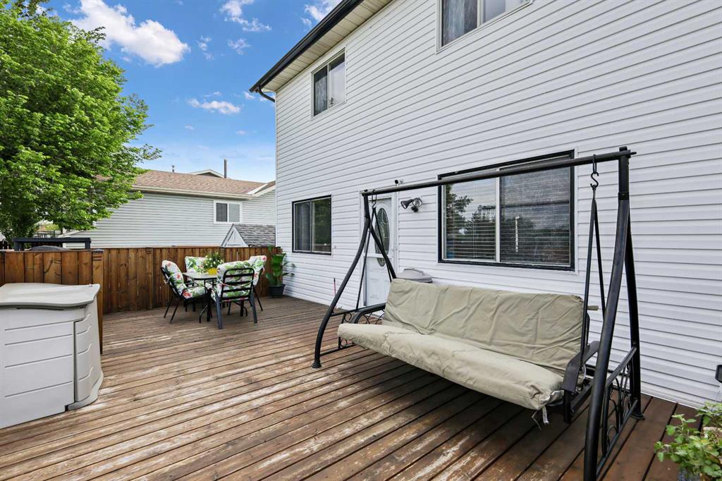 **COME JOIN US AT OUR OPEN HOUSES THIS SATURDAY OCTOBER 18TH AND SUNDAY OCTOBER 19TH FROM 12-3PM**This beautifully maintained and upgraded home sits proudly on a generous 43 x 141 ft deep lot, offering space and lifestyle you’ll love. Formerly run as a licensed day home, it presents a unique opportunity for the next owner to make it their own. Step inside to be welcomed by gleaming laminate floors and an abundance of natural light pouring through the oversized windows. The bright and airy living room, anchored by a large picture window, flows seamlessly into the spacious dining area—perfect for family gatherings or entertaining with ease. The kitchen is a standout with its rustic knotty pine cabinetry, stainless steel appliances, tile backsplash, and handy side island with extra storage. From here, a garden door leads you out to a true backyard retreat: a massive west-facing yard with no neighbors behind, featuring a large deck, hot tub with two brand-new motors, three storage sheds, play structure and sand pit, fire pit area, playhouse, and even a concrete parking pad. Upstairs, you’ll find three comfortable bedrooms and a stylishly updated 4-piece bathroom complete with tile flooring and a tiled tub surround. The mostly finished basement expands your living space with a large rec/family room, fourth bedroom, laundry, storage, and rough-in plumbing ready for future customization. This home comes loaded with updates for peace of mind: furnace, hot water tank, and A/C (2010), roof shingles and siding (2022), and fresh gravel driveway (2021). All of this is in a prime location—steps to schools, parks, shopping, restaurants, and the always popular Prairie Winds Park. Quick connections to McKnight, 64th Ave, 36th Street, and Metis Trail make commuting a breeze.
