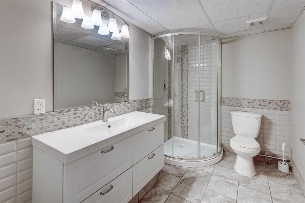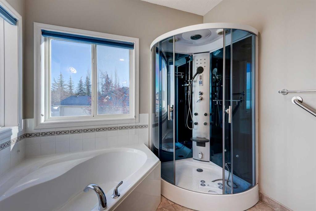 Main level includes two bedrooms, highlighted by a large vaulted primary suite with a luxury ensuite featuring a soaker tub and steam shower with multi-jets. Convenient main-floor laundry and 2-piece bath. Fully developed lower level offers two large bedrooms, a full bathroom, and spacious (over 400 sf) family/recreation room.