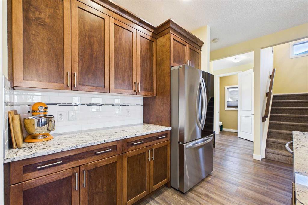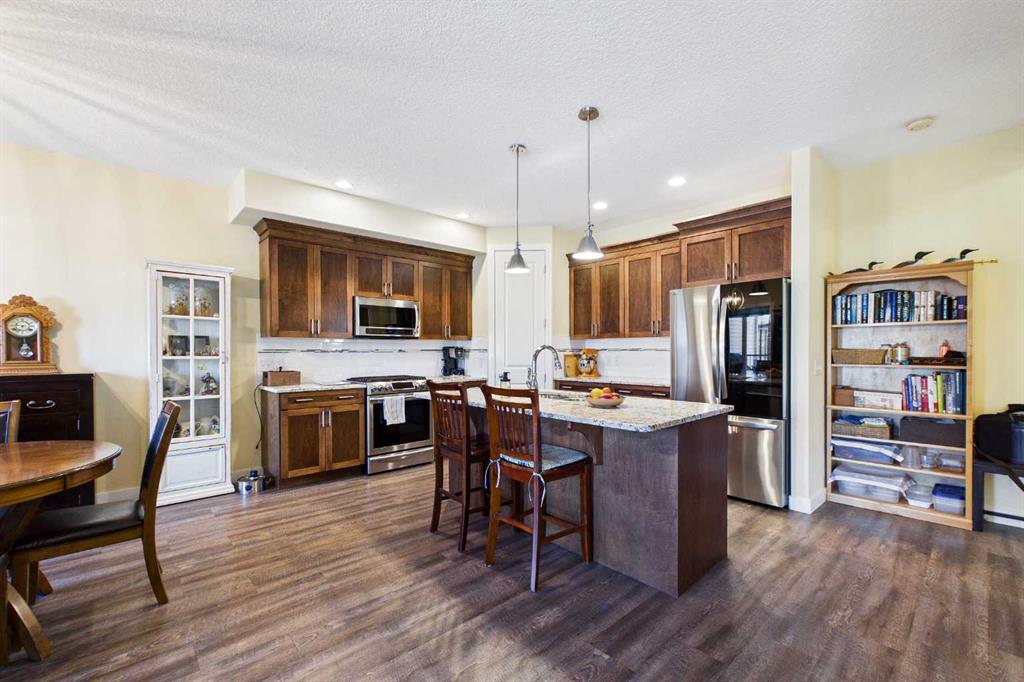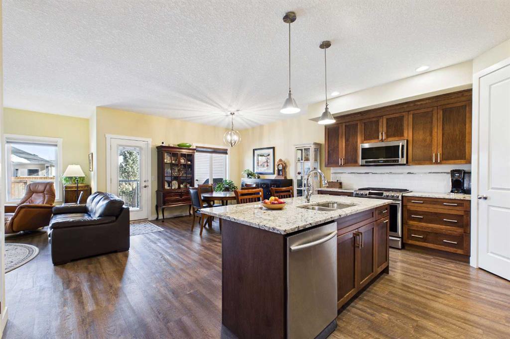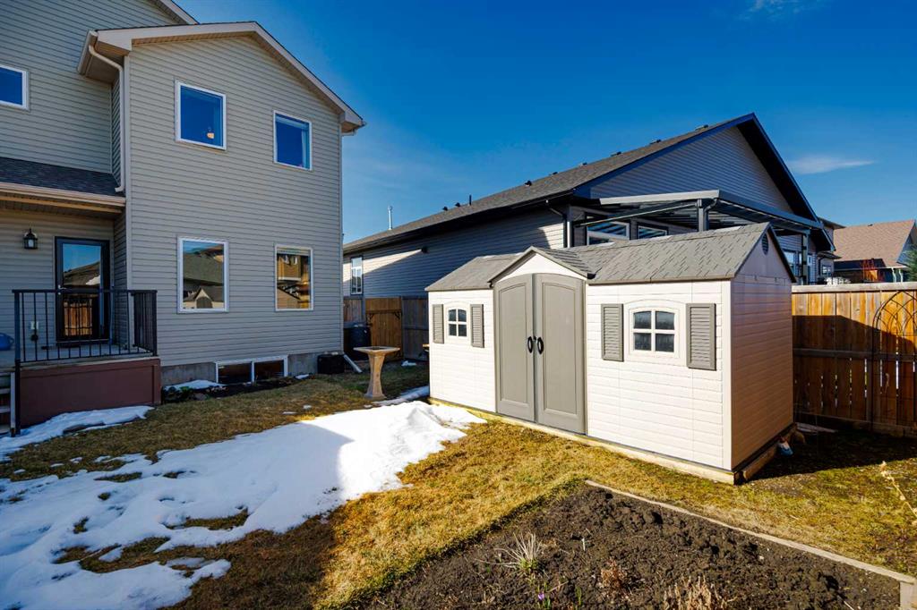 OPEN HOUSE SATURDAY, APRIL 25th 1:00p.m. to 4:00 p.m. AN EXCEPTIONAL ONE OWNER SPACIOUS HOME ON A QUIET STREET IN SOUGHT AFTER HIGHWOOD VILLAGE! THIS OUTSTANDING HOME WAS BUILT IN 2016 AND NOT LOCATED IN THE FLOOD ZONE. An immaculate bright and spacious home. Large inviting foyer with sitting area and double door closet. Direct access to the two-piece bathroom and the insulated double attached garage. Stylish luxury vinyl plank flooring runs throughout this well-designed 2089 sq. ft. home with the perfect layout. The spacious living room features large windows that overlook the back yard, with an elegant black slate gas fireplace and provides clear views to the kitchen and dining area. You will love this large kitchen with upgraded stainless-steel appliances. Gas range and new L.G. French door fridge with freezer drawer. Elegant granite counters with tile backsplash, upgraded cabinets with crown mouldings, lots of drawers for storage and the large walk-in a large pantry with automated lighting. Large 81” granite island with eating bar, double sinks and dishwasher, perfect when entertaining or food prep. An additional granite counter makes the perfect coffee station. Spacious dining room is perfect for your full dining suite including room for a sideboard. Access to the raised back deck with stairs to the fenced yard, lawn and garden area with large new shed. This private deck offers a great space for relaxing and entertaining. An expansive primary retreat has room for all your bedroom furniture plus includes a large walk-in closet and a huge 13’1’x10’5” 4-piece en-suite bathroom with double granite vanities and oversize walk-in shower. Two additional bedrooms, each with two windows and large closet space. Upper level 4-piece bathroom with soaker bathtub/shower combo and double door linen /towel storage. Convenient upper floor laundry room with full size upgraded washer and dryer, granite counter, sink and lower storage cabinet, plus an additional walk-in storage area. The unfinished basement offers you a huge open space, egress window and roughed in plumbing – ready for your future development. A sought-after location in High River where you can walk to Notre Dame Collegiate School. High River offers golf, dining, shopping, excellent schools and the High River Hospital. You will love the Rodeo’s plus many other community events and services. Easy drive to Okotoks, Calgary and west to Kananaskis Country. * Please check out the drone video**