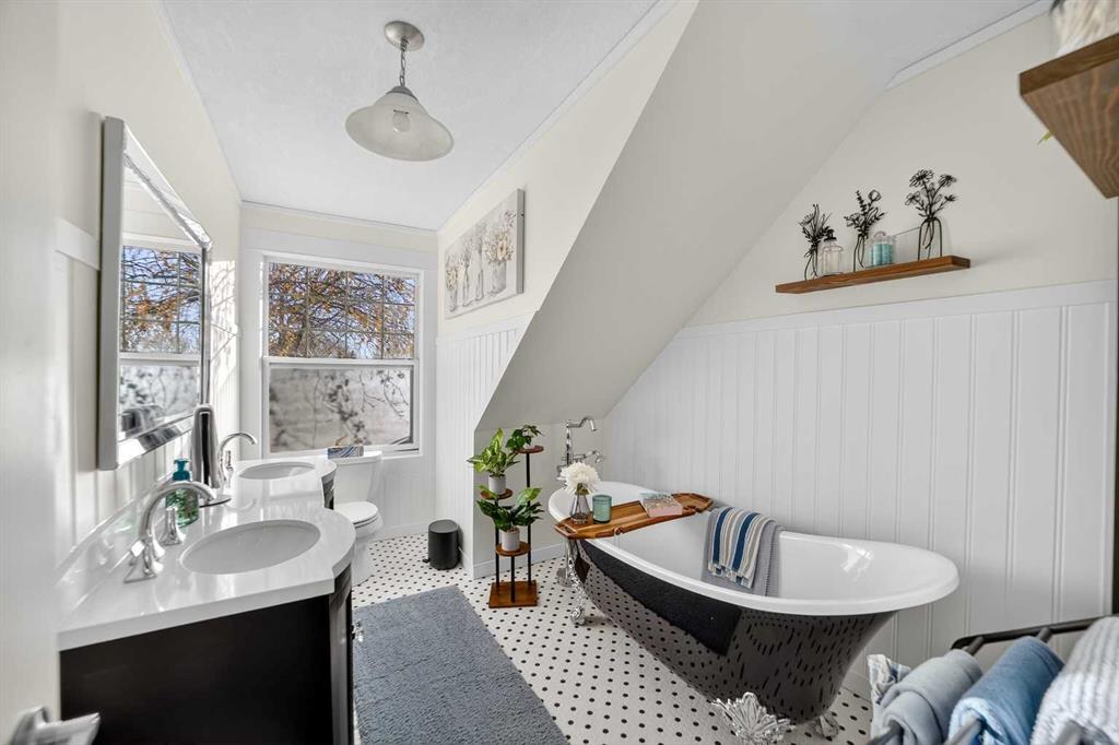 OPEN HOUSE SATURDAY NOVEMBER 8, 2025 1:00 – 4:00 PM Exchange city grind for piece of mind in this beautifully renovated character home in the Historic Town of Didsbury perfectly blends timeless charm with modern luxury. Thoughtfully updated throughout, it retains the elegance of its original details while offering all the comfort and style today’s buyer expects. Step inside through the welcoming front entry with custom built-in coat hooks and bench. You’ll immediately be drawn to the expansive living and dining rooms, highlighted by stained glass windows, rich crown mouldings, and a warm, inviting atmosphere. The custom kitchen is a chef’s delight, featuring a massive island ideal for cooking, entertaining, or family gatherings. A large rear mudroom/sunroom and a designer powder room with hidden laundry complete the main level. Upstairs, the home divides into two distinct wings. The owner’s suite is a private retreat with a cozy sitting area, an impressive walk-in closet/dressing room, and a spa-inspired ensuite with double vanity, oversized shower, and heated floors. The second wing offers three spacious bedrooms and a stunning third bathroom, complete with double vanity, heated floors, and a charming clawfoot tub with handheld shower. Outside, enjoy a massive, treed yard offering privacy and space, along with a sunny south-facing deck—perfect for outdoor living. An oversized, heated double-attached garage adds convenience and functionality. This one-of-a-kind property combines historic character, thoughtful renovations, and modern amenities in a way that truly takes your breath away. Don’t miss your chance to own a piece of Didsbury history—book your showing today!