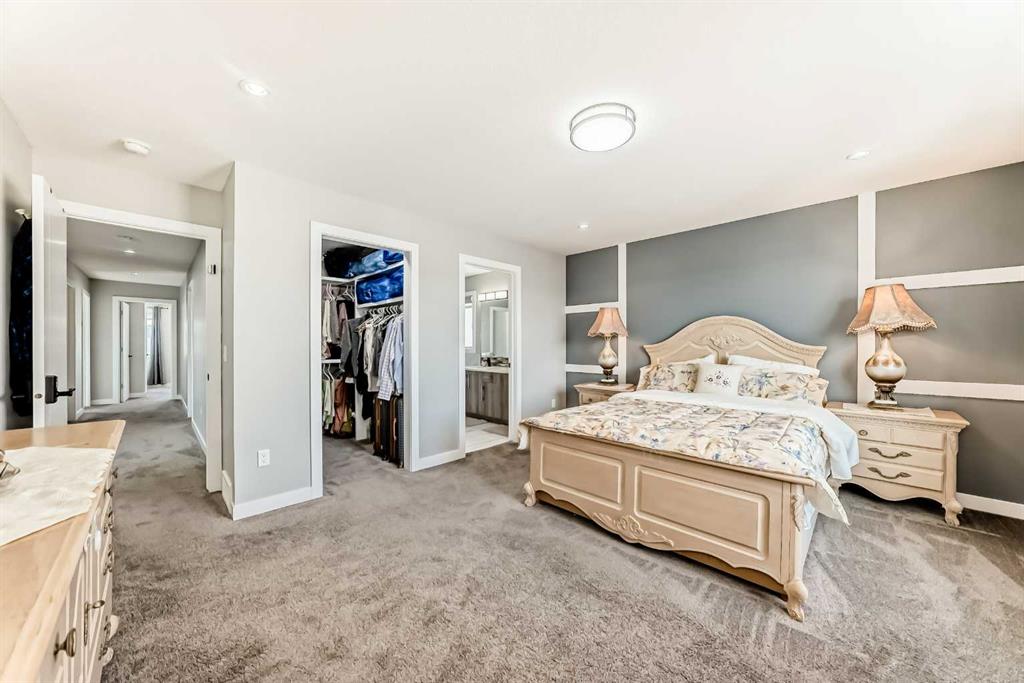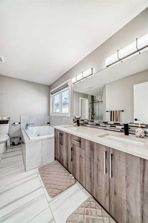 ***BEAUTIFUL FAMILY HOME WITH 4 BEDROOMS ON UPPER LEVEL + 2 BEDROOM LEGAL BASEMENT SUITE TOTAL OF 3251 SQFT LIVING SPACE *** Welcome to this stunning and spacious family home located in the highly sought-after community of Bayside in Airdrie. Thoughtfully designed and better than new, this property offers exceptional comfort and functionality with a total of four bathrooms and eye-catching stucco exterior. The main floor features a versatile office/den, a convenient 3-piece full bathroom, and a beautifully upgraded gourmet kitchen complete with a gas stove, stainless steel appliances, modern fixtures, and a well-organized pantry. The dining area opens onto a generously sized deck, perfect for entertaining. The living room showcases a cozy gas fireplace with a built-in entertainment feature, creating a warm and inviting space. Upstairs, a striking skylight fills the home with natural light. You’ll also find a spacious bonus room, a bright laundry area with stainless steel washer and dryer, and a large primary bedroom featuring a walk-in closet and a luxurious 5-piece ensuite. The oversized double attached garage provides ample room for parking and additional storage. Exterior upgrades include Gemstone lighting, adding both style and convenience. The fully developed LEGAL basement offers a separate entrance leading to a well-designed, self-contained 2-bedroom legal suite with its own separate furnace system (city-approved). Whether used as a mortgage helper or for extended family, the possibilities are endless. With a fully landscaped and fenced yard, this move-in-ready home truly has it all—just unpack and enjoy.