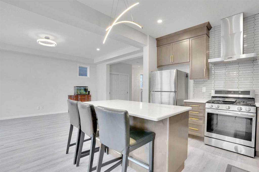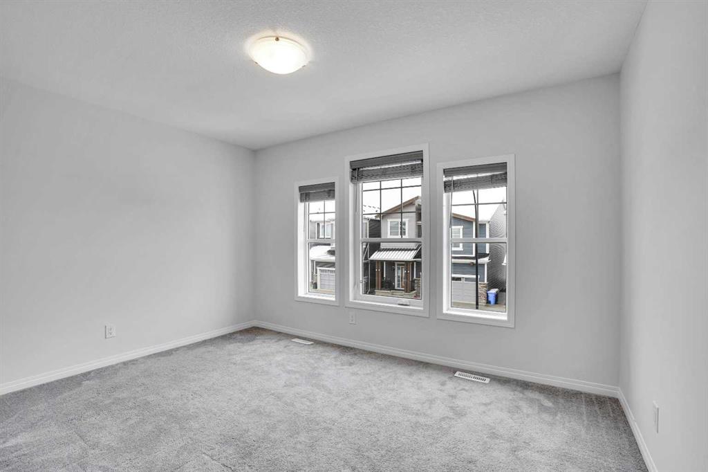 Discover Your Dream Home in Carrington! A stunning 2-storey home offering over 2490 sqft. (1830 sqft. above grade) of thoughtfully designed living space in the highly desirable community of Carrington. This modern home features an open-concept main floor with 9-foot ceilings, with a bright living room, spacious dining area, and a stylish kitchen completed with stainless steel appliances, gas stove, and quartz countertops. Large windows fill the home with sunlight. Elegant LVP flooring throughout the main level offers both durability and sophistication. Upstairs you’ll find four generously sized bedrooms including a primary bedroom with a 4-piece ensuite and walk-in closet. The upper floor balcony is converted into a sunroom. Convenient laundry on the upper floor makes chores easy. The professionally finished basement offers a gaming room, a bedroom/office, an additional full bathroom, and loads of storage. The landscaped backyard is your outdoor oasis, completed with a deck and fencing. The double attached garage can fit two large vehicles. This is a non-smoking and no pet home and has always been meticulously maintained and it shows as soon as you walk in. Easy access to Stoney Trail, and Beddington Trail. Close to schools, lots of amenities including grocery stores, financial institutions, restaurants and shopping centers. Book your showing today!