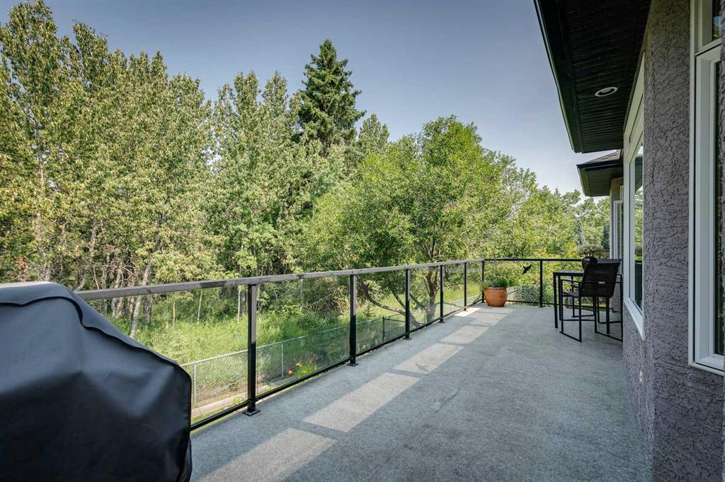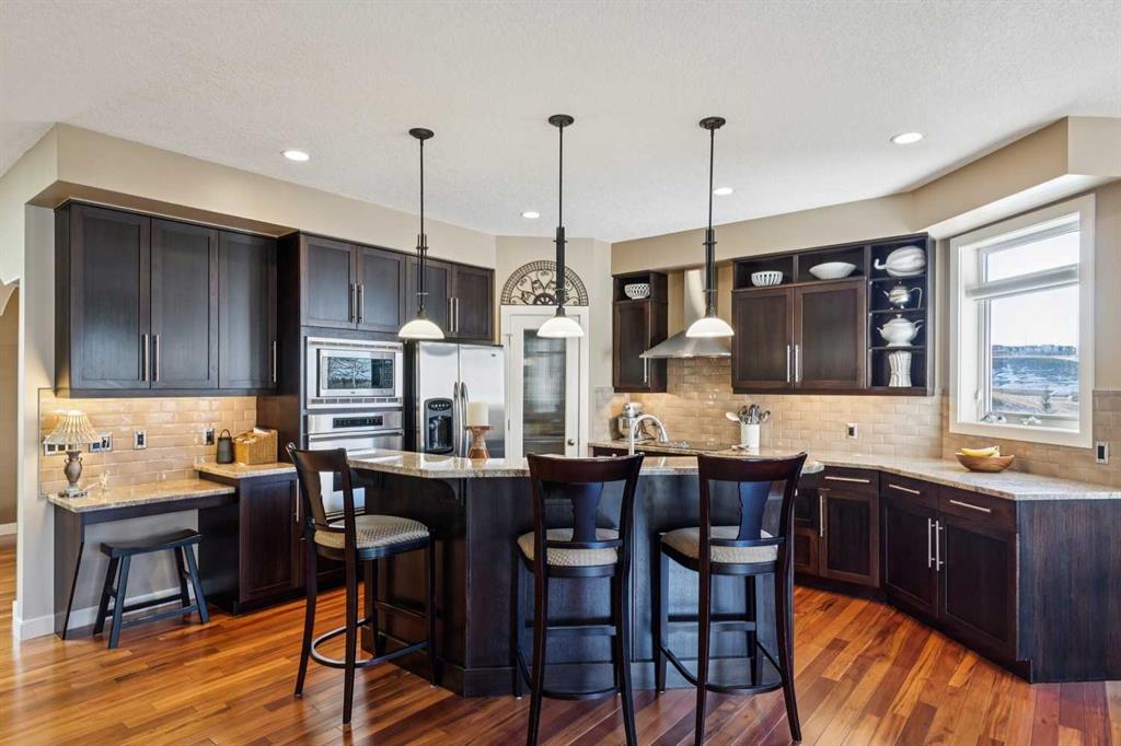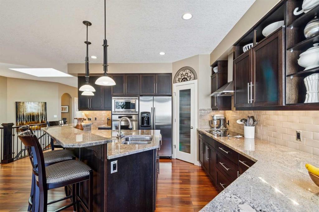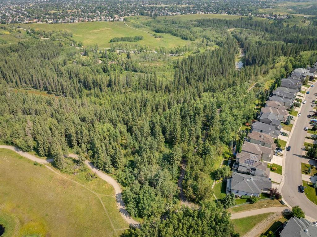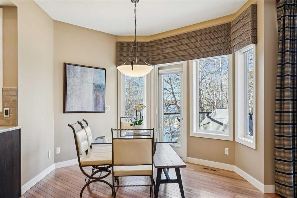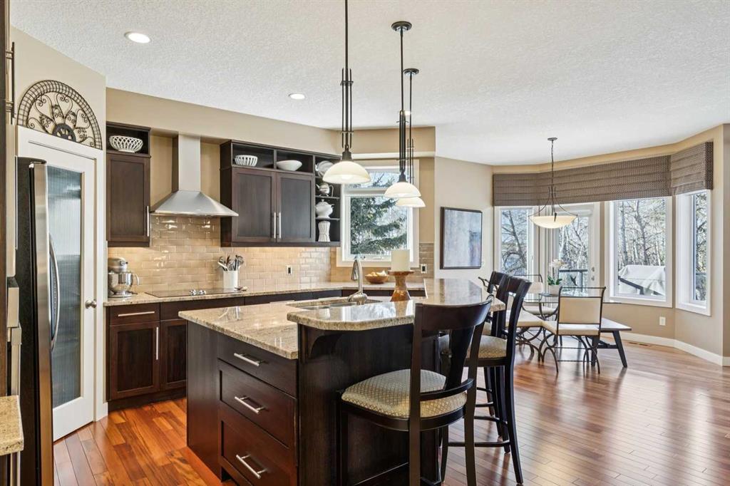 Offered for the first time by the original owner, this immaculate home shows true pride of ownership throughout! Ideally located backing directly onto Fish Creek Park, the property enjoys a large pie-shaped lot in a peaceful natural setting with mature trees and immediate access to some of Calgary’s best walking and cycling pathways right outside your door. The main level features an open and inviting layout with 9 foot ceilings, beautiful hardwood floors, and oversized windows which fill the space with natural light and offer tranquil views of the park. The open plan layout features a spacious living room with a cozy gas fireplace, adjoining breakfast nook with doors onto a spacious deck, and well-appointed kitchen with granite countertops, a raised island with space for stools, ample cabinetry, a corner pantry, and premium stainless appliances. A formal dining room with a tray ceiling provides an elegant space for entertaining. The primary bedroom is generously sized and offers views of the park, and features a generous ensuite bathroom and walk-in closet. Rounding out the main floor are a second bedroom, a sunlit den with south facing windows, a full main bathroom, and a convenient laundry and mudroom. The walkout lower level extends the living space with a large family room, wet bar, pool table area, two additional bedrooms, a full bathroom, and abundant storage. The walkout patio looks onto the treed green space beyond, further enhancing the connection to the park. The extra wide garage is ideal for storage or a workshop in addition to parking for two vehicles. Additional updates include a new roof shingles in September 2025, a new hot water tank in 2024, and central air conditioning in 2022. Close to parks, schools, shopping, and more. This is a rare opportunity to own a beautifully cared for home in an unbeatable Fish Creek Park setting, offering privacy and beautiful surroundings. Call your favorite Realtor to schedule a private viewing!