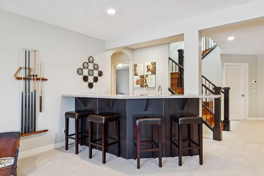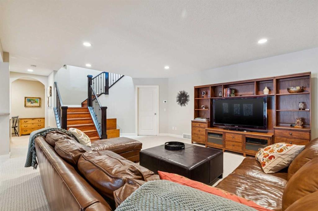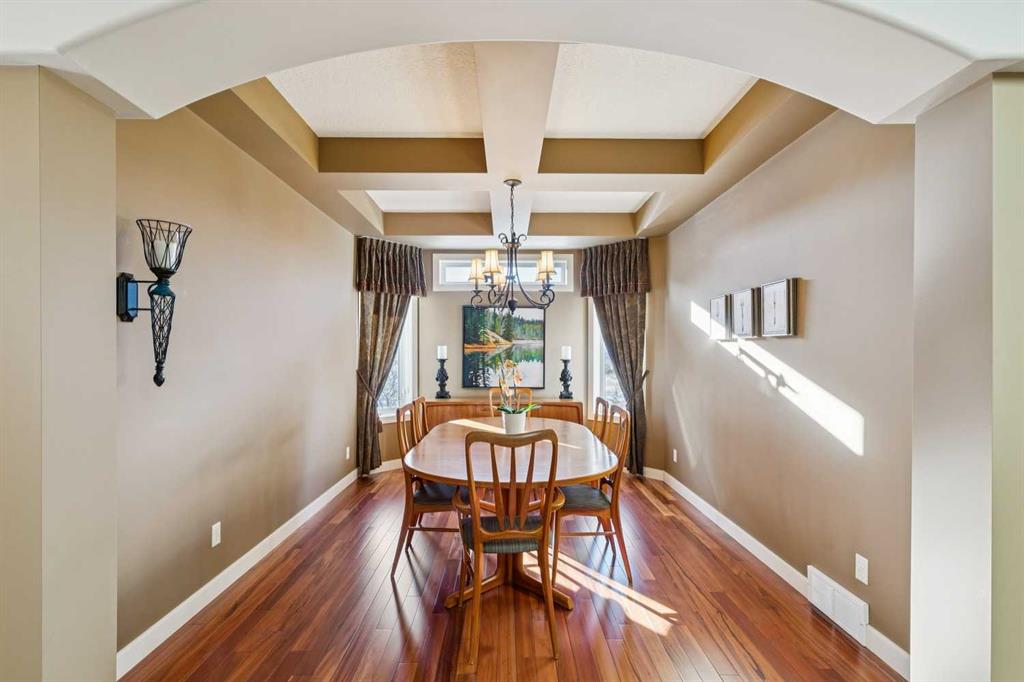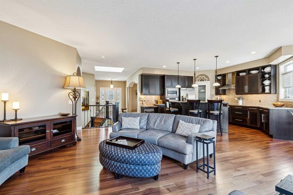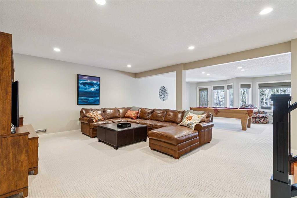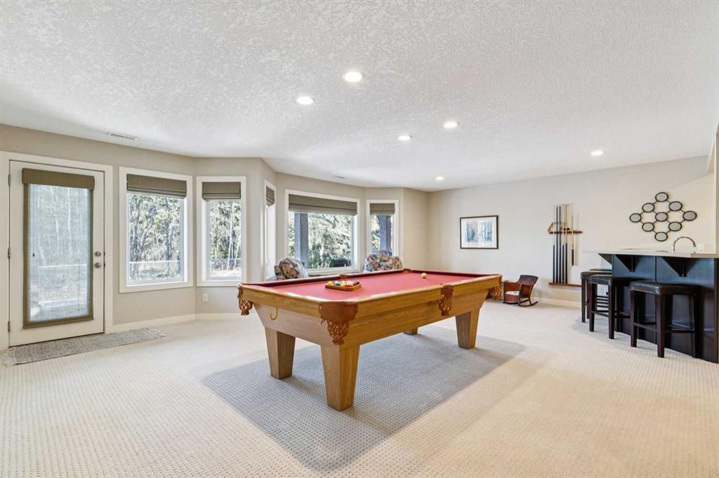 Offered for the first time by the original owner, this immaculate home shows true pride of ownership throughout! Ideally located backing directly onto Fish Creek Park, the property enjoys a large pie-shaped lot in a peaceful natural setting with mature trees and immediate access to some of Calgary’s best walking and cycling pathways right outside your door. The main level features an open and inviting layout with 9 foot ceilings, beautiful hardwood floors, and oversized windows which fill the space with natural light and offer tranquil views of the park. The open plan layout features a spacious living room with a cozy gas fireplace, adjoining breakfast nook with doors onto a spacious deck, and well-appointed kitchen with granite countertops, a raised island with space for stools, ample cabinetry, a corner pantry, and premium stainless appliances. A formal dining room with a tray ceiling provides an elegant space for entertaining. The primary bedroom is generously sized and offers views of the park, and features a generous ensuite bathroom and walk-in closet. Rounding out the main floor are a second bedroom, a sunlit den with south facing windows, a full main bathroom, and a convenient laundry and mudroom. The walkout lower level extends the living space with a large family room, wet bar, pool table area, two additional bedrooms, a full bathroom, and abundant storage. The walkout patio looks onto the treed green space beyond, further enhancing the connection to the park. The extra wide garage is ideal for storage or a workshop in addition to parking for two vehicles. Additional updates include a new roof shingles in September 2025, a new hot water tank in 2024, and central air conditioning in 2022. Close to parks, schools, shopping, and more. This is a rare opportunity to own a beautifully cared for home in an unbeatable Fish Creek Park setting, offering privacy and beautiful surroundings. Call your favorite Realtor to schedule a private viewing!