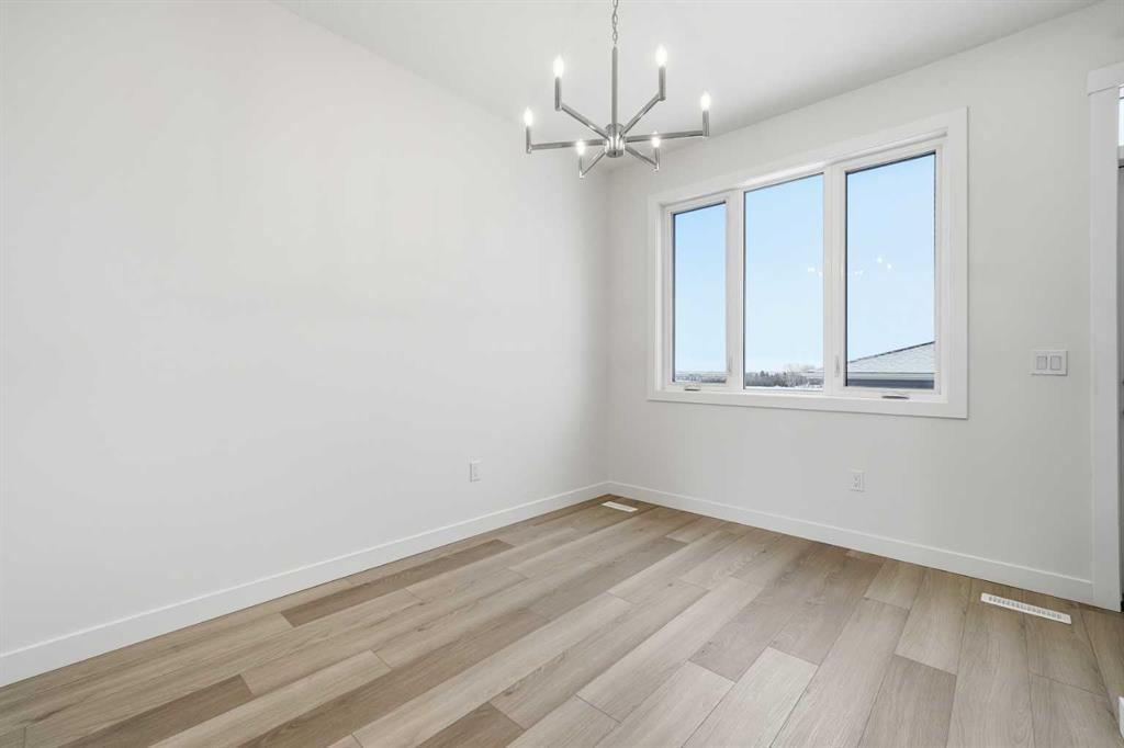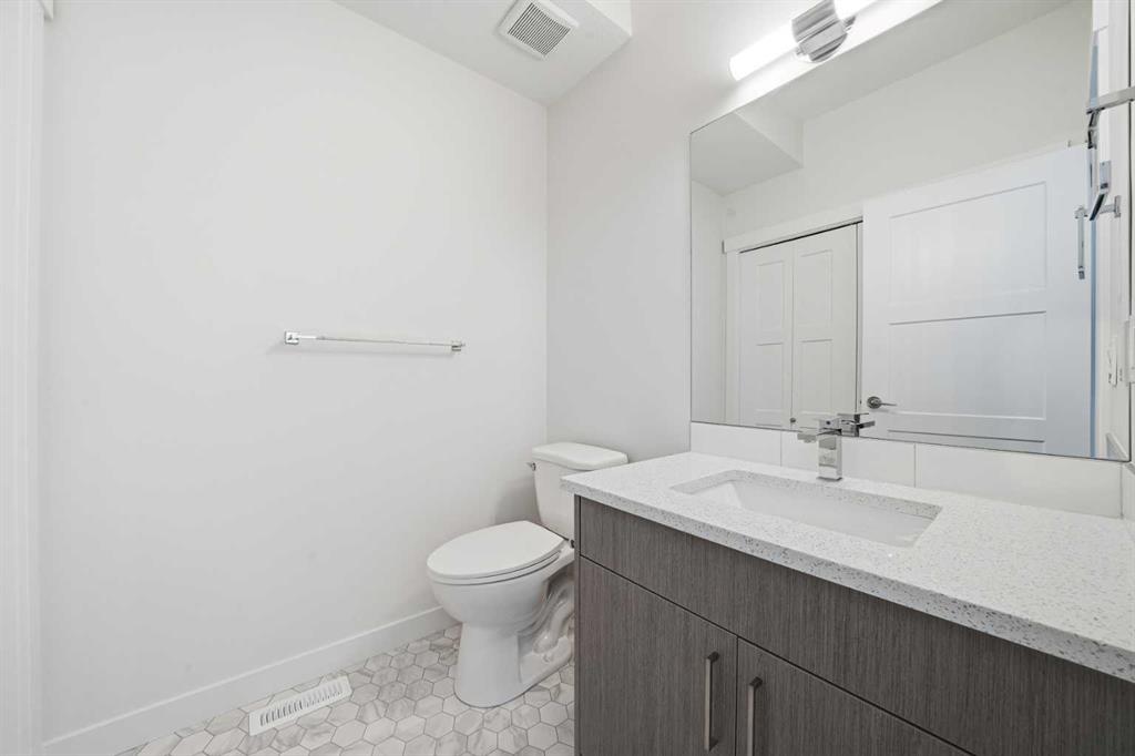 Builder incentive included: free basement development with purchase. Welcome to this brand new two storey duplex offering over 1,300 square feet of thoughtfully designed living space with 3 bedrooms and 2.5 bathrooms. With a fully developed basement included by the builder, this home delivers exceptional value right from day one. Built with modern finishes and a functional layout, it is well suited for first time buyers, families, or investors seeking long term value. The main floor features 9 foot ceilings and an open concept design filled with natural light. The kitchen is both stylish and practical, featuring quartz countertops in the kitchen and bathrooms, a large central island, and modern cabinetry. Durable vinyl plank flooring runs throughout the main level, while carpet adds comfort to the upper bedrooms. Upstairs, the primary bedroom includes a generous closet and a private 3 piece ensuite. Two additional bedrooms and a full bathroom complete the upper level, offering flexibility for family, guests, or a home office. A separate side entrance enhances functionality and adds versatility for the fully developed basement. Triple pane windows improve energy efficiency and year round comfort throughout the home. Outside, the property offers rear lane access and a detached double garage. Located close to parks, playgrounds, walking paths, schools, shopping, and major routes, this home delivers modern design, efficient use of space, and everyday convenience.