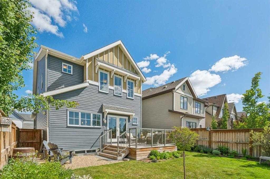 Welcome to this beautifully maintained 3-bedroom, 2.5-bathroom home backs onto large green field, next to the school in the heart of Reunion, Airdrie. Offering 2168 sq. ft. of bright, inviting living space with a versatile bonus/flex room, this home truly stands out for its thoughtful layout and pride of ownership. Step inside to a spacious entryway and rich hardwood floors that flow seamlessly throughout the main level. The open-concept design creates an airy, connected feel, while south-facing windows fill the home with natural light all day long. On cooler evenings, unwind by the cozy gas fireplace in the generous living room. The chef’s kitchen is a perfect hub for family gatherings and entertaining, featuring a gas stove, stainless steel appliances, ample counter space, and a large island with breakfast bar. A spacious mudroom with built-in lockers keeps everything organized as you come and go. Upstairs, a bright bonus room offers flexibility for a family retreat, play area, or home office. The primary suite overlooks the backyard and includes a walk-in closet and spa-like ensuite. Two additional bedrooms, a full bath, and convenient upper-floor laundry complete the level. The bright, unfinished basement is ready for your ideas—whether you envision a rec room, home gym, or additional living space, the possibilities are endless. Outside, enjoy the south-facing, fully landscaped, and fenced backyard, complete with a spacious deck and backs onto plenty of green space for play or relaxation. With Herons Crossing (K–8) School just across the back field, plus parks, playgrounds, and shopping nearby, this home perfectly blends comfort and convenience. Additional features include air conditioning, a double attached garage, and newly installed permanent exterior lights . Don’t miss this rare opportunity to own a warm, inviting home in a friendly, family-oriented community—book your private showing today!
