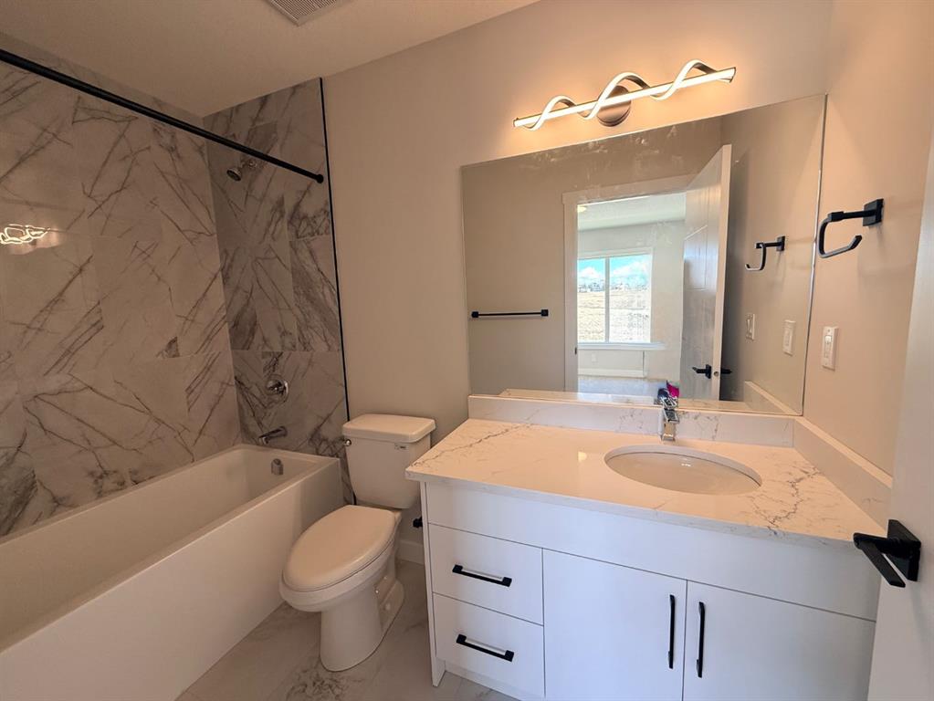 NO Condo Fee! This new built home has spacious 3 bedrooms and 2 full bathrooms upstairs and a half-bathroom on the main floor, modern kitchen, quartz countertops and island, front porch, back yard and a sun deck. Well designed living space with modern appliances and finishes, 9 feet ceiling on the main floor and basement. Rear lane access and 2 car parking pad. Crossfield is a quiet and rapidly growing town which has well rated one elementary and one high school, day care, golf course, parks, playgrounds, and other amenities. Strategically located near Airdrie that’s 10 minutes drive to Superstore, 15 minutes to Balzac, 25 minutes to Calgary Airport and close to Highway 2 for fast and easy commuting. An ideal opportunity for first time buyers or investors – book you’re showing today!