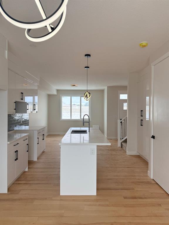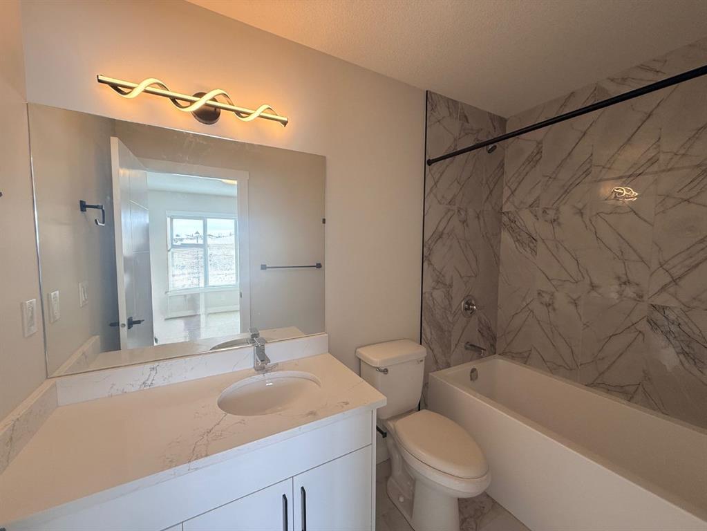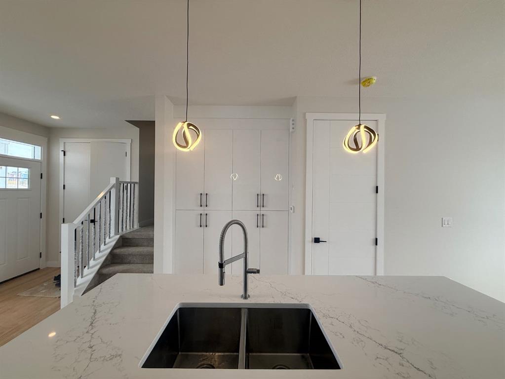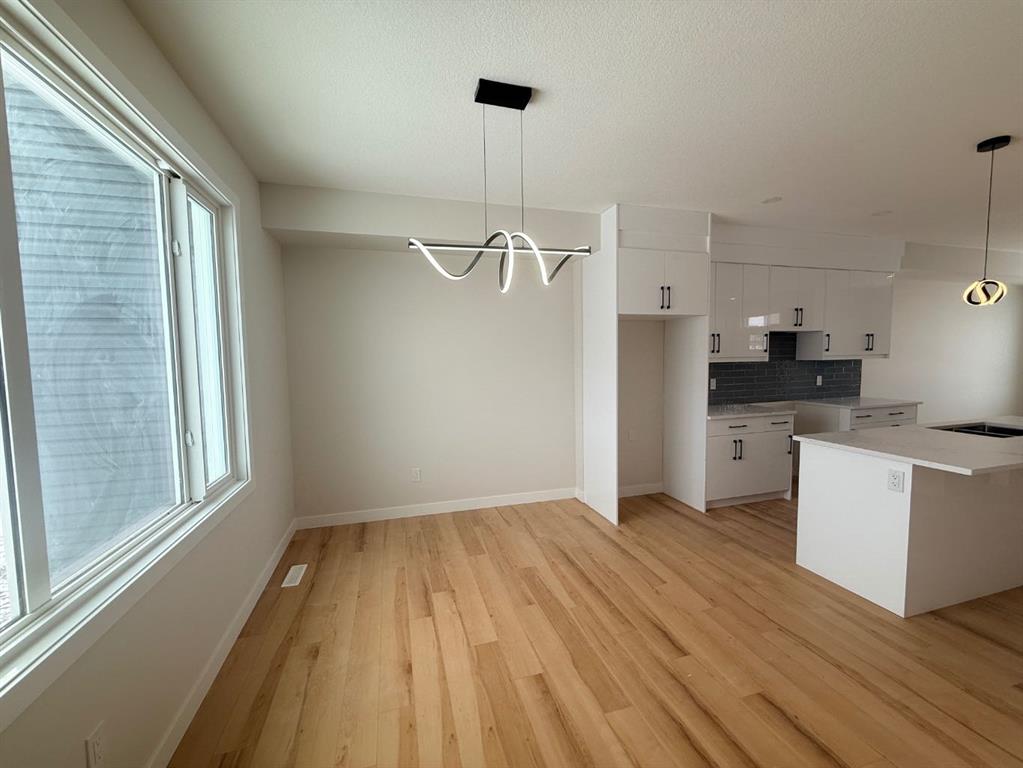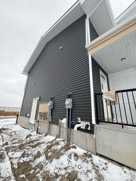 NO Condo Fee! This new built home has spacious 3 bedrooms and 2 full bathrooms upstairs and a half-bathroom on the main floor, modern kitchen, quartz countertops and island, front porch, back yard and a sun deck. Well designed living space with custom finishes and modern appliances, 9 feet ceiling on the main floor and basement. Rear lane access and 2 car concrete parking pad. Walkout basement with separate entrance and side alley access. Crossfield is a quiet and rapidly growing town which has well rated one elementary and one high school, day care, golf course, parks, playgrounds, and other amenities. Strategically located near Airdrie that’s 10 minutes drive to Superstore, 15 minutes to Balzac, 25 minutes to Calgary Airport and close to Highway 2 for fast and easy commuting. An ideal opportunity for first time buyers or investors – book you’re showing today!