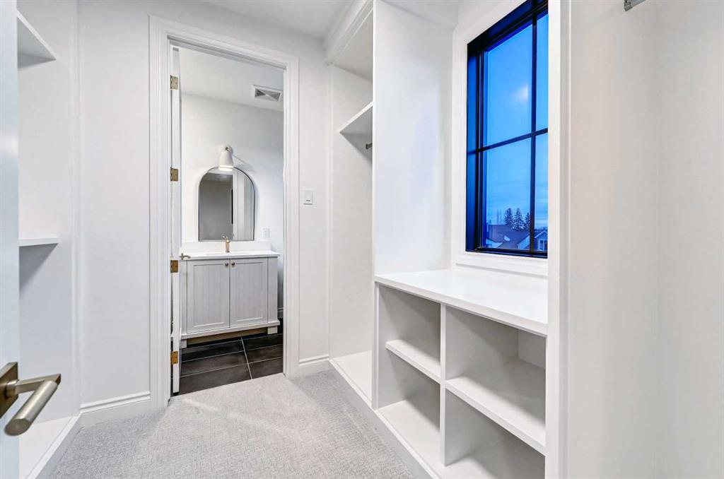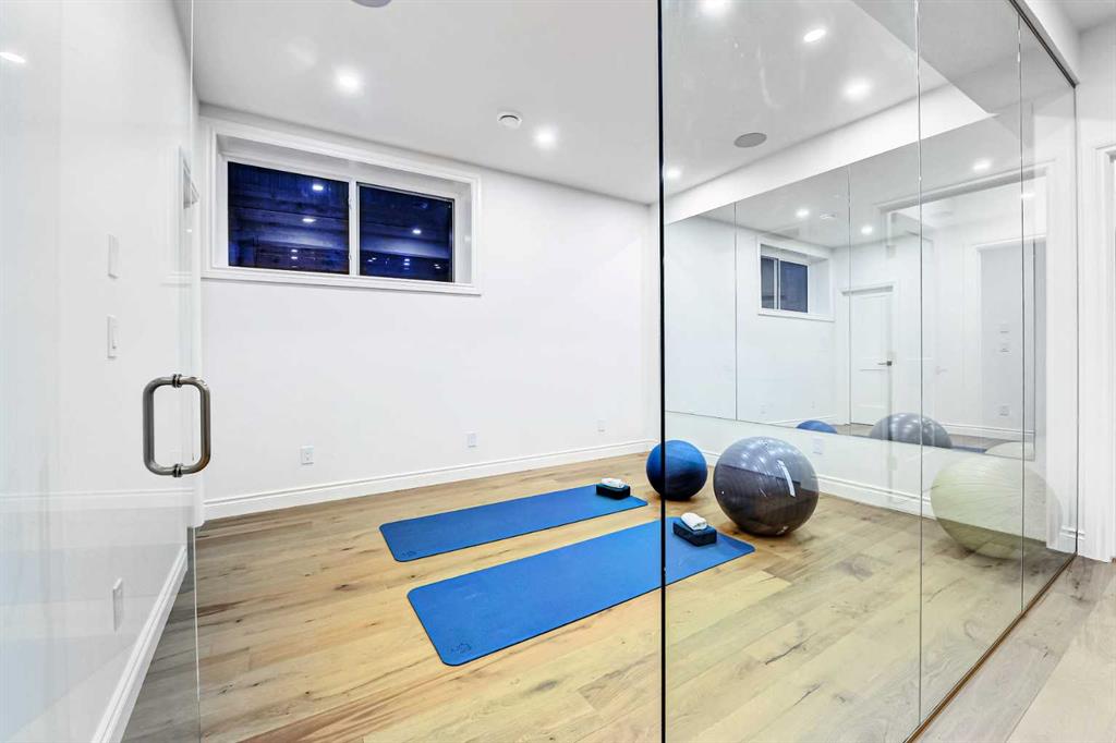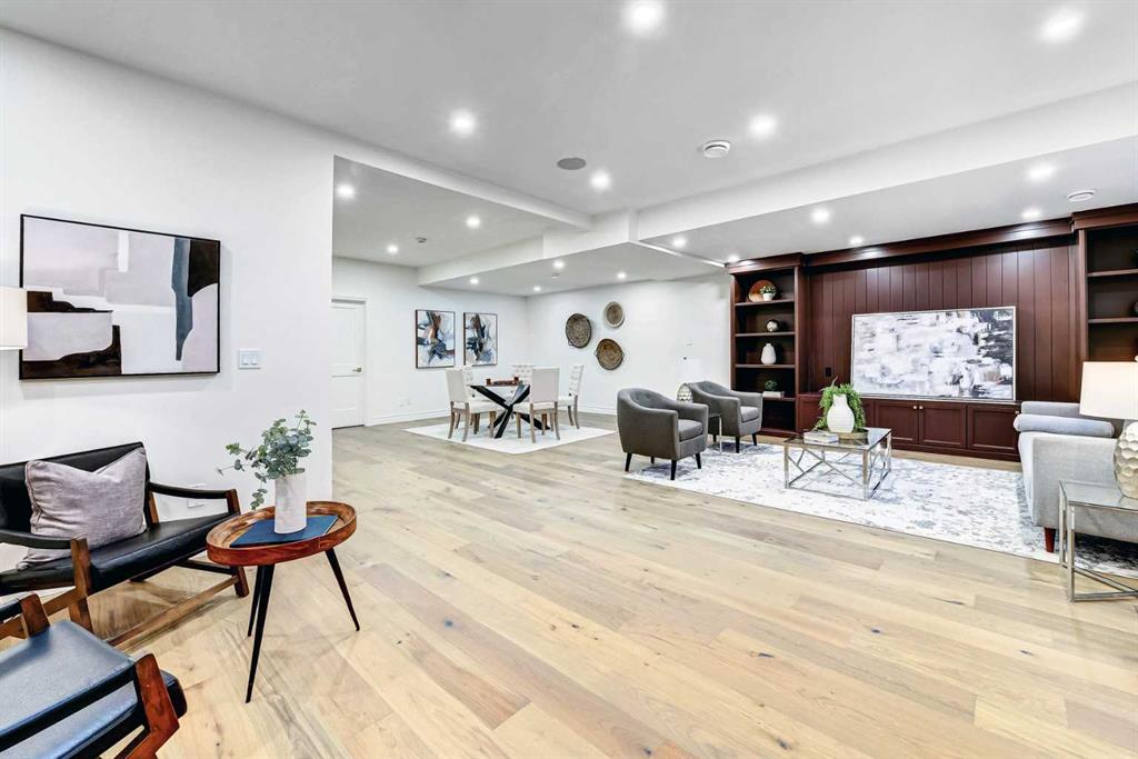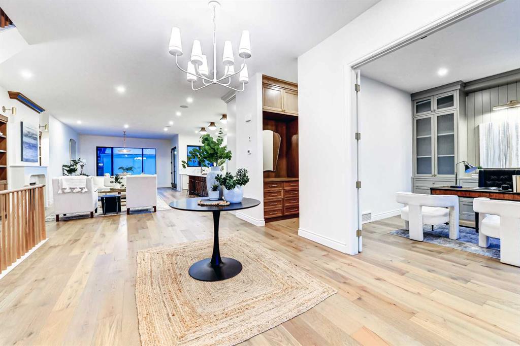 Set on a quiet street in the heart of Marda Loop, The Bardot is an exceptional custom residence that blends refined French-Country character with contemporary luxury. Thoughtfully designed and built by Cedar Rock Homes with interiors curated by Aly Velji Designs, this home offers four bedrooms, 4.5 bathrooms, and a rare triple-car garage. The striking exterior showcases a sophisticated mix of stone, stucco, and Hardie panel, accented by an aluminum cedar soffit entry, statement front door, and custom aluminum Lux windows with black interior cladding. The fully landscaped and fenced backyard is designed for low-maintenance enjoyment and features a generous composite patio with aluminum and glass railing, creating a private outdoor retreat. Inside, wide plank white oak engineered hardwood flooring flows throughout all levels, complemented by solid core doors and custom site-built cabinetry with wood dovetail drawers. Soaring 10-foot ceilings on the main floor and 9-foot ceilings on both the upper and lower levels enhance the home’s bright and open feel. The main living area is anchored by a cozy gas fireplace and transitions seamlessly into the chef-inspired kitchen featuring a premium JennAir appliance package, including a 48-inch gas range, 48-inch panelled refrigerator, panelled dishwasher, and a microwave drawer integrated into the island with additional storage on both sides. A curved quartz slab island, custom cabinetry, and a bespoke hood fan create a stunning focal point, while the adjacent butler’s pantry adds extended storage and elevated lighting. The dining space is highlighted by a custom oak sideboard, and a spacious mudroom with tailored millwork ensures everyday functionality. A private front office is thoughtfully designed with French doors, floor plugs, and custom glass-front cabinetry. Upstairs, three generously sized bedrooms each feature walk-in closets and private ensuites with heated tile flooring. The primary retreat is highlighted by vaulted ceilings and a spa-inspired ensuite complete with an oversized steam shower with dual rain heads, a freestanding tub, solid slab stone backsplash, and custom hanging mirrors. A beautifully finished upper-level laundry room with sink, hanging rod, and custom cabinetry completes the floor. The fully finished basement expands the living space with a gym, TV and games area, wet bar with beverage fridge, full bathroom, and ample storage. Mechanically, the home is equipped with dual-zone high-efficiency furnaces with humidifiers, along with rough-ins for in-floor basement heating, air conditioning, central vacuum, speakers, security system, and exterior cameras. Every detail of The Bardot reflects intentional design, superior craftsmanship, and timeless appeal, all just steps from Marda Loop’s vibrant shops, restaurants, parks, schools, and only minutes from downtown Calgary.