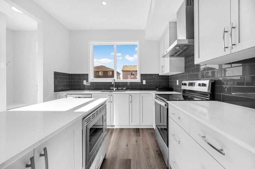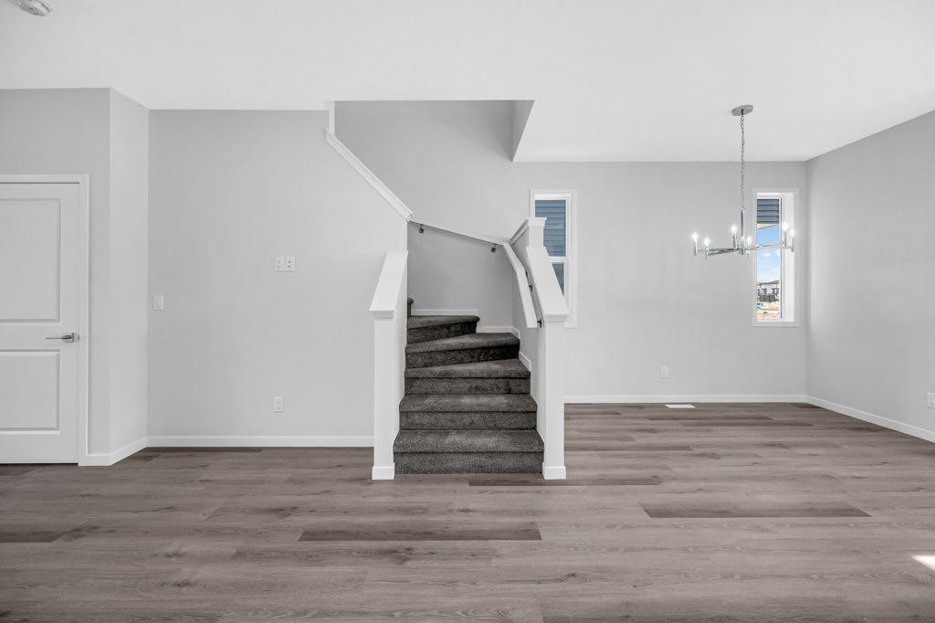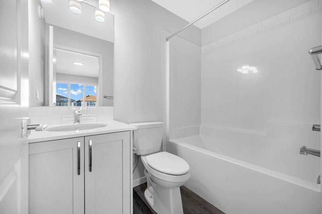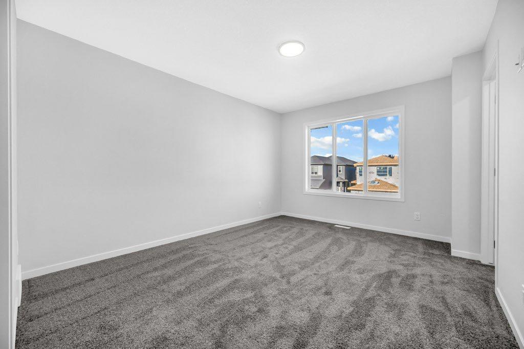 Welcome to this brand new, modern home in the highly desirable community of Cornerstone! This east-facing residence offers a low-maintenance lifestyle and a fantastic location just steps away from upcoming retail shops, banks, and restaurants, with the future Calgary C-Train line only minutes away. As you enter, you’re greeted by a spacious foyer with a convenient closet and a bright, open living area featuring large windows that fill the space with natural light – perfect for cozy gatherings. The 9 foot ceilings on the main floor enhance the open, airy feel throughout. The chef-inspired kitchen boasts quartz countertops, upgraded cabinetry, stainless steel appliances, a stylish backsplash, vinyl plank flooring, and pot lights for a modern touch. Upstairs, you’ll find three generous bedrooms and a convenient laundry closet. The primary suite offers a relaxing retreat with a 4-piece ensuite and a walk-in closet.