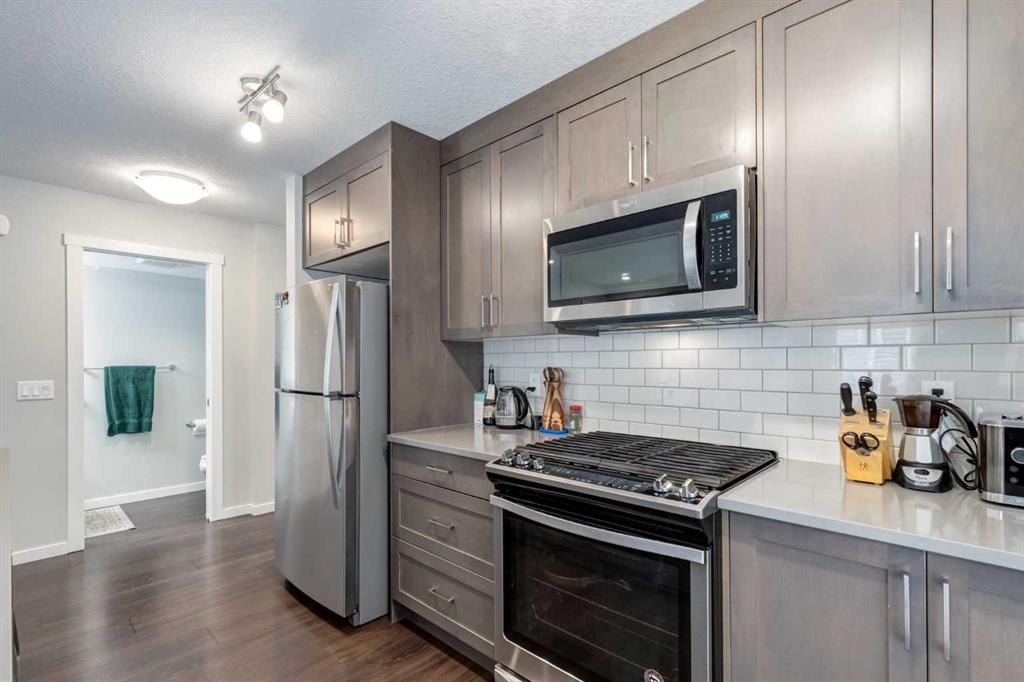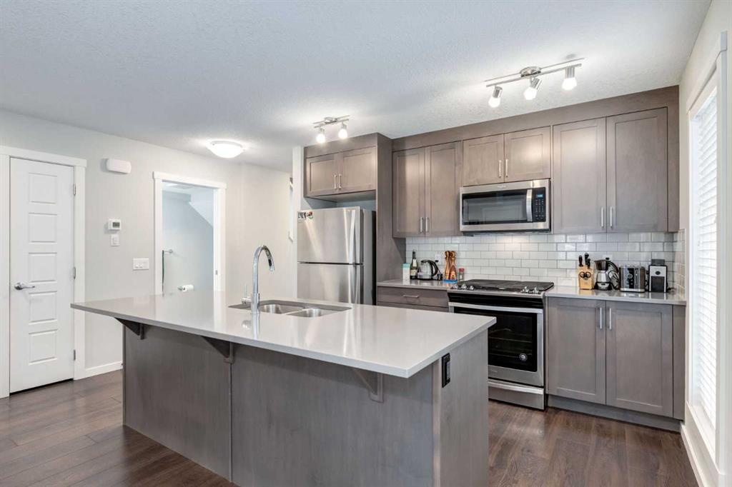 Experience elevated urban living in the heart of Seton with this fantastic CORNER townhome offering over 1,700 SF of thoughtfully designed space. The bright and open-concept main floor is both sophisticated and welcoming. Highlighted by rich hardwood flooring, a cozy electric fireplace and a beautifully appointed kitchen featuring quartz countertops, a large island, gas range, and contemporary finishes all perfect for entertaining or everyday living. A private, fully fenced yard extends the living space outdoors, offering a rare and desirable retreat in townhome living. Upstairs you’ll find a primary suite with walk-in closet and 4 piece ensuite, 2 guest bedrooms which share a 4 piece bathroom and conveniently located laundry closet. The home’s crown jewel is the third-level loft leading to an expansive rooftop patio with southwest exposure. Enjoy sun-filled days, evening sunsets, and long views toward the mountains. Located steps from South Health Campus, the Seton YMCA, shopping, restaurants, entertainment, and the future Green Line LRT, this home blends luxury finishes, lifestyle convenience, and low-maintenance living in one of Calgary’s most vibrant and rapidly growing communities.