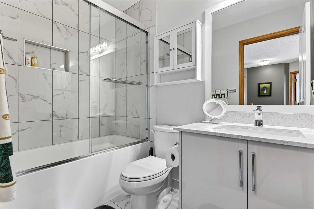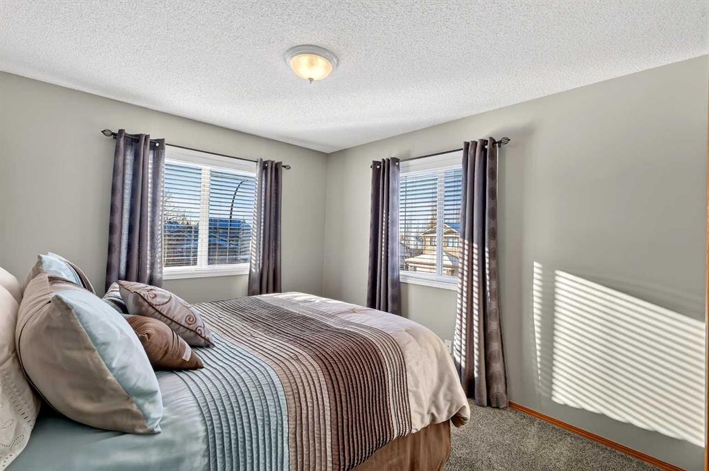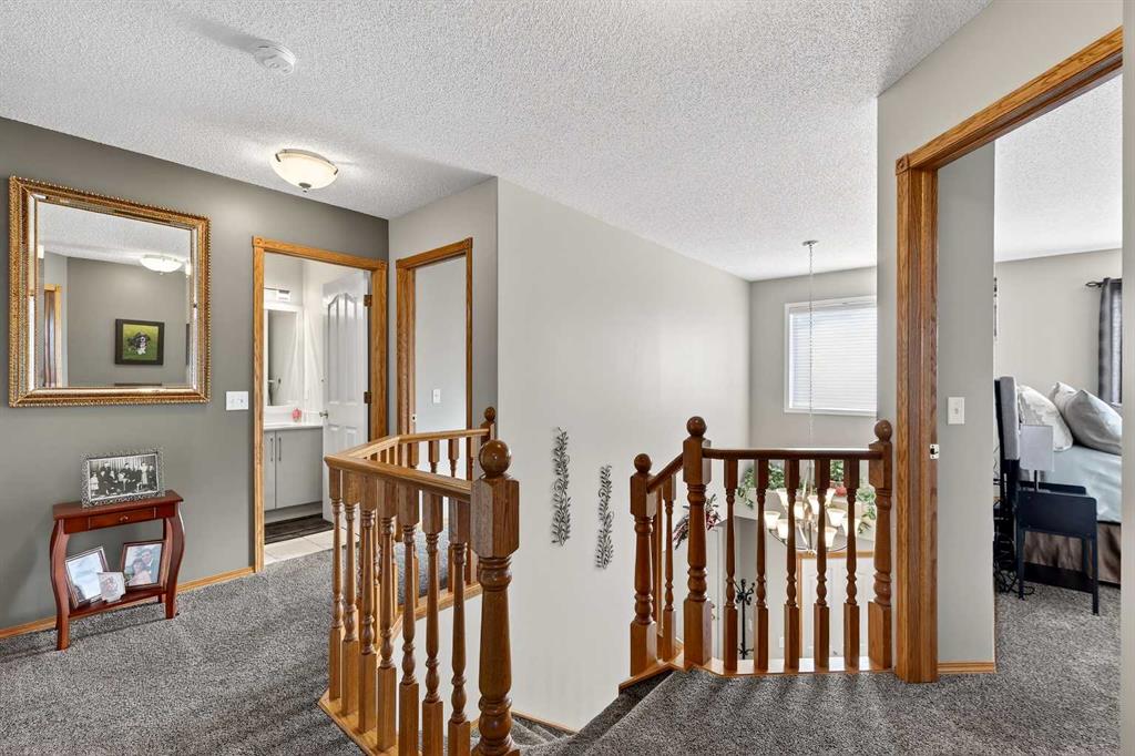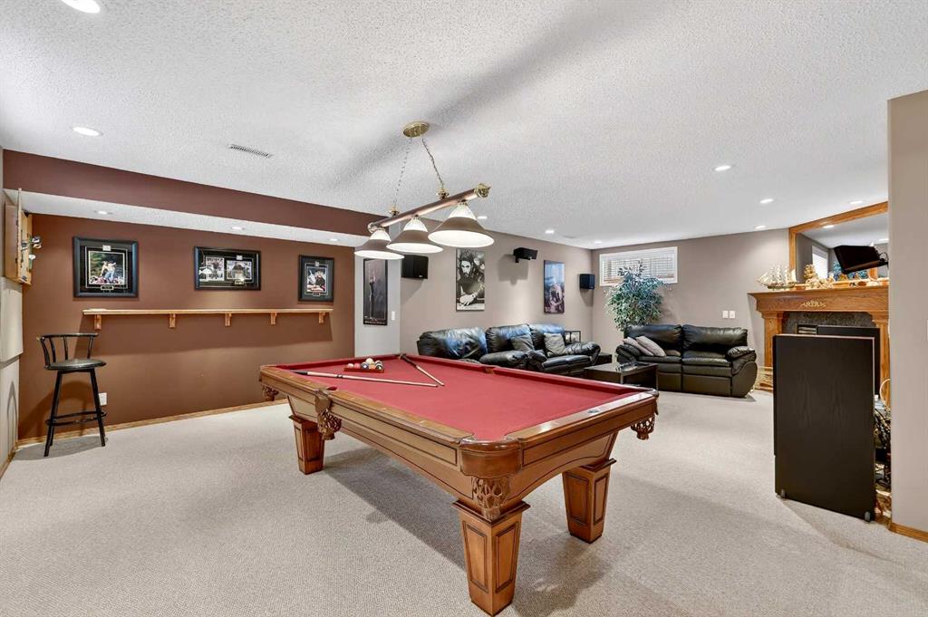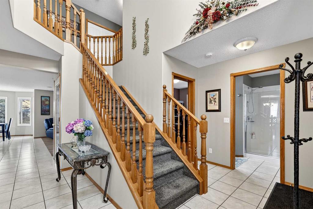 *** OPEN HOUSE Saturday, January 31, 2026 2pm – 4pm *** Just five minutes from Cove Beach, this beautifully updated home is tucked into a quiet street in the Cove, one of Chestermere’s most desirable neighbourhoods. With parks, restaurants, schools, and daily essentials nearby, the location offers unbeatable convenience and lifestyle. Curb appeal starts with an expansive driveway, complete with concrete steps, and clean exterior lines. Inside, a spacious foyer opens into a versatile front den or home office, plus a large formal dining room. The kitchen is both functional and elegant with stainless steel appliances, granite countertops, a large pantry, and a timeless backsplash. The open layout flows into a bright breakfast nook and generous living room with a cozy gas fireplace, ideal for hosting or relaxing. Upstairs, the oversized primary suite feels like a personal retreat, featuring a walk-in closet and a fully renovated ensuite with quartz countertops, soaking tub, dual vanities, and a glass-enclosed shower. Two more large bedrooms share a stylish four-piece bathroom. Downstairs is built for entertainment with a full wet bar, bar fridge, and a spacious rec room complete with a second fireplace and included pool table. Whether it’s game night or movie night, there’s room for it all. Step outside to a custom landscaped backyard with underground sprinklers, a stamped concrete patio, handcrafted bridge, storage shed, and large deck off the living room. Central air conditioning keeps the interior comfortable all year. The triple garage is heated, insulated, and includes hot and cold water, a floor drain system, and a new opener on the double door. This home also features elegant permanent exterior trim lighting for year-round curb appeal. With extensive upgrades, thoughtful layout, and prime location, this property is a rare find. Schedule your private showing today.
