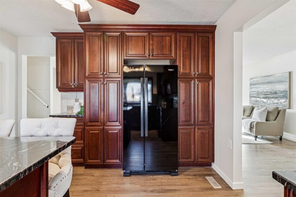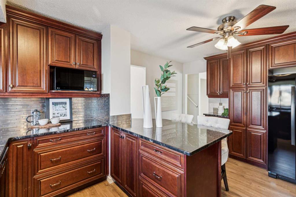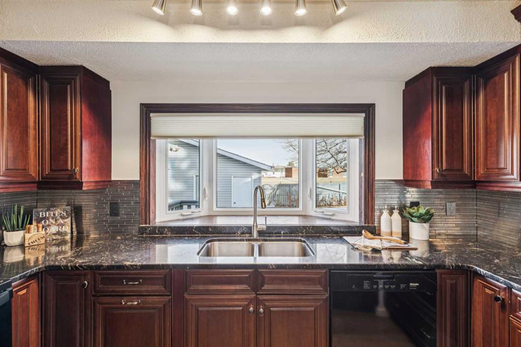 OPEN HOUSE – Saturday, February 7 from 1:00–4:00 – Backing directly onto Sam Livingston Elementary School field and expansive green space, this beautifully renovated four-level split delivers space, privacy, and an exceptional Lake Bonavista lifestyle. Built by New West Homes with the desirable Camelot floorplan, this well-maintained property has seen extensive updates including new LVP flooring, new carpet, fresh paint, updated windows, and modern mechanicals—making it truly move-in ready. The welcoming foyer opens into a bright, spacious living room with large windows and plenty of room for everyday family living, flowing naturally into the adjoining dining area. The kitchen is set apart for functionality and features Kitchen Craft cabinetry, Titanium granite countertops, a peninsula for added prep space, and a brand-new fridge. Just around the corner, access the backyard oasis complete with a deck, generous lawn, paved alley access, and a detached double garage—perfect for families and entertainers alike.