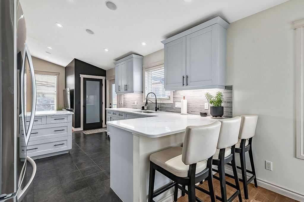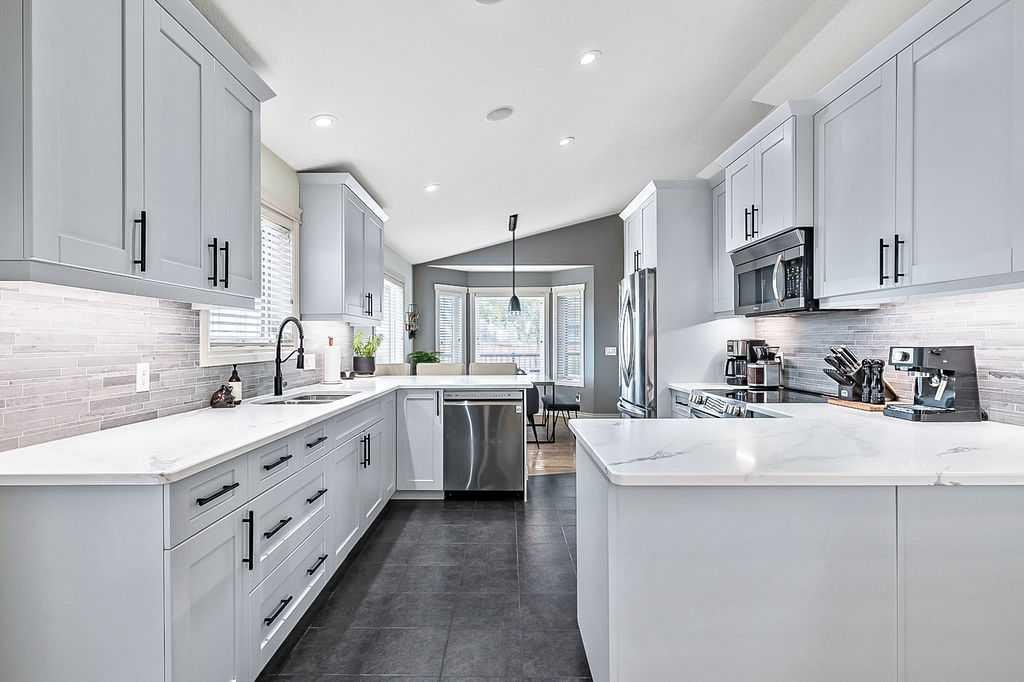 Welcome to this beautifully appointed bungalow, where style, comfort, and functionality come together in perfect harmony. Designed to impress, this spacious home offers elegant living on the main level and a thoughtfully designed illegal suite in the walk-out basement — ideal for multigenerational living, guests, or supplementary income. Main Floor Elegance: vaulted ceilings and a stunning gas fireplace anchor the sophisticated family room. Open-concept kitchen and dining area with seamless access to a large, elevated deck complete with a gas BBQ hookup. The chef’s kitchen is a standout feature, complete with professionally painted cabinetry, newer upgraded stainless steel appliances, rich quartz countertops, under-cabinet lighting, a large peninsula with seating, and direct access to the expansive deck with a gas BBQ hookup perfect for indoor/outdoor living. Three generously sized bedrooms offering comfort and privacy, Main floor laundry for added convenience, Integrated surround sound system throughout , Central air conditioning for year-round comfort Outdoor Excellence: Impressive 28′ x 26′ heated double garage with hot water in-floor heating, 220V power, built-in shelving, and cabinetry. A dream for hobbyists or car enthusiasts. Additional parking beside the garage, perfect for an RV, boat, or multiple vehicles Private yard with direct access from the deck, ideal for entertaining or relaxing in peace. Lumenox custom exterior lighting enhances both curb appeal and security. Walk-Out Lower Level: Large family room that can serve as part of the main home or be closed off for suite privacy. Beautifully finished illegal one-bedroom suite with private access from both inside and outside. Full kitchen, open-concept living and dining area, spacious bedroom, modern bathroom, and private laundry. Enjoy the comfort of hot water in-floor heating throughout the basement. Noteworthy Upgrades: New furnace and HRV unit (2023). New hot water tank (2025). Water softener system. This is more than a home — it’s a lifestyle. With premium finishes, extensive upgrades, and a flexible layout tailored for modern families or those seeking a luxurious investment opportunity, this property truly stands out.