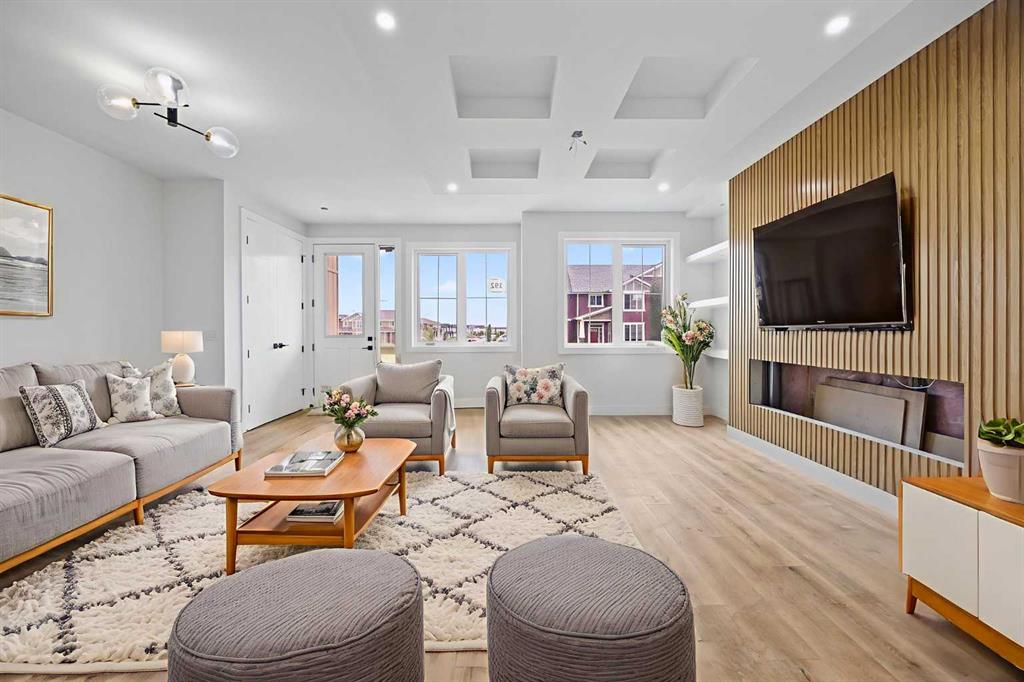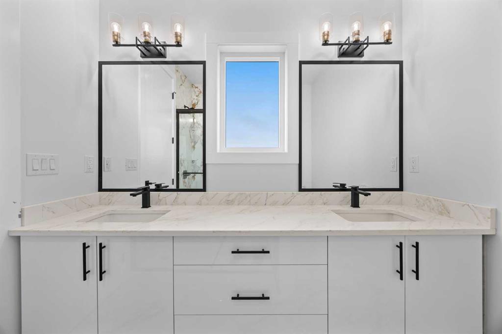 List price includes GST. First-time homebuyers could potentially receive their full GST portion back. Welcome to this stunning semi-detached home in the desirable community of Saddle Ridge, offering over 3,000 sq ft of living space including a legal 2-bedroom basement suite! This beautifully upgraded home is packed with thoughtful details throughout, featuring 9 ft ceilings on all 3 levels, 8 ft doors, sleek black fixtures and hardware, quartz countertops, full railings, and large windows that flood the home with natural light. The main floor greets you with a spacious living room showcasing a modern built-in electric fireplace and custom shelving, leading into a chef’s dream kitchen with full built-in design, stylish two-toned cabinetry, gas cooktop, built-in oven and microwave, chimney hood fan, oversized island, and a pantry with wooden shelving. A full-size bedroom and a 3-piece bathroom with tiled shower add extra versatility on the main floor, along with a mudroom featuring built-in bench, cabinetry, and coat hooks. Upstairs you’ll find a bright family room with another electric fireplace and a balcony, two generous bedrooms, a 4-piece bath, convenient laundry room, plus a luxurious primary suite with dual-sink vanity, tiled shower, and custom walk-in closet. The legal secondary suite in the basement is finished to the same high standard, complete with 2 bedrooms, full kitchen, living room, 4-piece bath, and separate laundry—perfect for extended family or rental income. With every closet and pantry fitted with custom wooden shelving, upgraded finishes throughout, and a rare combination of space and style, this home truly has it all! Ideally located with quick access to Calgary International Airport, major highways, LRT, schools, shopping, recreation, and hospitals—this move-in ready home is an opportunity you don’t want to miss! Photos are representative of next unit. very similar selection.