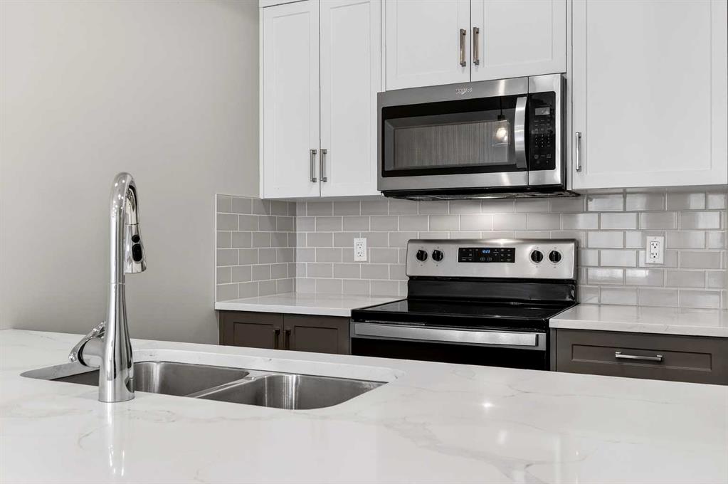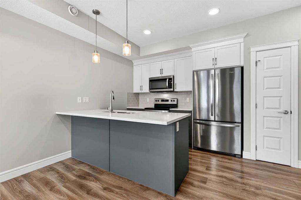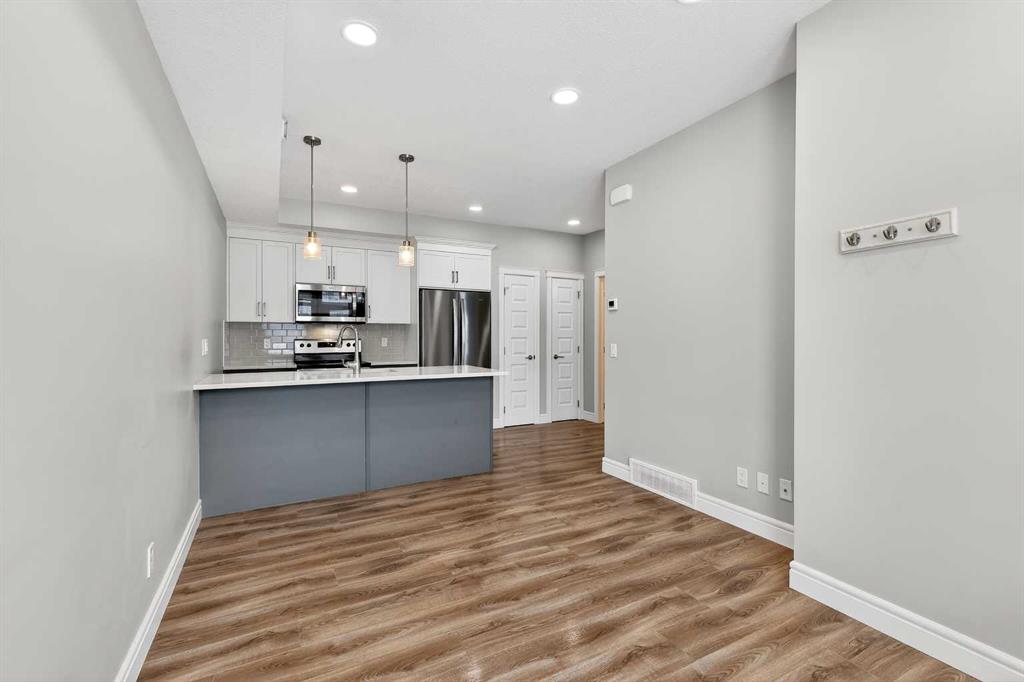 Welcome to this perfect starter home designed with ample living space and a welcoming layout that’s ideal for entertaining – The “Cedar,” built by Rohit Communities. It’s especially well-suited for healthcare professionals or anyone eager to enjoy the vibrant, walkable lifestyle of Seton, with its restaurants, shops, and everyday amenities just steps away. This is a great opportunity to transition from renting to owning a brand-new, low-maintenance home. Showcasing the ‘Contemporary Classic’ Designer Interior, the home features two-tone cabinetry with crisp white uppers and sleek grey lowers, complemented by warm wood accents, plush carpeting, brushed chrome fixtures, and stylish designer lighting. The property also includes a titled parking stall and low condo fees!