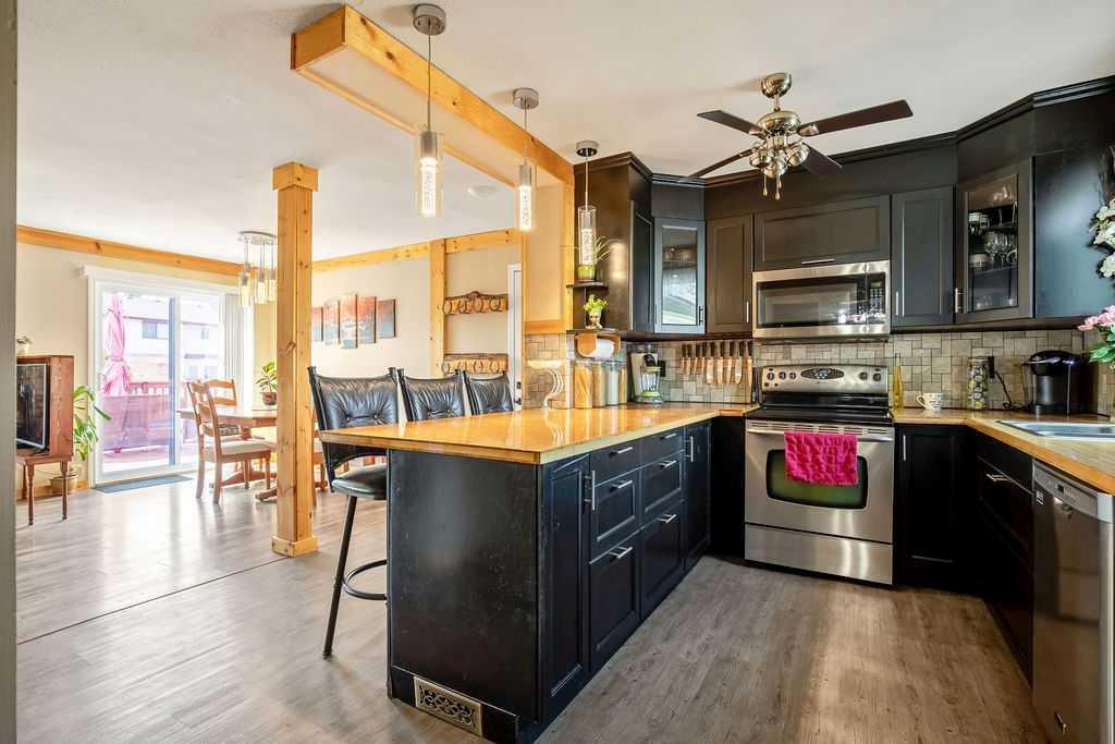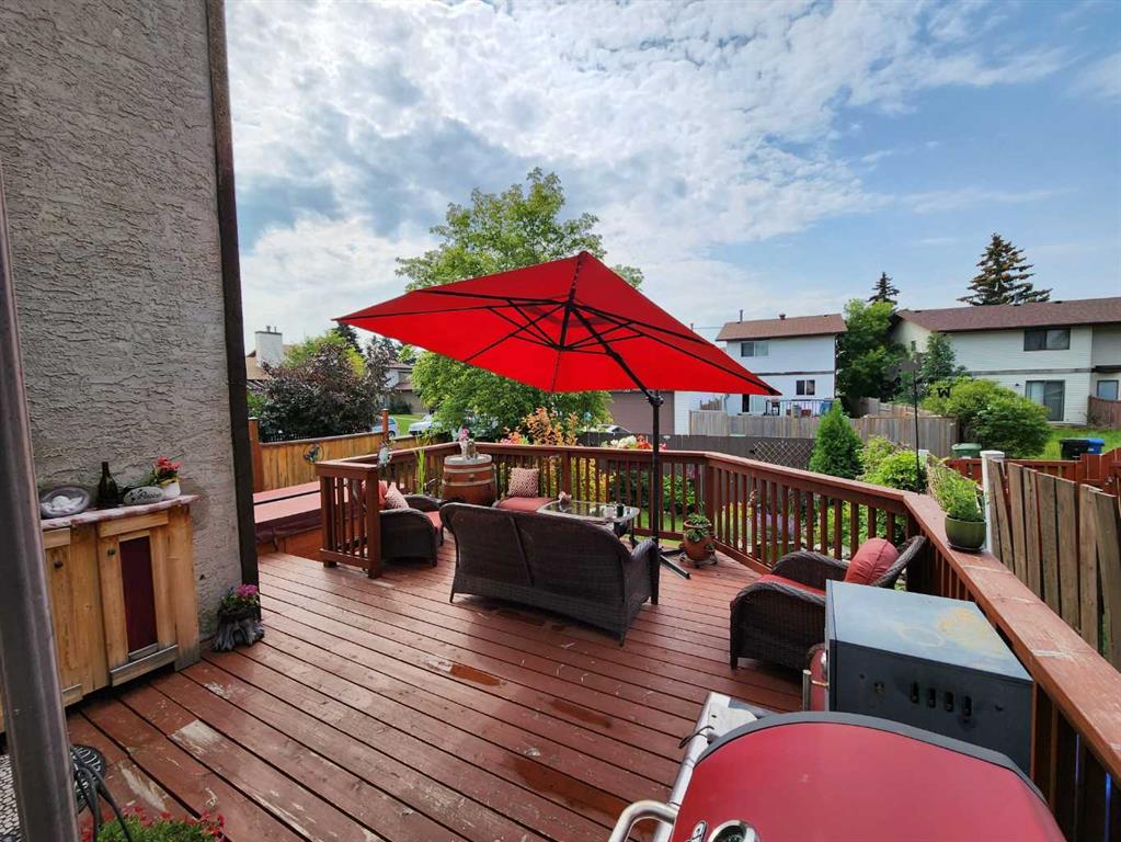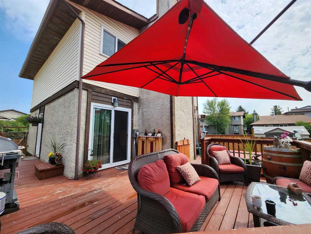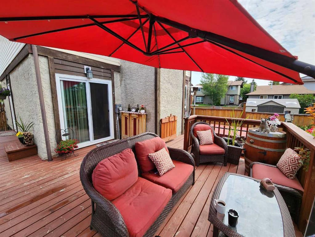 The open main floor offers large living room, dining room with patio doors to the deck bringing in the natural light and a spacious kitchen with lots of work space, great for family or entertaining. A convenient 2 piece bathroom finishes off the main floor. Upstairs you will find 3 good sized bedrooms and an updated 4 piece bath with a jetted tub and large walk-in shower with dual shower heads. The fully finished basement offers some great additional family living space. Since purchasing this home 10 years ago, the seller has put in new windows, sliding doors off the dining room, tankless hot water, new furnace, new roof, new carpet and the kitchen and bathroom have been updated. There is a single driveway that allows 2 cars to park tandem.