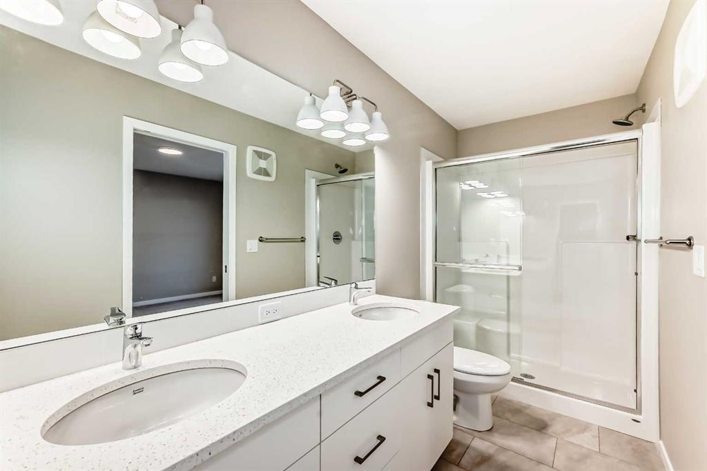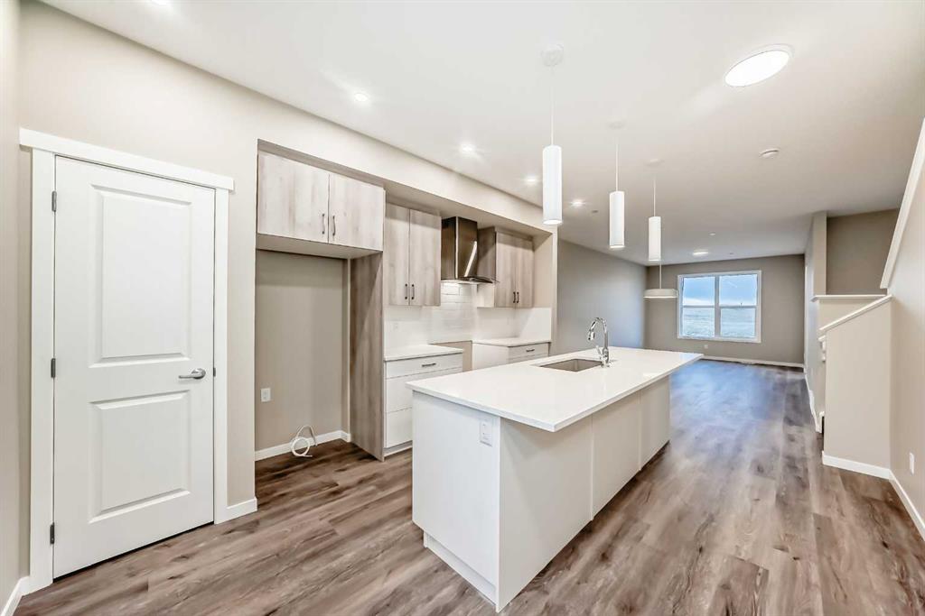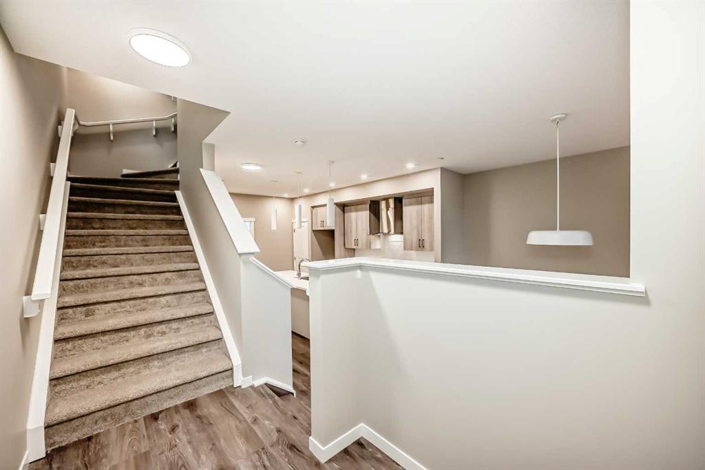 This brand-new “Rayn” pairs stylish family living with built-in flexibility thanks to a separate side entrance—perfect for a future suite or private lower-level development (A secondary suite would be subject to approval and permitting by the city/municipality). Inside, the main level impresses with warm natural vinyl plank flooring and modern finishes throughout. The central kitchen is the showpiece: natural wood-tone upper cabinets to the bulkhead with classic white lower cabinets, sleek subway backsplash, chimney hood fan, stainless steel appliances, and bright white quartz that wraps an oversized island—ideal for coffee catch-ups or weekend entertaining. The dining area sits perfectly between kitchen and living, comfortably fitting an extended table for holidays. At the rear, the living room features floor-to-ceiling windows for great light, plus a smartly tucked back entry with a 2-piece bath. Two unique spaces elevate daily life: a versatile flex room just off the kitchen (home office, playroom, or gym) and a raised homework/tech nook overlooking the main floor—clean, functional, and surprisingly fun. Upstairs, a cozy bonus room anchors the level (movie nights, play space, or reading corner). The primary retreat sits quietly at the back with an oversized window, a generous walk-in closet, and a stylish 4-piece ensuite featuring dual sinks and a full-size shower—finishes you’d expect in a much larger home.