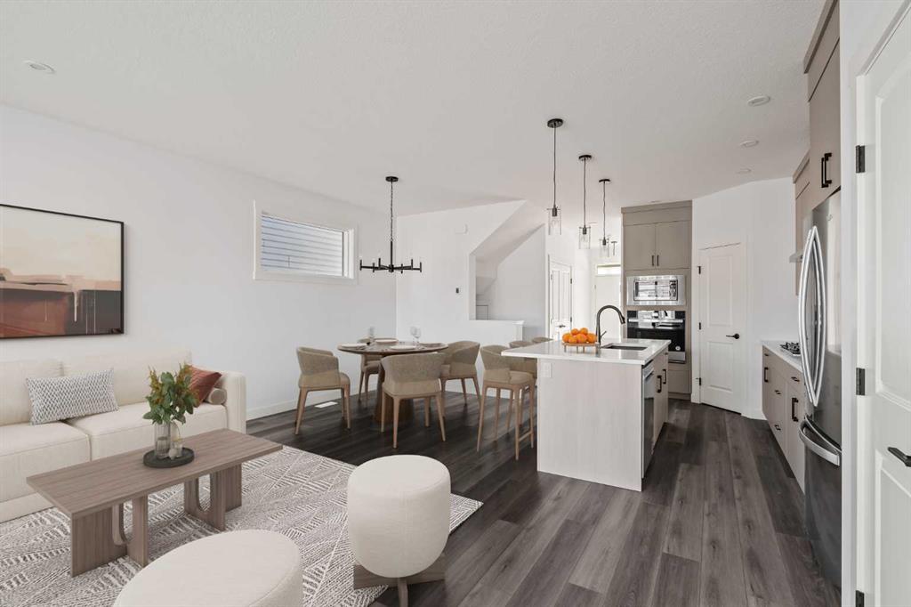 The Carlisle 2 is a thoughtfully designed home offering nearly 1,900 sq. ft. of beautifully planned living space, complete with 3 bedrooms, 2.5 bathrooms, a main floor office/flex room, an upper-level bonus room, and a full basement. Perfect for families or professionals, this home combines functionality with modern style. The open-concept main level is bright and inviting, with 9-foot ceilings, luxury vinyl plank flooring, and oversized front and rear windows that fill the home with natural light all day long. A versatile den/flex room on the main level makes the perfect home office, study, or playroom. At the heart of the home, the gourmet kitchen features full-height cabinetry, quartz countertops, a spacious corner pantry, and a large central island with a flush eating bar. A premium stainless steel appliance package is included, complete with a built-in oven and microwave, chimney hood fan, and cooktop. The kitchen overlooks both the dining area and the great room, making it the ideal space for entertaining or everyday family living. A rear entrance leads to the private backyard, complete with a BBQ gas line for everyday convenience and the main level is complete with a 2pc powder room. Upstairs, a central bonus room separates the spacious primary suite from the secondary bedrooms, providing privacy and flexibility. The sun-filled primary retreat includes a walk-in closet and a 4-piece ensuite with dual sinks and a walk-in shower. Two additional bedrooms, a full bathroom, and a convenient upper laundry room complete this level. The basement offers endless opportunities for future development, with 9’ foundation walls, rough-ins for a 4-piece bathroom and sink, oversized windows, and private backyard access via the side entrance. Located in the vibrant community of Seton, this brand-new home will be move-in ready this fall and is just steps from countless amenities and the South Calgary Health Campus. Builder warranty and Alberta New Home Warranty allow you to purchase with peace of mind – start enjoying your brand new home this fall! Note: Home is under construction. Photos are of a showhome model and not an exact representation of the property for sale.