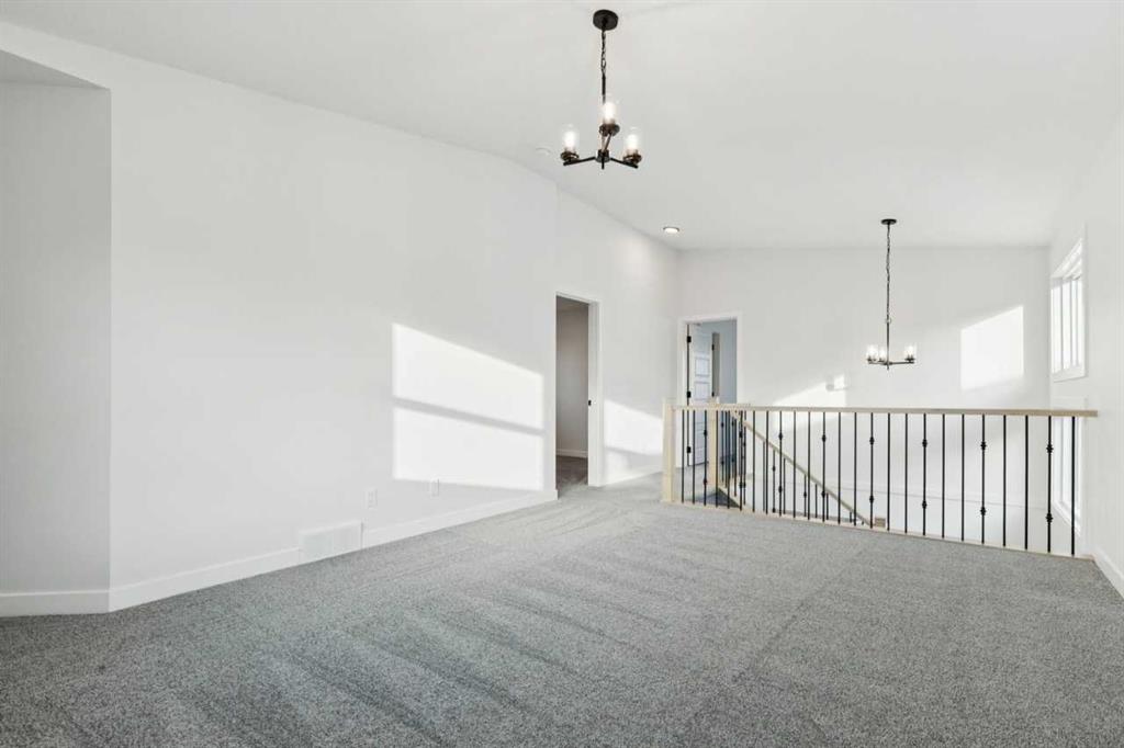 Relax in the bright great room with an electric fireplace and maple floating shelves, and admire the maple railing with iron spindles throughout the stairwell. Upstairs, unwind in the vaulted bonus room and enjoy two primary bedrooms, each with its own ensuite. A rear deck completes this impressive home built for modern living.