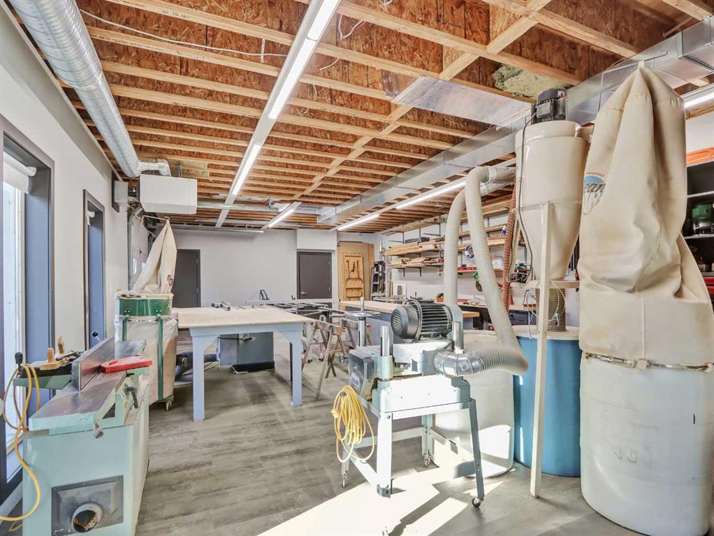 Take a look at this exceptionally well-maintained and recently renovated light industrial unit offering a versatile 39’8” x 20’8” shop with a 9’10” wide x 8’ overhead door and a convenient two-piece washroom on the main level. The building features three separate entry doors, two of which provide direct access to both the shop and the 887 sq. ft. upper-level office space. Upstairs, you will find a thoughtfully designed office area complete with a kitchen and eating bar, hide-a-bed, full bathroom, laundry, and sauna. Additional highlights include three assigned parking stalls, three-phase power, new heating installed in 2024, and a low-maintenance exterior. A well-established condominium board and completed reserve fund study further enhance the appeal of this must see opportunity.
