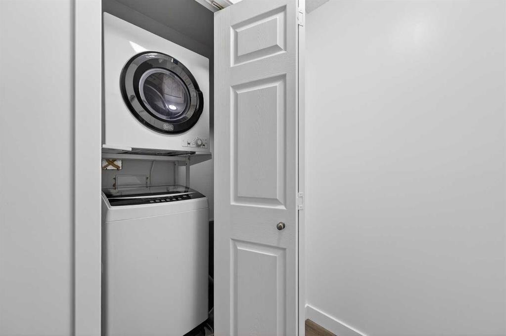 The entire unit has just been professionally repainted and is complemented by updated flooring, enhancing the bright and modern feel of the space. Additional upgrades include all brand new appliances and the addition of an in-suite washer and dryer, a rare feature for the complex.