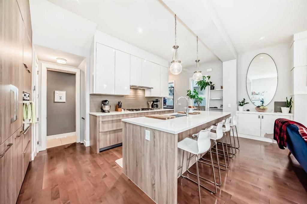 The home itself matches the neighbourhood — exceptional. This fully finished 3 bed, 3.5 bath unit in a well-managed fourplex was built in 2015 and offers soaring 10 ft ceilings, 8 ft doors, and engineered hardwood flooring throughout the main level with 9 ft ceilings on the upper floor and in the basement.