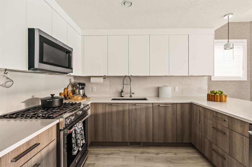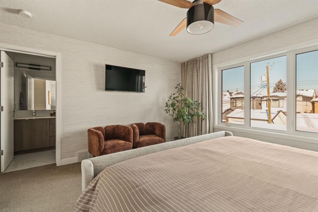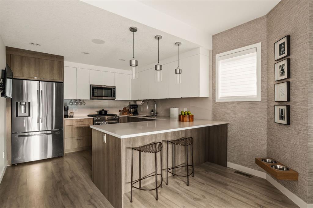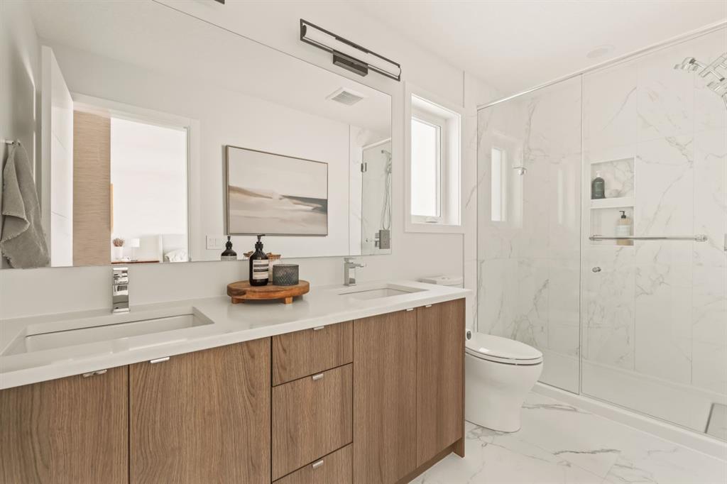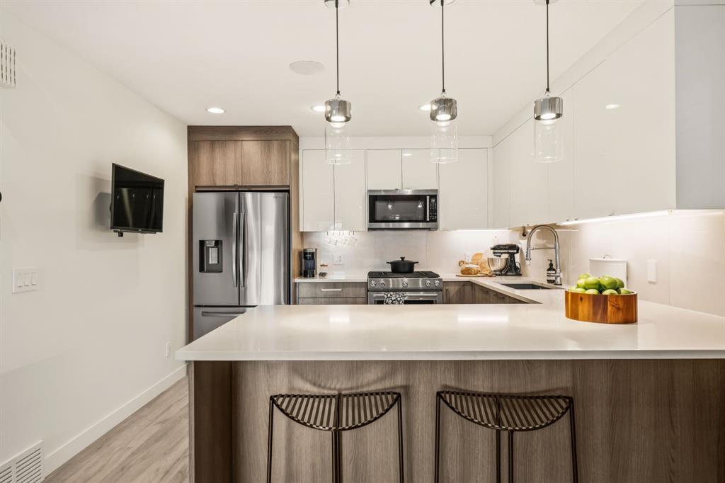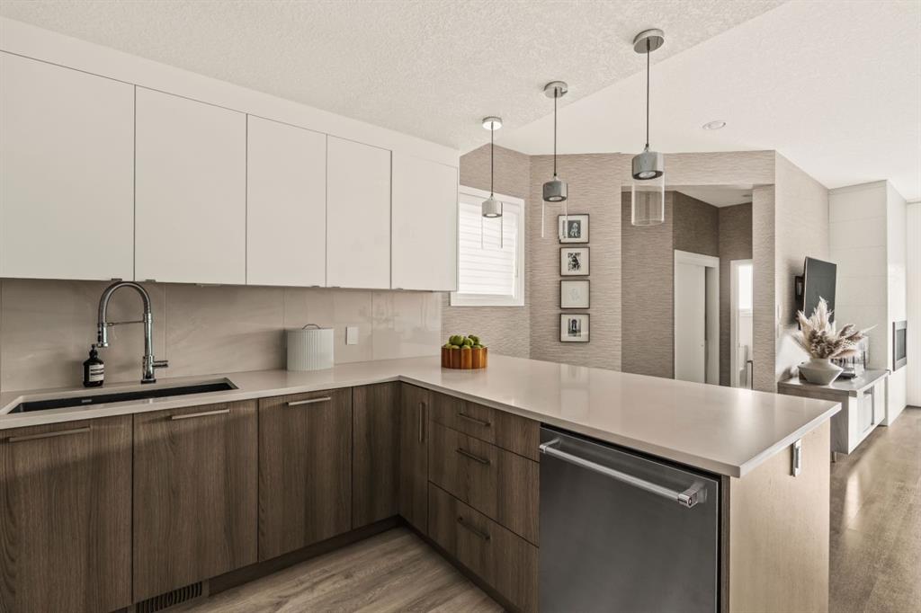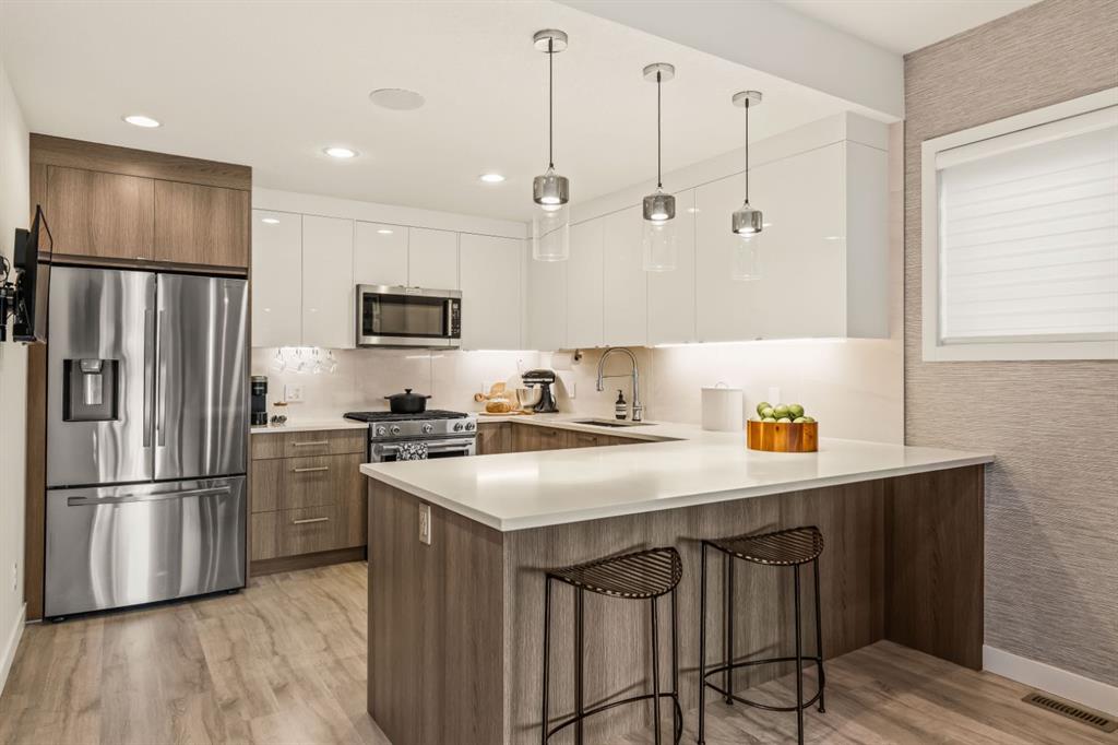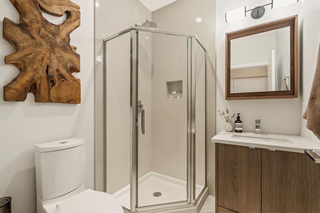DESIGNER LUXURY IN HILLHURST | PRIVATE REAR RESIDENCE | EXTENSIVE UPGRADES | EXCLUSIVE STORAGE Discover an exceptional opportunity to own a beautifully upgraded luxury residence in the heart of Hillhurst, where sophisticated design, premium craftsmanship, and an extensive list of designer upgrades and custom finishes set this home apart. Thoughtfully positioned at the rear of the building, this residence offers a level of privacy and tranquility rarely found in inner-city living while still being moments from the energy and amenities of Kensington. Selected as the premium unit during construction, the rear location was originally priced higher than the front residence for its enhanced privacy, sound separation from Kensington Road, and peaceful outdoor setting. The home also enjoys convenient access to the detached parking area, making daily living both comfortable and practical. Inside, the quality of craftsmanship and design is immediately evident. The main living area is anchored by a stunning chef-inspired kitchen, beautifully appointed with quartz countertops, high-end appliances, and sleek cabinetry. Custom millwork touches, elevated fixtures, and carefully curated materials reflect the tens of thousands of dollars in upgrades invested creating a space that feels both refined and highly functional. A striking architectural skylight above the stairwell fills the home with natural light while adding an elegant design element that enhances the open feel of the interior. The living area seamlessly connects to a private outdoor patio, creating a quiet and inviting space for morning coffee, evening wine, or effortless entertaining. The upper level offers a serene primary retreat designed for comfort and luxury. The spa-inspired ensuite features marble flooring with in-floor heating and an impressive marble walk-in shower, delivering a boutique hotel experience within your own home. The level is further enhanced by custom closet built-ins and convenient second-floor laundry, thoughtfully designed to complement modern living. The fully developed lower level continues the home’s elevated finish quality, offering versatile space ideal for a media/Rec room, fitness area, or guest accommodations. Technology and comfort upgrades throughout the home further elevate the experience, including a Sonos sound system, Life Breath fresh air system, motion-sensing lighting in select areas, and a gas BBQ connection on the private patio. Adding to the home’s exceptional functionality is the detached assigned parking space, which includes a rare additional storage area not available to other units in the complex—providing valuable extra room for seasonal gear, or outdoor equipment. Located in one of Calgary’s most vibrant and desirable communities, this home boasts an impressive Walk Score of 86 and a perfect Bike Score of 100. A Kensington lifestyle dream! Book your showing today!