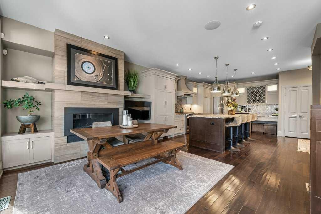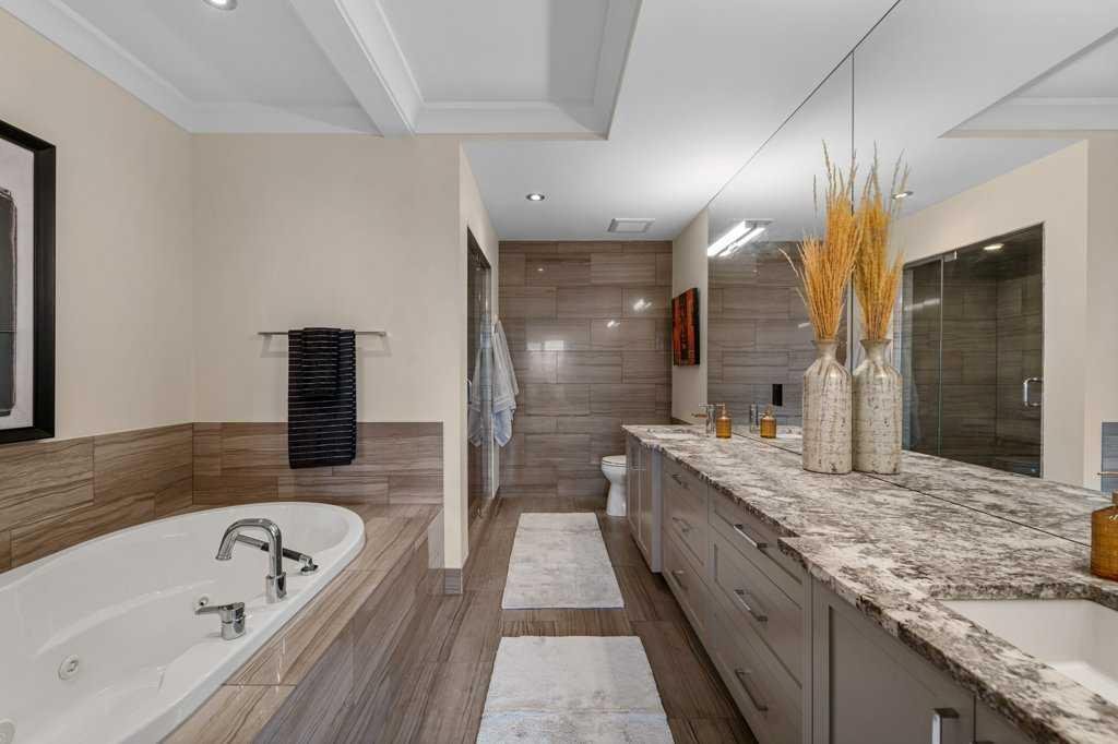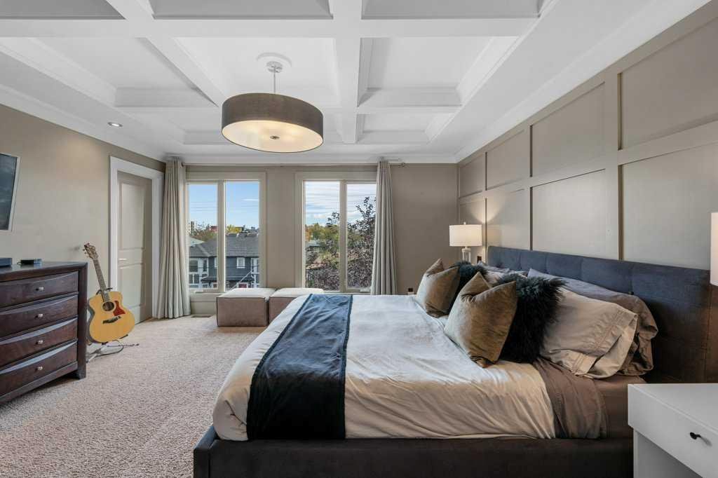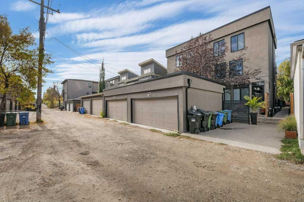 EXECUTIVE LIVING – Inner-City Killarney! Elegant three-level residence showcasing timeless design and premium upgrades – over 2400 sq. ft. in total. Be drawn into the open plan design, perfectly crafted for entertainment on the main level. The gourmet kitchen – with custom cabinetry, crown mouldings, top-tier appliances, caesar stone counters, plus a large island – is perfect for the chef! The adjacent living/dining area boasts coffered 9 ft. ceilings, a wall of windows for natural light and views of the private courtyard, plus built-in cabinetry surrounding a feature gas fireplace. Hand scraped Espresso hardwoods adorn the main and upper living areas. Ascend to the second level, with its beautifully designed living room and adjacent second master bedroom with a walk-in closet and full 4 piece bathroom. The third level showcases a lavish “Master Oasis” with views of downtown, a stunning panelled feature wall, “double” coffered ceilings and an ambience with colour that invites relaxation! A walk-in closet with built-ins also features a full laundry, plus there is a second large closet in the master suite. The sumptuous “spa-like” 5 piece ensuite has a shower with massage body jets & a rain shower head, an oversized jetted tub and dual sinks on a custom caesar stone vanity, plus heated travertine floors! All new light fixtures throughout, plus newly painted bathrooms, master suite and kitchen ceiling. The lower level offers a bright family room, plus a separate office / den, an adjacent 4 piece bathroom, plus the second laundry area in this home! Enjoy your outdoor private courtyard, complete with a patio, gas outlet and its own large tree for shade! The long planter can grow perennials and gets full sun exposure. A detached single garage space, plus a shared visitor parking pad completes this exceptional property. This 4-unit complex has LOW CONDO FEES, is well run & fosters community between the 4 wonderful owners – with a shared Pride of Ownership! A FABULOUS LOCATION – 6 min walk to Westbrook train station, the mall, numerous restaurants & amenities. Your sophisticated private “inner city” oasis is certain to thrill all who experience it!
