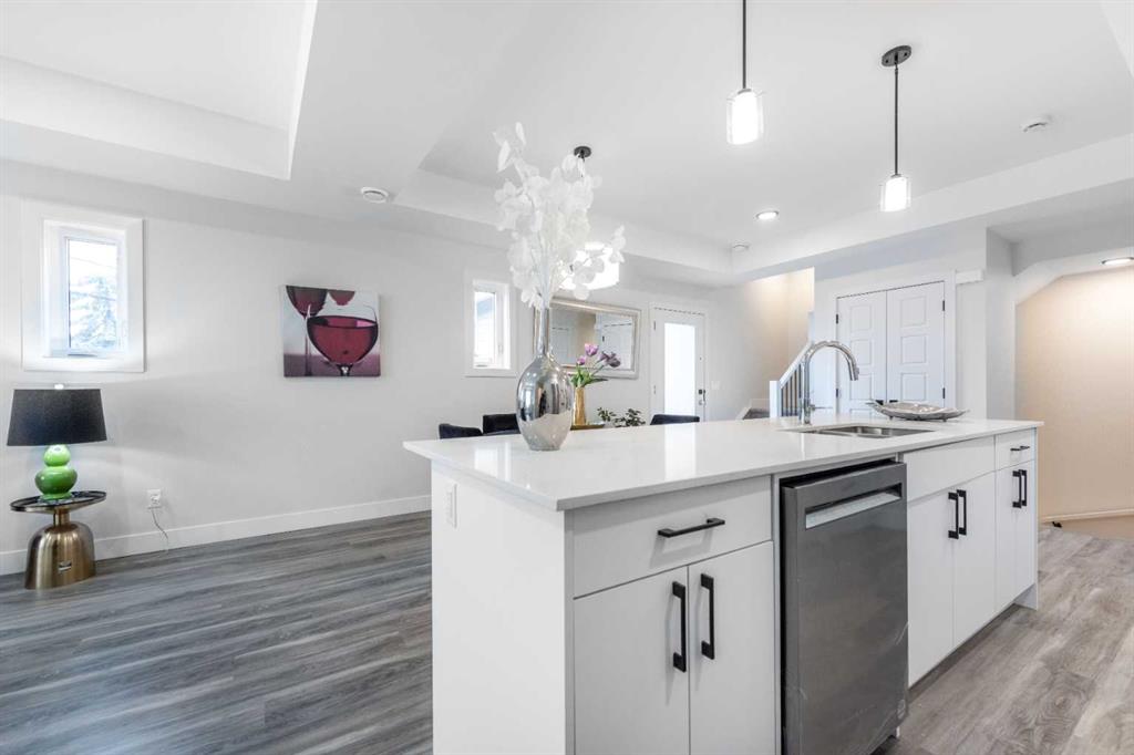 The open-concept main floor boasts a gourmet kitchen with a large island and breakfast bar, seamlessly flowing into a bright great room with a gas fireplace – ideal for entertaining or relaxing in style. Additional features include upper-level laundry, double tandem underground parking, and a private entrance, combining convenience with luxury.