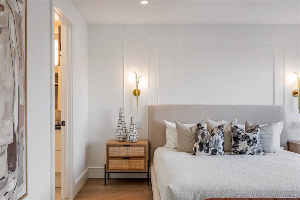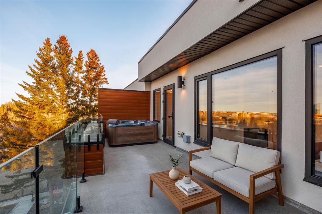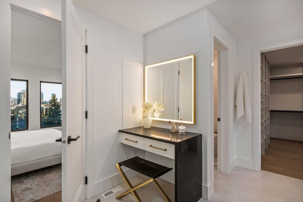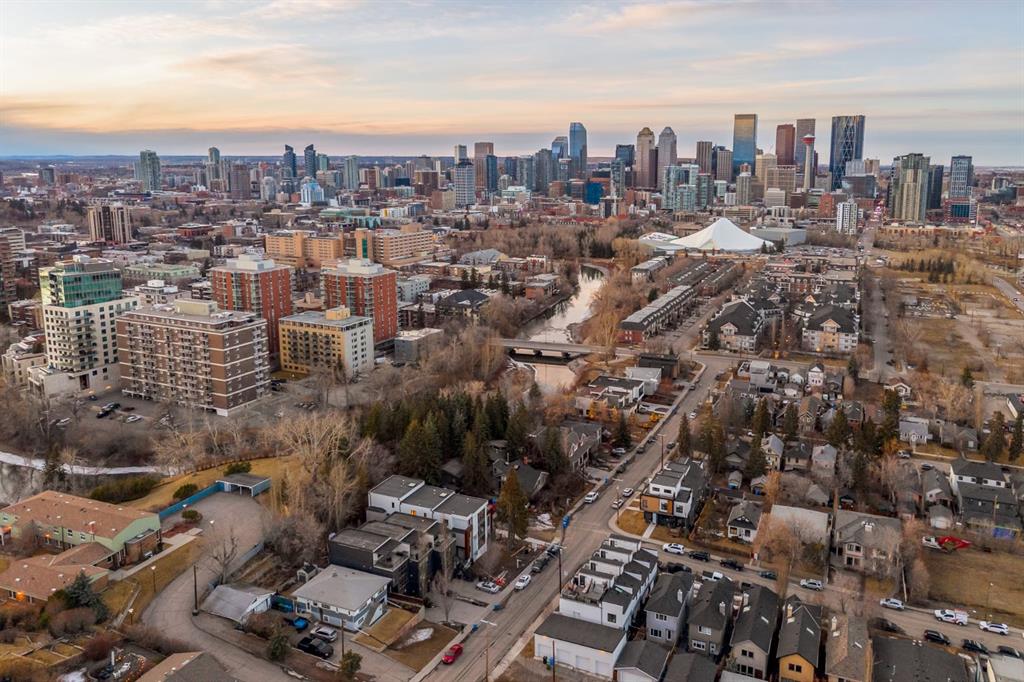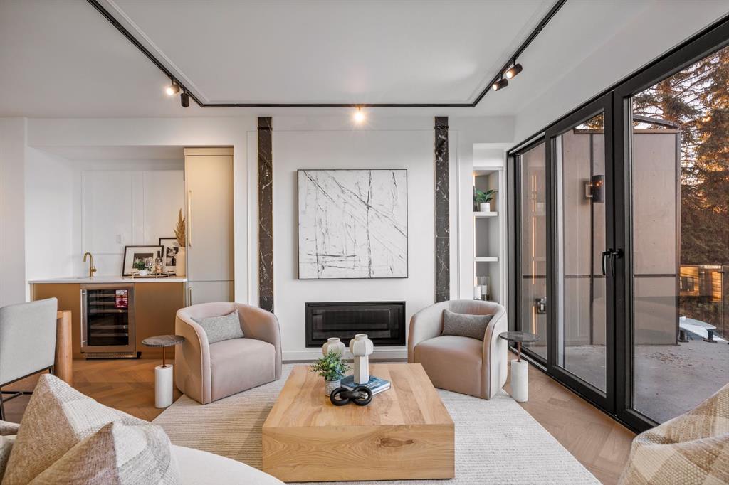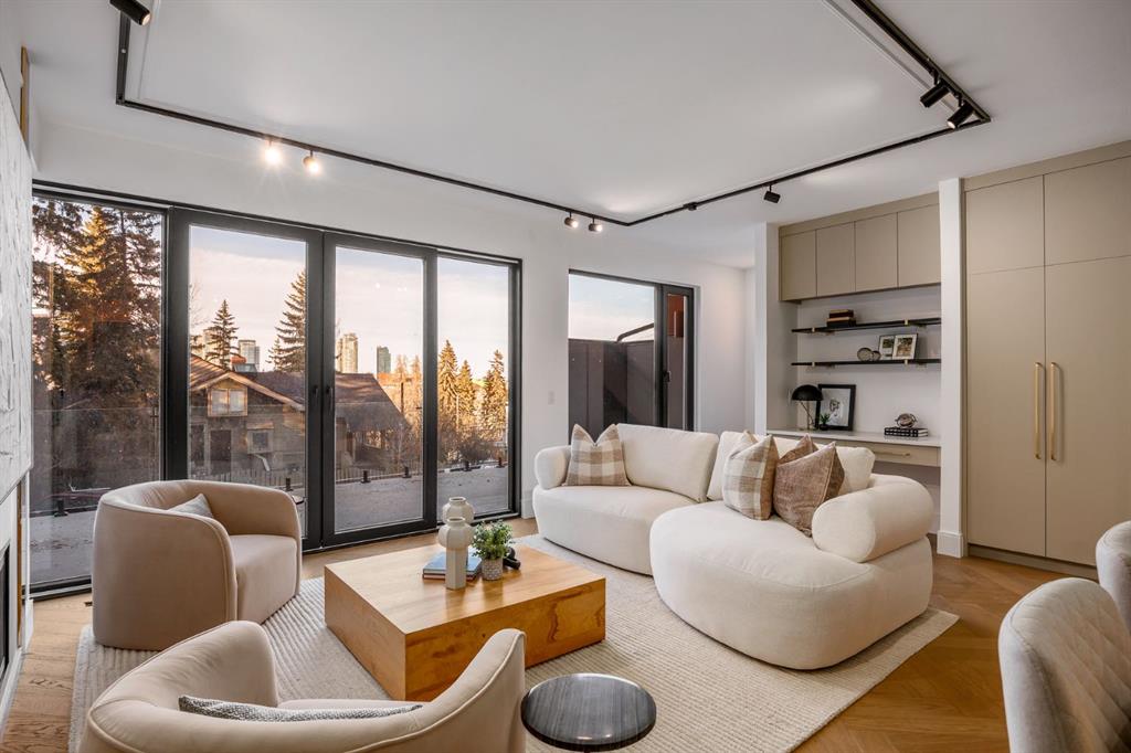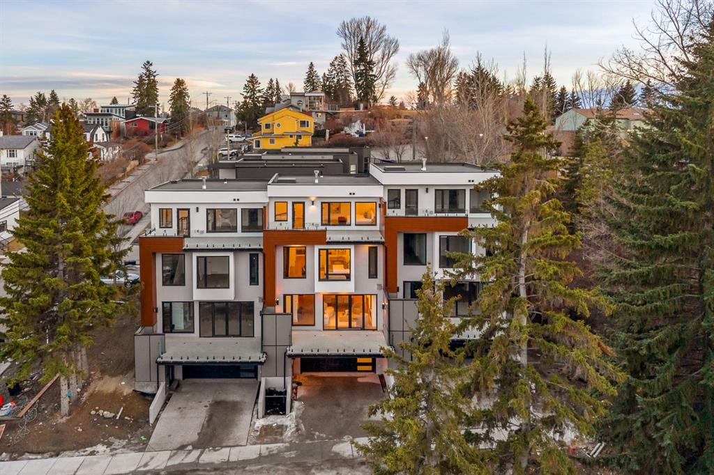 Come fall in love at our Open Houses Saturday March 28th 11AM-2PM & Sunday March 29th 1PM-4PM. This three storey townhome incorporates modern-traditional interior design elements for a sophisticated and timeless aesthetic. Perched upon a hill in one of Calgary’s most iconic river communities overlooking the picturesque skyline, this brand new unit is a culmination of high quality materials, thoughtful finishing selections, and grand inclusions. The attached triple car garage and private elevator are characteristic of the many luxurious additions strategically embedded within this home. The main floor layout includes a chef’s kitchen with premium panel-ready appliances, dining room, living area with gas fireplace, powder room, wet bar, built-in desk area, main floor balcony with sweeping city views, and an outdoor BBQ deck at the rear. On the second level there are two bedrooms, each with walk-in closets and full ensuites, along with a large built-in laundry area with sink and shelving, and a versatile den. The third floor is occupied almost entirely by a spacious primary retreat with another gas fireplace, walk-in-closet, an attached 6 piece ensuite including a steam shower, air jetted tub, bidet, make-up vanity and in-floor heating, along with an additional wet bar, and a third level balcony (designed and loaded for a hot-tub) overlooking the city and nearby Elbow River. This intentional floorplan prioritizes comfort and convenience while maximizing utilization of space. Intricate millwork, ornate wall and ceiling mouldings, a curved, ribbed kitchen island, brush gold accents, 9 foot ceilings, and herringbone hardwood all work together seamlessly to emulate carefully curated beauty. With unrivalled cityscape views, this home is a testament to deluxe inner city living. Notable specifications include: quartz countertops, Spanish porcelain tile, engineered European Oak hardwood, custom designed casing/mouldings, designer light fixtures, LED backlit built-in bookcase, millwork built-ins, satin brass and matte black hardware, European style tilt and turn windows with ticker individual panes of glass, along with rough-in for a security system. The expansive epoxy finished garage also includes EV rough-in, a built-in closet space to be used as a mudroom, and the flexibility to convert a large portion at the rear into a home gym or workshop area in lieu of a third vehicle. This home is situated amongst the natural landscape of the river pathways and surrounded by some of the city’s most notable landmarks in the peaceful community of Erlton. Quickly access the shopping and dining opportunities along 4th street, the brand new Convention Centre, Calgary Stampede Grounds, and get to the downtown core in minutes.