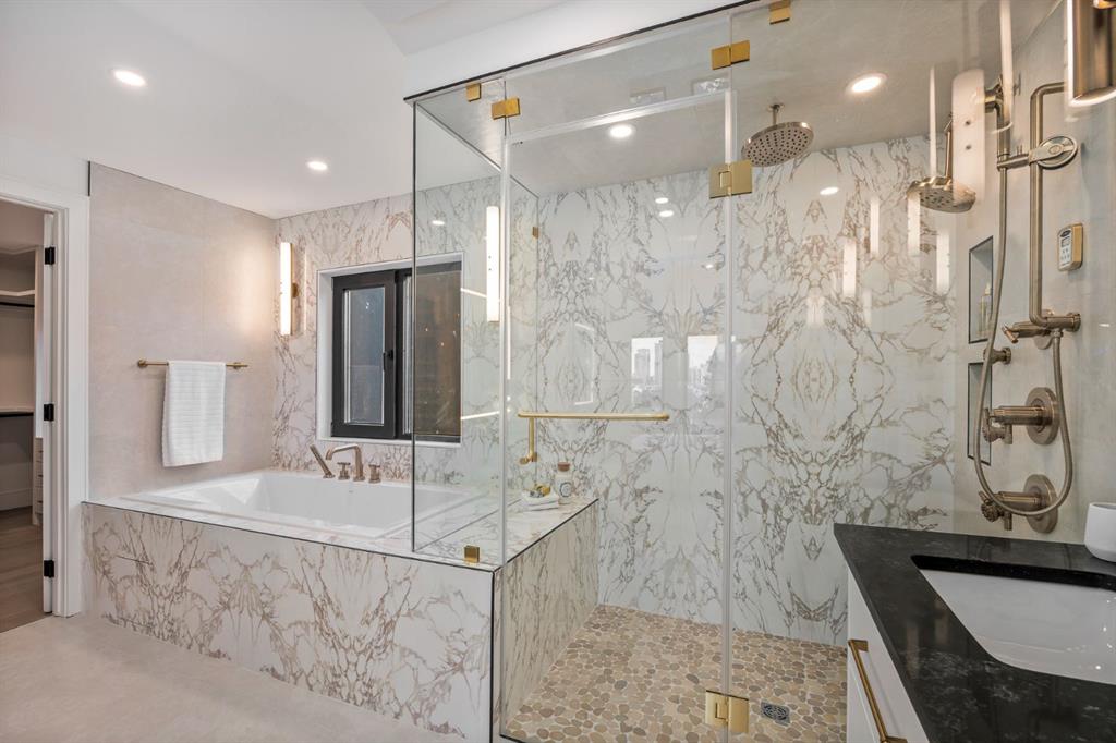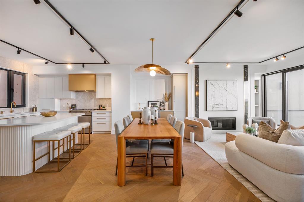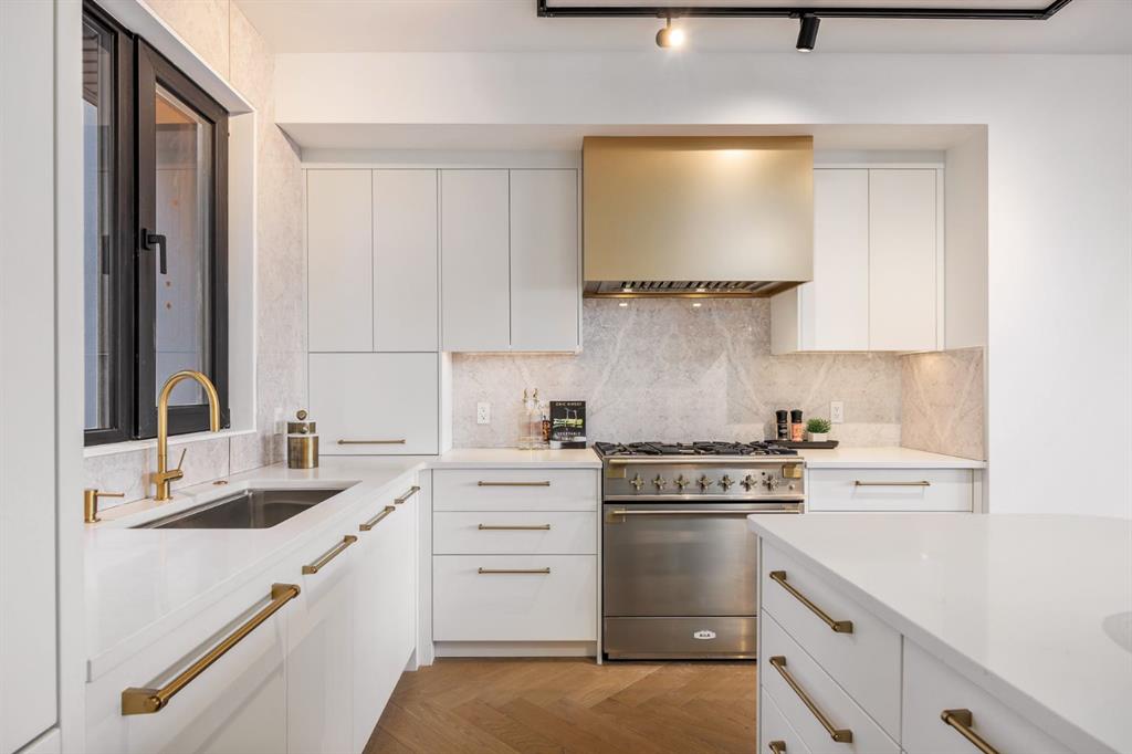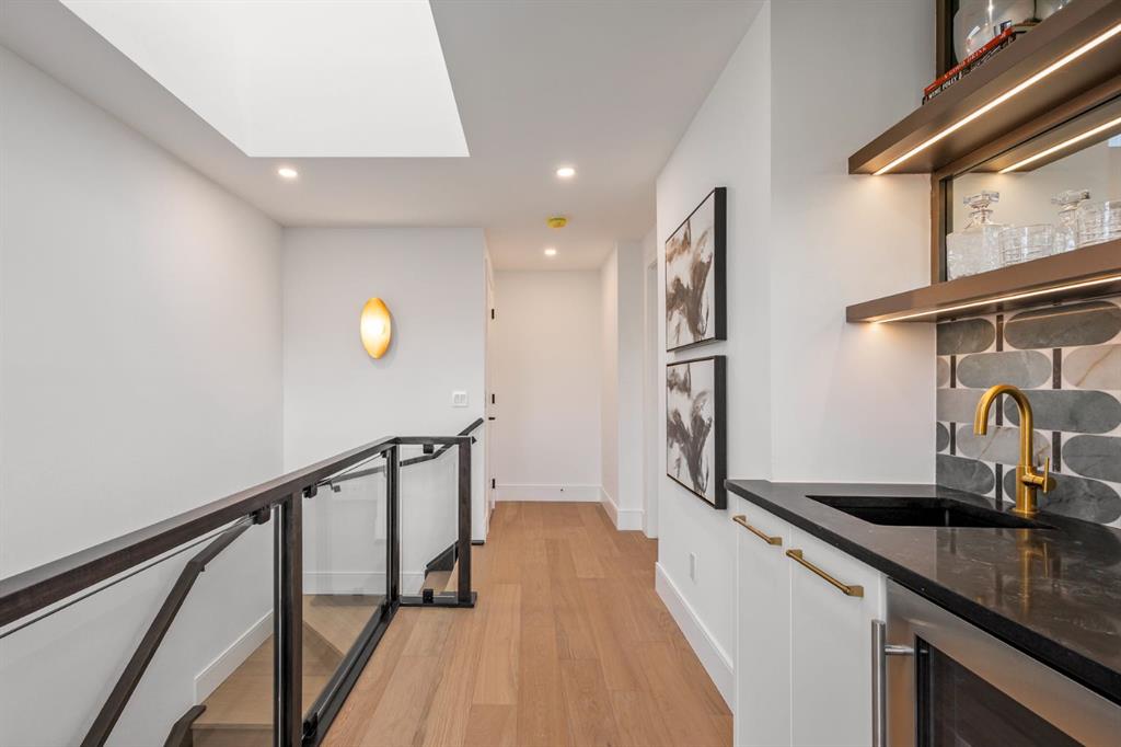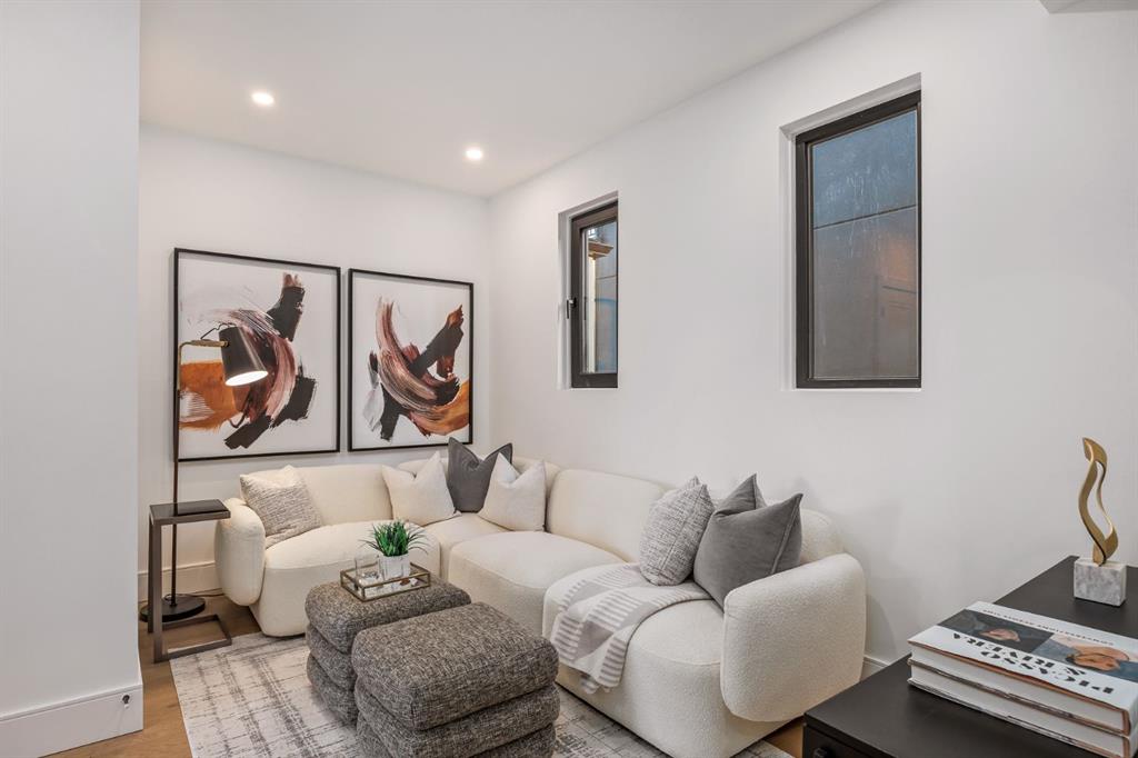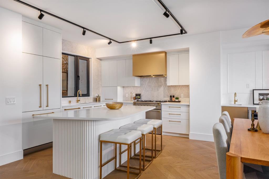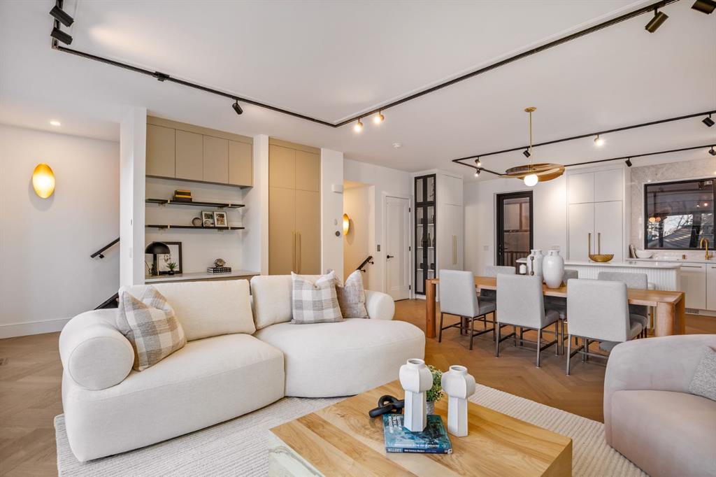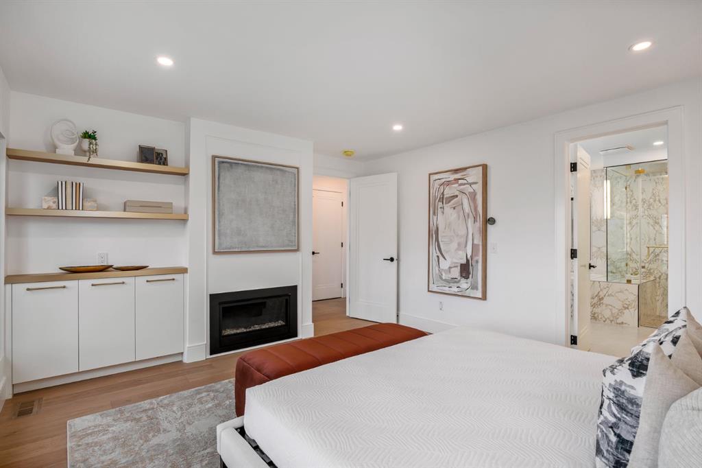 Come fall in love at our Open Houses Saturday March 28th 11AM-2PM & Sunday March 29th 1PM-4PM. This three storey townhome incorporates modern-traditional interior design elements for a sophisticated and timeless aesthetic. Perched upon a hill in one of Calgary’s most iconic river communities overlooking the picturesque skyline, this brand new unit is a culmination of high quality materials, thoughtful finishing selections, and grand inclusions. The attached triple car garage and private elevator are characteristic of the many luxurious additions strategically embedded within this home. The main floor layout includes a chef’s kitchen with premium panel-ready appliances, dining room, living area with gas fireplace, powder room, wet bar, built-in desk area, main floor balcony with sweeping city views, and an outdoor BBQ deck at the rear. On the second level there are two bedrooms, each with walk-in closets and full ensuites, along with a large built-in laundry area with sink and shelving, and a versatile den. The third floor is occupied almost entirely by a spacious primary retreat with another gas fireplace, walk-in-closet, an attached 6 piece ensuite including a steam shower, air jetted tub, bidet, make-up vanity and in-floor heating, along with an additional wet bar, and a third level balcony (designed and loaded for a hot-tub) overlooking the city and nearby Elbow River. This intentional floorplan prioritizes comfort and convenience while maximizing utilization of space. Intricate millwork, ornate wall and ceiling mouldings, a curved, ribbed kitchen island, brush gold accents, 9 foot ceilings, and herringbone hardwood all work together seamlessly to emulate carefully curated beauty. With unrivalled cityscape views, this home is a testament to deluxe inner city living. Notable specifications include: quartz countertops, Spanish porcelain tile, engineered European Oak hardwood, custom designed casing/mouldings, designer light fixtures, LED backlit built-in bookcase, millwork built-ins, satin brass and matte black hardware, European style tilt and turn windows with ticker individual panes of glass, along with rough-in for a security system. The expansive epoxy finished garage also includes EV rough-in, a built-in closet space to be used as a mudroom, and the flexibility to convert a large portion at the rear into a home gym or workshop area in lieu of a third vehicle. This home is situated amongst the natural landscape of the river pathways and surrounded by some of the city’s most notable landmarks in the peaceful community of Erlton. Quickly access the shopping and dining opportunities along 4th street, the brand new Convention Centre, Calgary Stampede Grounds, and get to the downtown core in minutes.