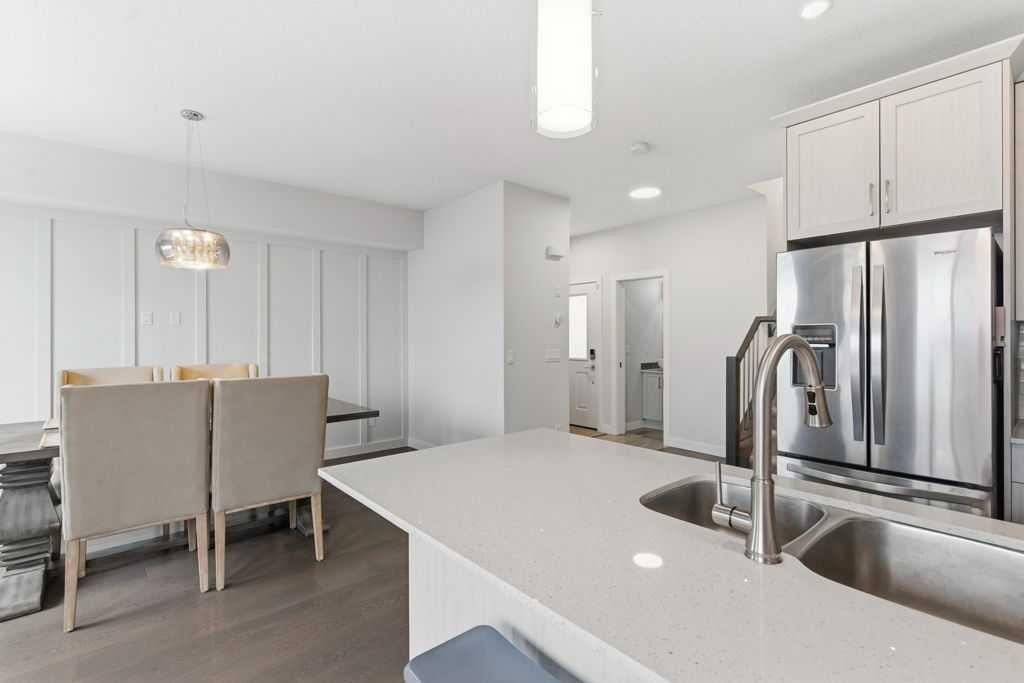Step inside to a welcoming main floor featuring a functional foyer with custom built in storage. The bright open concept kitchen and dining area is designed for both everyday living and entertaining featuring a layout that comfortably hosts large gatherings. From here, step out to the rear patio, which is perfect for summer BBQs and outdoor relaxation.