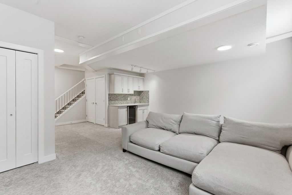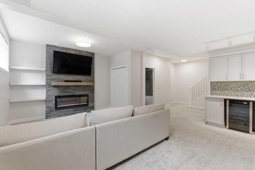 The fully developed basement expands your living space with a cozy recreation area featuring a stone fireplace, a TV mount above, a wet bar, and an additional 4 piece bathroom, perfect for movie nights or hosting friends and family.