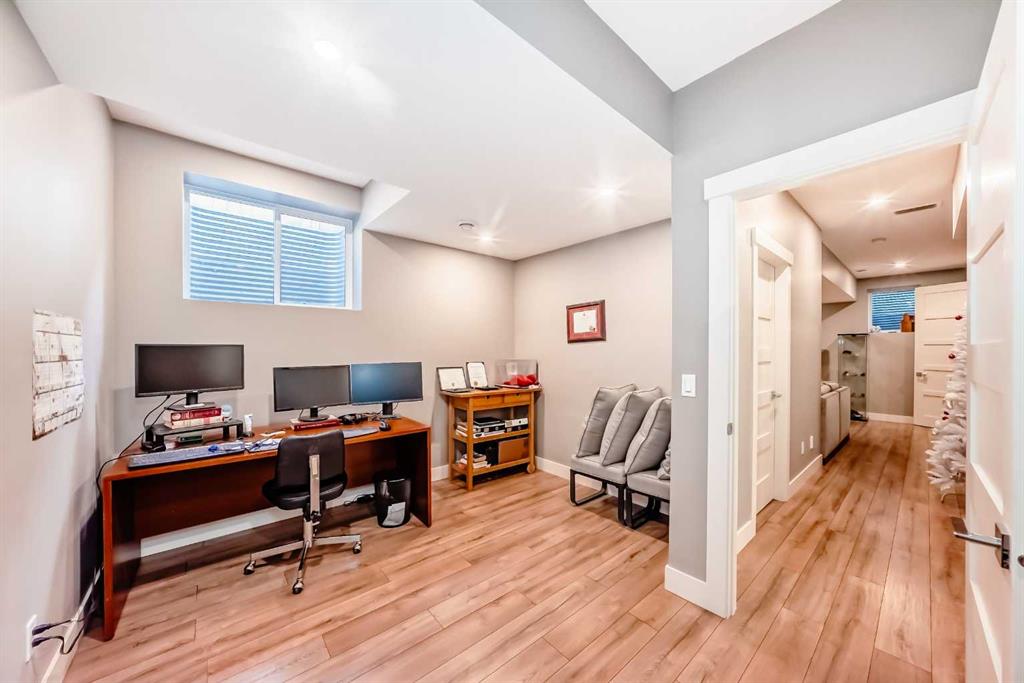 Incredible 3 storey corner townhouse in Winston Hts. If you are looking for a quality built home with loads of sq ft this is the one for you. The main floor is wide open with 9 foot ceilings, recessed lighting, gleaming laminate flooring and loads of oversized windows. The kitchen is wide open to the living area and has full height kitchen cabinets with builtin lighting, upgraded backsplash lit up with under mounting lights, beautiful white quartz countertops throughout & upgraded SS appliances. There is a huge centre island with a breakfast bar, dual undermount sinks, extra storage cabinets plus the dishwasher. There is also a large corner walkin pantry with tons of storage. Off the kitchen is a good sized dining area which overlooks the living room. The living room has a central gas fireplace with tiled surround and a mounted TV. There is a walkout to a back deck/BBQ area plus access to your parking space in the detached garage. This unit uses the far right side (when looking from the alley) parking spot. The 2nd level boasts two massive bedrooms each with their own oversized walkin closets. Between them you will find a full 5 pce main bathroom with tiled floors, his n her sinks sharing a huge vanity with extra cabinets and drawers. There is a water closet that has the tub/shower plus the toilet as well. The laundry is on the 2nd level as well and has a full sized washer/dryer with builtin cabinets. You will love the size of the bedrooms, the walkin closets and the 8 foot high doors throughout. The 3rd level is a huge Primary Bedroom with recessed lights, knockdown ceilings, a ceiling fan and a walkout to a large balcony that overlooks the City~ beautiful unobstructed views! The balcony has glass railing & loads of space for your patio furniture. The ensuite is luxurious with deep soaker tub, oversized stand up shower, tiled floors, his n her vanities plus a massive walkin closet with builtin custom made shelving. The fully finished basement has a good sized rec room with recessed lights, knock down ceilings, laminate floors & two windows. There is a storage room which has the freezer, a handy 2 pce bathroom and the massive 4th bedroom! The utility room has a high efficient furnace, Central AC, Builtin VacuFlo and an oversized Hot Water tank.