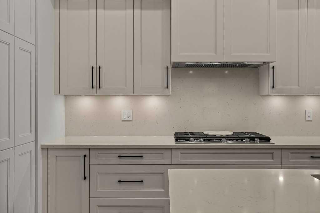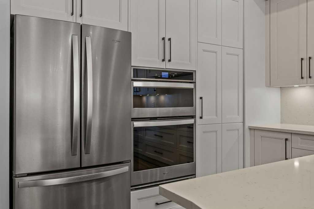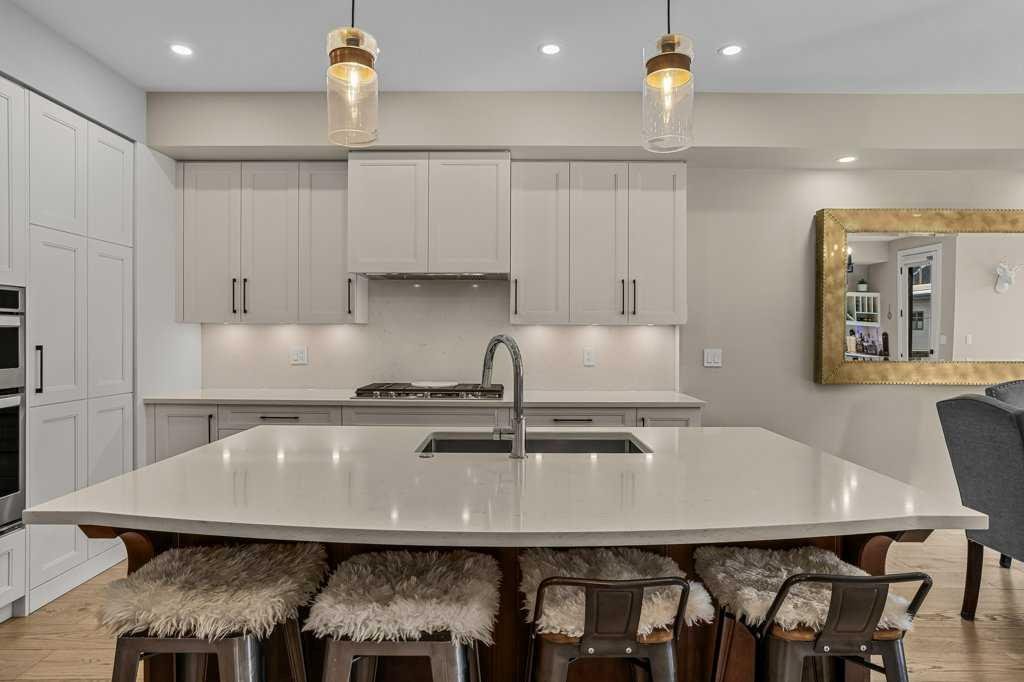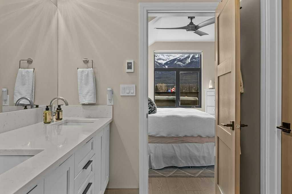This 3-bedroom + loft-style office, 4-bath home features three spacious bedrooms, each with its own ensuite, offering privacy and elevated design. Heated floors run throughout, oversized windows frame breathtaking mountain views, and a Rundle Stone gas fireplace anchors the open-concept main level.