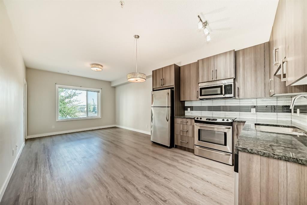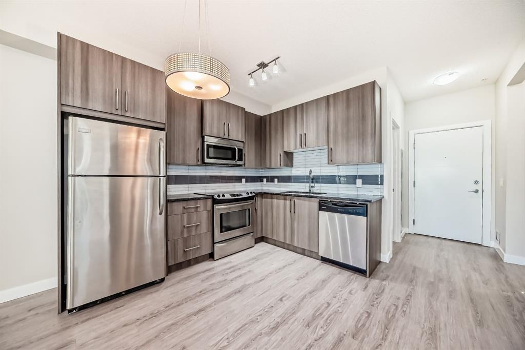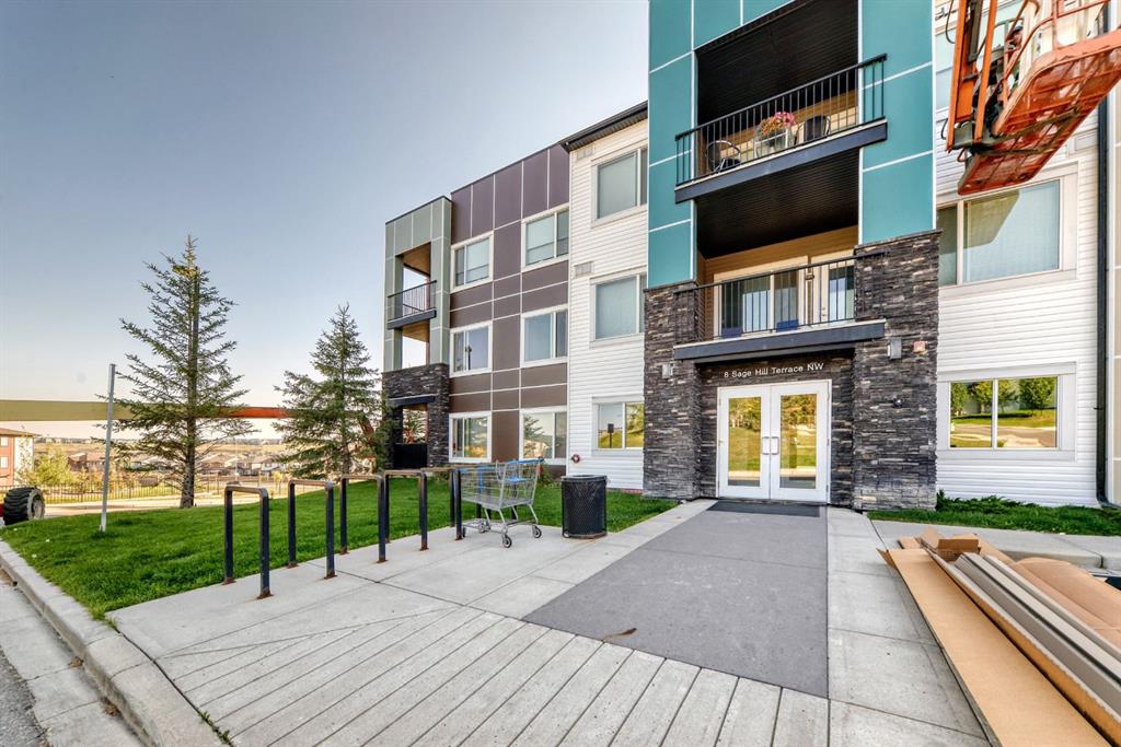 Welcome to 8 SAGE HILL TERRACE! This gorgeous bright One Bedroom + Den, move-in ready open concept ground-level condo has over 585 sq ft of cozy living space in popular and desirable SAGE HILL! Packed with tons of features to love, including light hardwood laminate flooring throughout, 9ft ceilings, large master with ensuite bathroom with walk-through closets, and a den with custom cabinetry which makes for a great office. This lovely unit also has ensuite laundry! A large open concept living/dinning area includes a big window to brighten up the space, along with stainless steal appliances and lots of cabinets space! You may also enjoy a private ground level balcony, large enough to fit BBQ, table and plenty of seats! Close to everything you need for day-to-day living! Shopping and commuting are a breeze as everything is right at your doorstep, including Stoney Trail! Call today to book private viewing! You won’t want to miss this one!