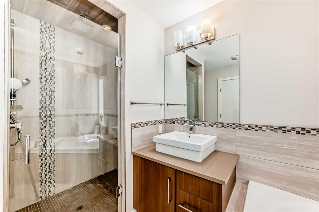 Welcome to this stunning 3-storey fourplex house, quietly nestled on a peaceful side street in the highly sought-after Kensington community. Enjoy the best of inner-city living, just steps from the Bow River, LRT, top-rated restaurants, cozy coffee shops, and the vibrant energy of Kensington Village. This exceptional home offers a total of 2,523 sq.ft. of living space (1,943 sq.ft. RMS + 580 sq.ft. developed basement) and is ideal for professionals, families, or investors. You’re also perfectly situated near Downtown Calgary, SAIT, the University of Calgary, and more. The main level showcases a sleek open-concept design featuring a warm natural gas fireplace, spacious dining area, and a chef’s kitchen with premium quartz countertops, custom cabinetry, and elegant laminate flooring—perfect for both everyday living and entertaining guests. On the second level, you’ll find two generous bedrooms, including a primary suite with a walk-in closet and a luxurious 5-piece spa ensuite complete with a jetted tub. The third-floor loft offers flexible living space, including a bonus room, an additional bedroom, a full bathroom, and a large private balcony—perfect for relaxing evenings or enjoying your morning coffee. The fully finished basement features a media room, 4th bedroom, full bathroom, and plenty of storage. Outside, the professionally landscaped backyard offers a private oasis—ideal for barbecuing and entertaining on long summer nights. This home truly delivers the perfect blend of location, lifestyle, and luxury. A must-see opportunity!