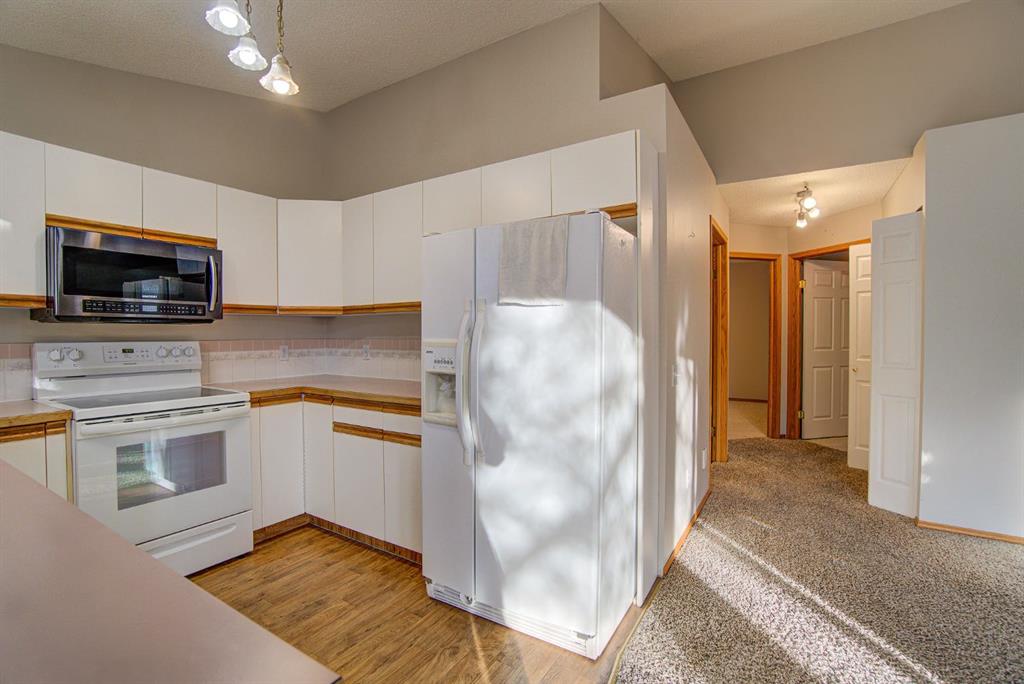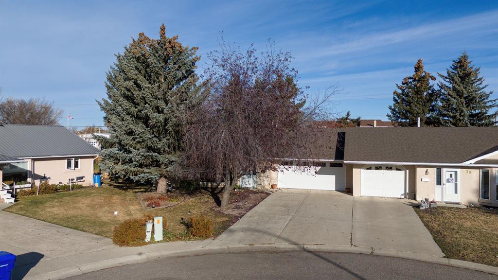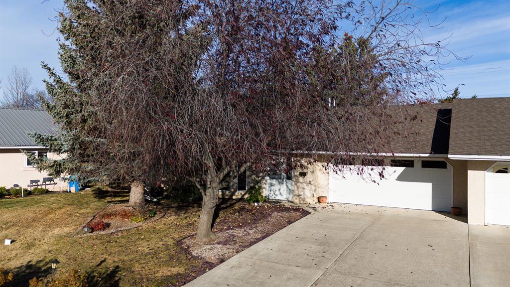 Welcome to 20 Chinook Crescent, nestled in a quiet cul-de-sac just a block away from the golf course, hospital, and medical clinic. This well-cared-for home offers easy, comfortable living with an open-concept design that connects the spacious living and dining areas to a cozy, functional kitchen with just the right amount of cupboard and counter space. Featuring two bedrooms, including a bright huge primary suite with access to the backyard, a 2-piece ensuite, and a walk-in closet. Completing the main floor is a 4pc main bathroom. This home is thoughtfully laid out for convenience and relaxation. The attached heated double garage provides plenty of space for parking, storage, or even a small workshop—plus direct access to your beautiful backyard. Out back, enjoy a private, park-like setting with mature trees, underground sprinklers, and a spacious storage shed. If low-maintenance, main-floor living and a peaceful location are on your wish list, this is one you won’t want to miss!