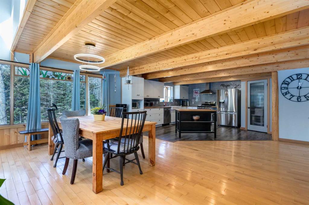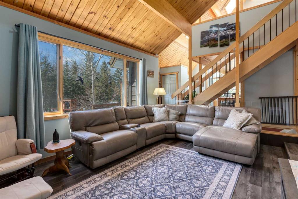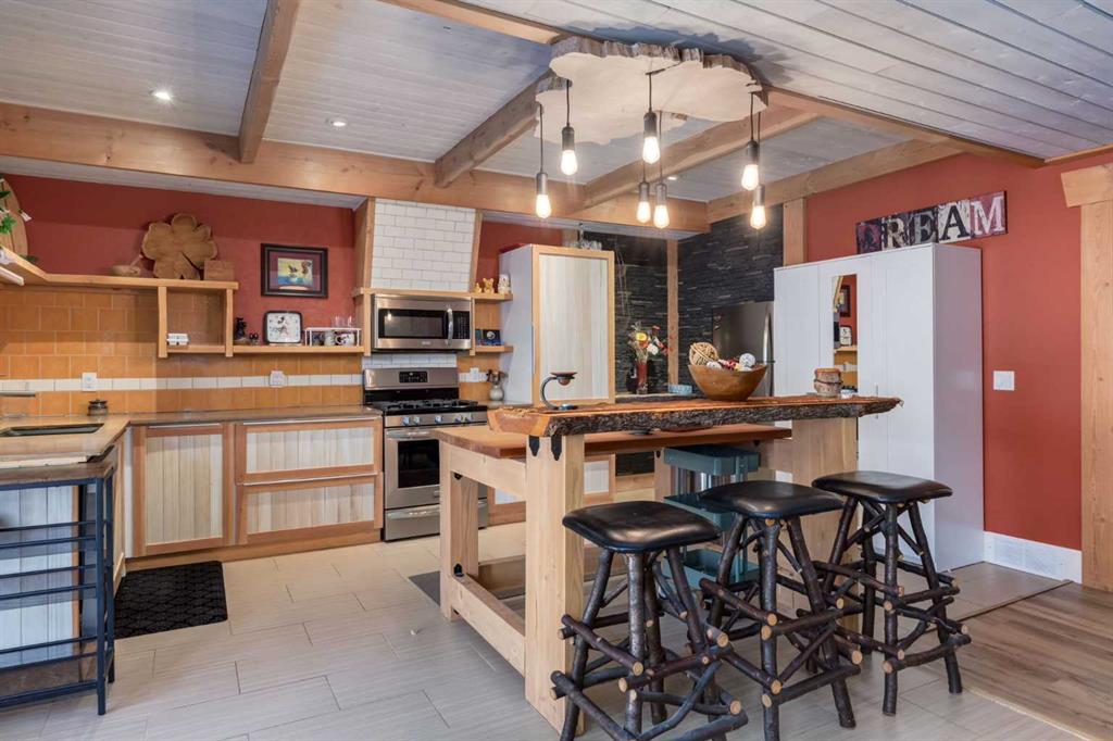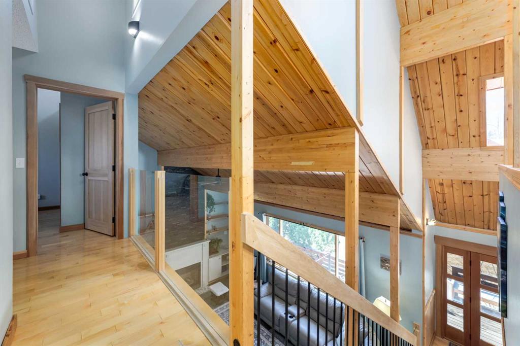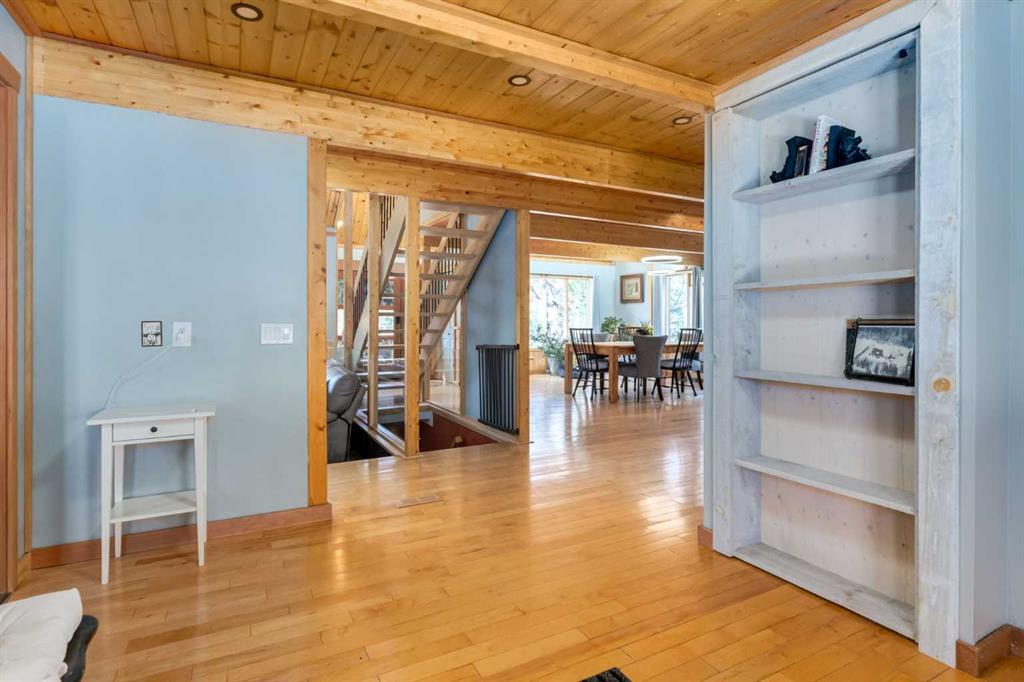 Set on 2.03 acres, this exceptional gated property offers a rare blend of privacy, space, and natural beauty, surrounded by mature trees and peaceful surroundings just minutes from everyday amenities. With over 3,600 square feet of developed living space, the home features three bedrooms and three bathrooms, providing a comfortable and functional layout for families, guests, or flexible living. The main floor showcases stunning wood beams and hardwood flooring throughout, adding warmth and character. The open concept kitchen and dining area is ideal for hosting, seamlessly connecting spaces for family gatherings and entertaining. The living room is a true highlight, featuring soaring ceilings and a striking floor-to-ceiling stone fireplace with a wood mantel, creating a warm and inviting atmosphere. The rear of the home is designed for indoor-outdoor living, offering a beautiful two-tier deck with a sunroom just off the deck. The fully finished walkout basement provides additional living space with a self-contained suite, and opens onto a private deck and patio with multiple sitting areas throughout the property. An oversized triple detached garage adds excellent functionality, with ample room for vehicles, storage, or workshop space. The grounds are meticulously maintained, featuring manicured landscaping, mature trees, and thoughtfully designed gardens that reflect years of care and pride of ownership. Located just minutes from the heart of Bragg Creek, you’ll enjoy easy access to local shops, restaurants, and unique boutiques, all while coming home to your own private acreage retreat. A truly special property that must be experienced to be fully appreciated.