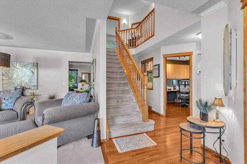 Move into the highly sought after neighborhood of Tuscany! Situated in a rare location, this immaculate four bedroom residence offers spacious and elegant living across an expansive PIE SHAPED LOT, directly across from a beautiful park/green space with a great kid’s playground. The beautifully designed kitchen boasts an abundance of cabinetry, lots of counterspace with granite countertops, and a convenient walk-in pantry. The corner sink provides views of the meticulously landscaped backyard, creating an inspiring space to prepare your favorite meals. This open concept kitchen seamlessly flows into the inviting family room with a fireplace feature wall with custom built-in cabinetry and shelving, offering warmth and elegance. The generous eating area easily accommodates a full sized dining table, perfect for hosting family gatherings or dinner parties. From here, step through the garden door to the exquisite covered deck, ideal for outdoor dining, relaxation, and enjoying the STUNNING ZEN LIKE BEAUTY OF THE BACKYARD! Upstairs has well proportioned bedrooms, including a luxurious primary suite that promises rest and relaxation. This sanctuary features an ensuite bathroom complete with dual vanities, a corner soaker/jetted tub, and a separate shower, providing a spa like experience at home. The WELL THOUGHT OUT BASEMENT DESIGN has a spacious family room with a large window, bedroom number four and a full bathroom. Tuscany is one of Calgary’s premium neighbourhoods with four schools, lots of parks and greenspace, the Tuscany LRT, quick easy access to downtown, University of Calgary, Foothills Hospital and the Rocky Mountains.